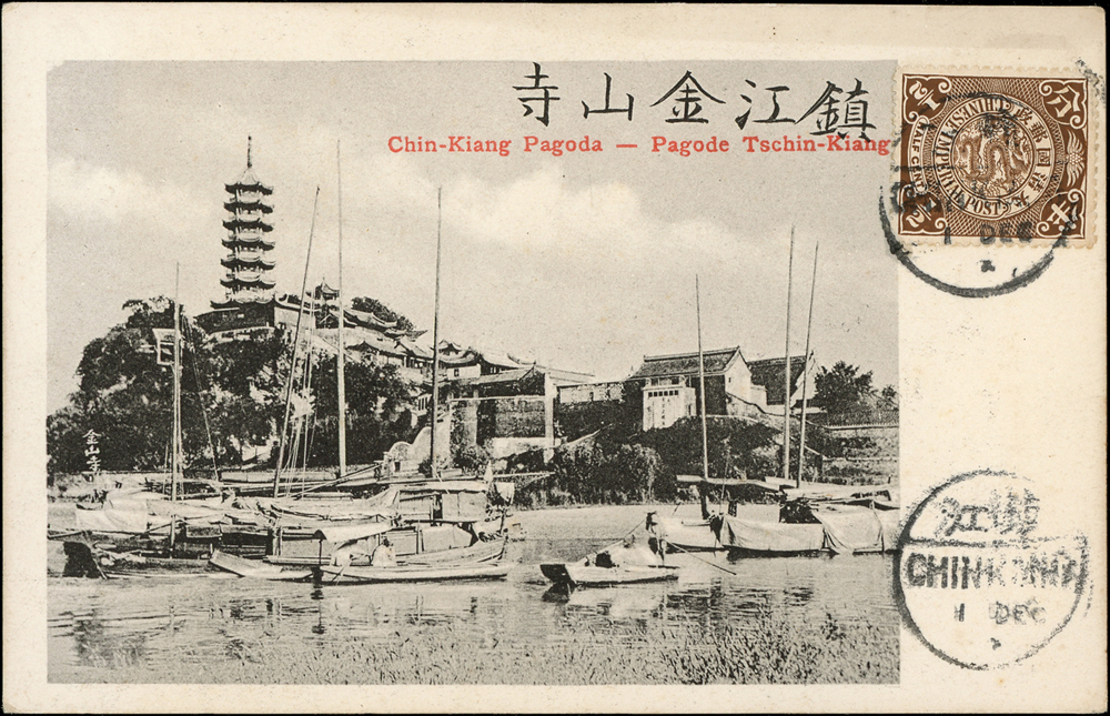 蓋銷片3片:(1)鎮江金山寺,貼蟠龍半分1枚,蓋銷鎮江漢英小圓戳;(2)南京風景片,貼蟠龍半分1枚,蓋銷南經27.NOV.09漢英小圓戳;(3)威海衛皇家海軍陸戰隊軍營風景片,貼香港男皇1先1枚,蓋銷劉公島AU.15.1911英國客郵戳(Page 7)