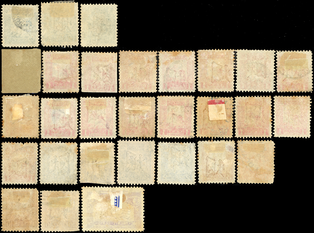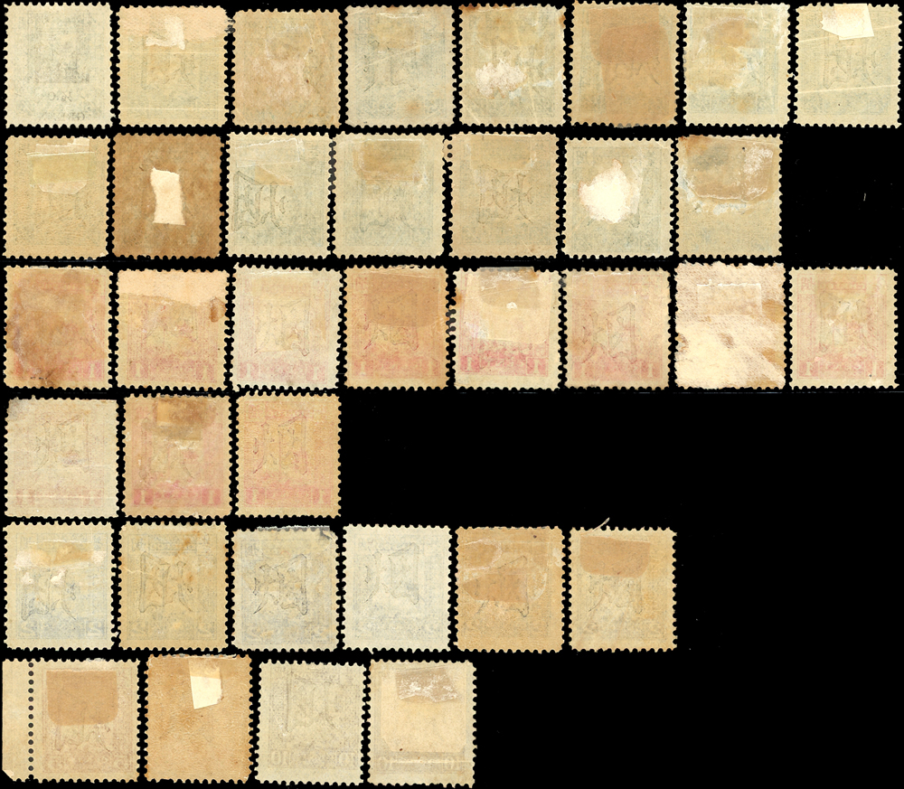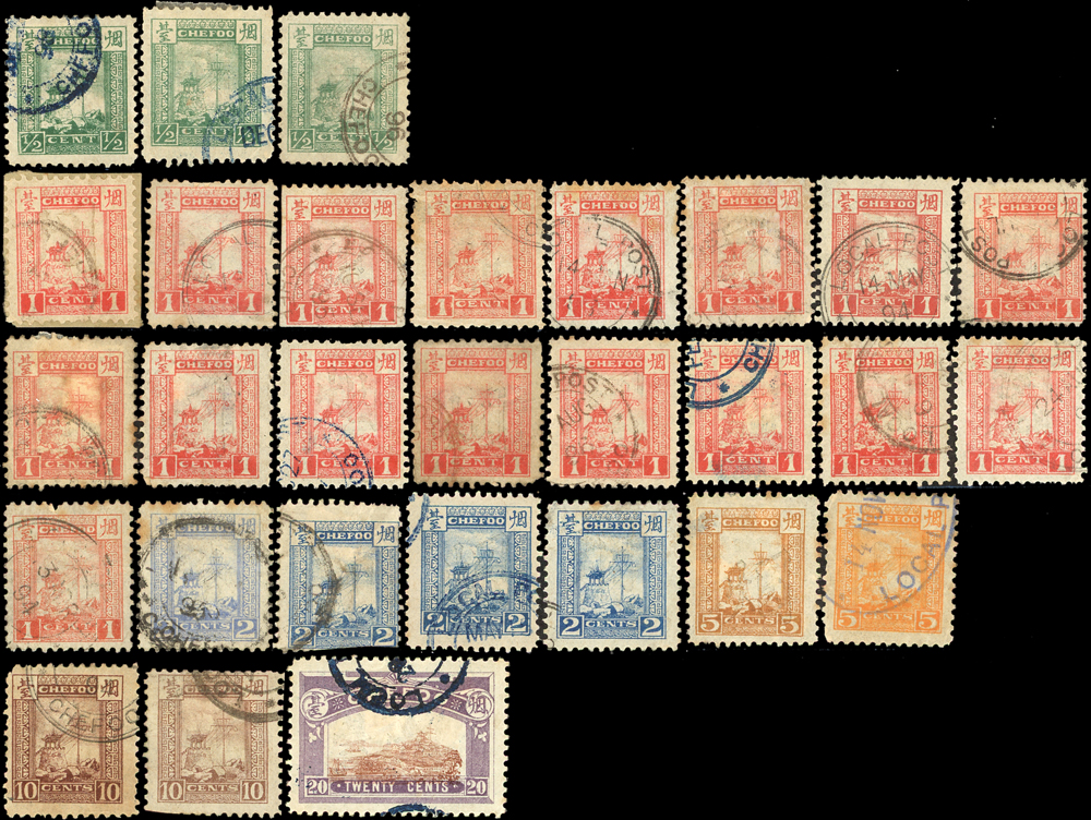 1893~1896年烟臺書信館郵票一組共65枚,含新票36枚,舊票29枚,包括:第一.二次版半分~10分新舊票,第四次版20分舊票等,品像混合或有重複,部分背貼,F-VF;歡迎至官網瀏覽全貌(Page 12)