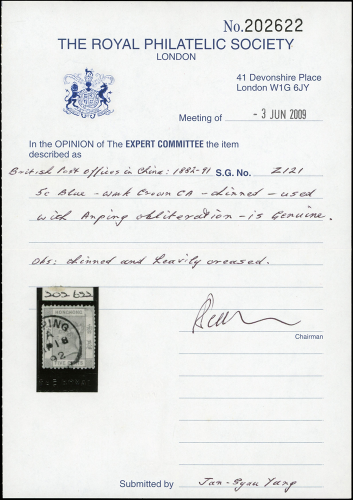 郵票分類 大清郵政 1911年以前清代~海關大龍及小龍郵票(1001-1028)清代~慈壽/紅印花及蟠龍郵票(1029-1065)清代~蟠龍郵戳/宣統及其他郵票(1066-1081)清代~商埠郵票(1136-1155)在華客郵郵票(1159-1167)中華民國郵政 1912~1949年民國~整批/整冊郵票(1189-1201)民國~常用郵票&變體票.趣味品(1202-1323)民國~紀念郵票(1324-1347)民國~專題/航空/欠資/附捐/儲金(1348-1366)民國~加蓋限省貼用/單位銀元郵票/郵戳(1367-1388)民國~郵票小冊(1389-1423)日偽政權~郵票(1704-1713)台灣 1888~2020年台灣~整批/整冊郵票(3501-3553)清代~台灣官用郵票(3584-3593)清代~台灣龍馬票(3594-3595)清代~台灣民主國獨虎票(3596-3600)台灣~老台幣時期郵票&變體票1945~1949(3696-3737)台灣~新台幣時期郵票&變體票1950~2000年(3816-4062)台灣~大全張(4063-4384)台灣~生肖筒(4385-4399)台灣~樣票(4400-4453)台灣~小全張(4454-4595)台灣~郵政贈品/紀念品(4596-4601)台灣~郵票小冊(4602-4621)台灣~自動化郵資券(4622-4645)台灣~年度郵票/年度錦冊/專冊(4648-4673)中國人民郵政 1949~2018年新中國~解放區郵票(6123-6127)新中國~普通/改值郵票(6141-6171)新中國~紀念/編號/特種郵票(6172-6187)新中國~J、T字頭郵票(6188-6229)新中國~小型張/小本票(6230-6253)新中國~編年票(6254-6276)中國香港及澳門~郵票(6305-6313)世界各國郵票日本郵票(6317-6326)外國郵票(A~Z)(6335-6349) 大清郵政 1911年以前 ↳清代~海關大龍及小龍郵票(1001-1028) ↳清代~慈壽/紅印花及蟠龍郵票(1029-1065) ↳清代~蟠龍郵戳/宣統及其他郵票(1066-1081) ↳清代~商埠郵票(1136-1155) ↳在華客郵郵票(1159-1167)中華民國郵政 1912~1949年 ↳民國~整批/整冊郵票(1189-1201) ↳民國~常用郵票&變體票.趣味品(1202-1323) ↳民國~紀念郵票(1324-1347) ↳民國~專題/航空/欠資/附捐/儲金(1348-1366) ↳民國~加蓋限省貼用/單位銀元郵票/郵戳(1367-1388) ↳民國~郵票小冊(1389-1423) ↳日偽政權~郵票(1704-1713)台灣 1888~2020年 ↳台灣~整批/整冊郵票(3501-3553) ↳清代~台灣官用郵票(3584-3593) ↳清代~台灣龍馬票(3594-3595) ↳清代~台灣民主國獨虎票(3596-3600) ↳台灣~老台幣時期郵票&變體票1945~1949(3696-3737) ↳台灣~新台幣時期郵票&變體票1950~2000年(3816-4062) ↳台灣~大全張(4063-4384) ↳台灣~生肖筒(4385-4399) ↳台灣~樣票(4400-4453) ↳台灣~小全張(4454-4595) ↳台灣~郵政贈品/紀念品(4596-4601) ↳台灣~郵票小冊(4602-4621) ↳台灣~自動化郵資券(4622-4645) ↳台灣~年度郵票/年度錦冊/專冊(4648-4673)中國人民郵政 1949~2018年 ↳新中國~解放區郵票(6123-6127) ↳新中國~普通/改值郵票(6141-6171) ↳新中國~紀念/編號/特種郵票(6172-6187) ↳新中國~J、T字頭郵票(6188-6229) ↳新中國~小型張/小本票(6230-6253) ↳新中國~編年票(6254-6276) ↳中國香港及澳門~郵票(6305-6313)世界各國郵票 ↳日本郵票(6317-6326) ↳外國郵票(A~Z)(6335-6349) 點大圖放大展示,點小圖切換 3 香港1882年女皇像5c,銷台南安平英國領事郵局Anping/A AP 18 92 日戳(S.G. Z121),RPS 2009 證書,郵票略皺,右上角小揭薄,F-VF(Page 13) 結標時間 2025-12-16 10:54:20 拍品編號:1164 起拍價:NT$5000 當前價:NT$5000 自動出價 直接出價 出價 系統將按出價級數,依序為您比(出)價至上限金額 提醒您:直接出價後不可將金額改低,只能改高,蟠龍無法降低您的出價,最高出價者無法取消出價 (查看出價說明) 得標說明:需按得標價另加10%佣金 當前加價幅度:NT$0元 (查看加價級數表) 回上頁 線上出價記錄 線上 0 人次,書面 0 人次 競價客戶 所在地 出價時間 出價金額 出價方式 問與答 目前尚無提問 我要提問 請先登入會員