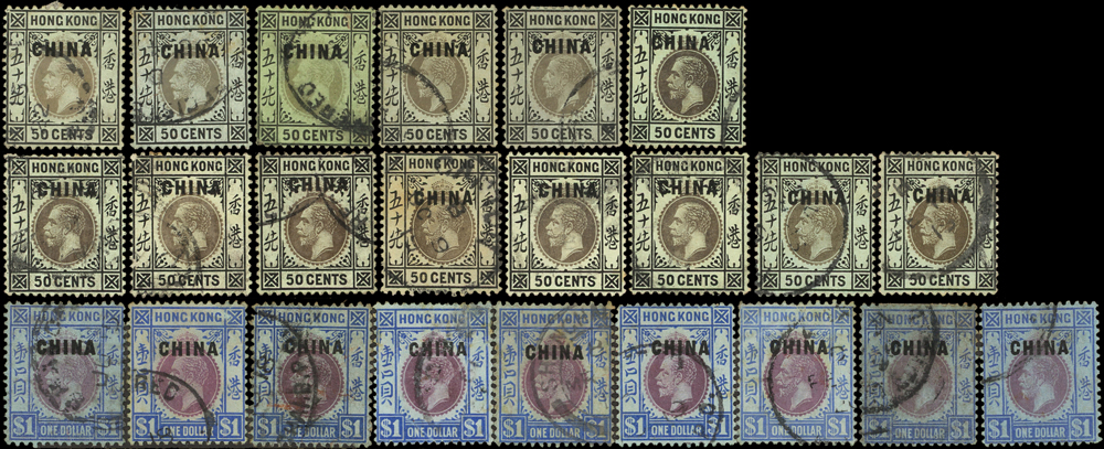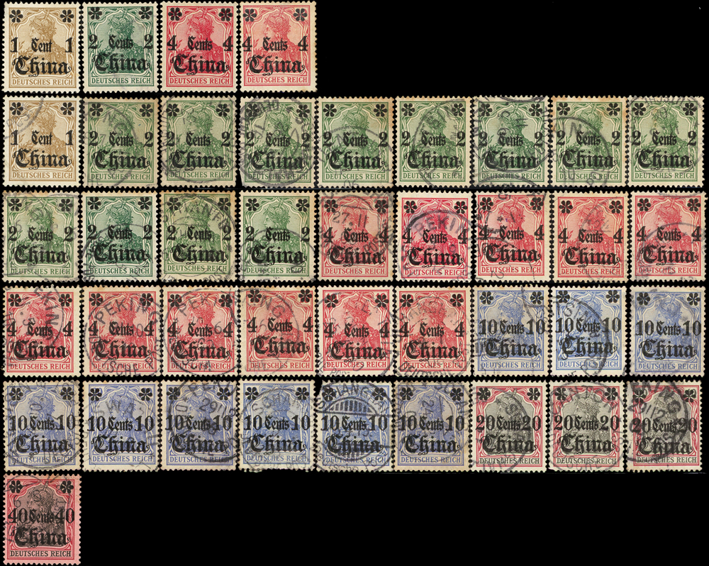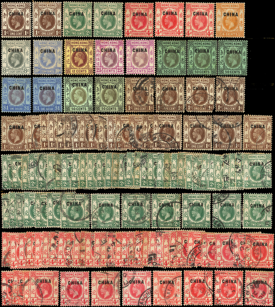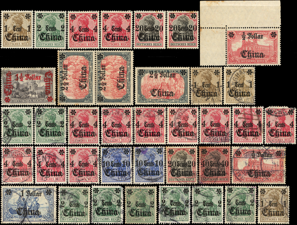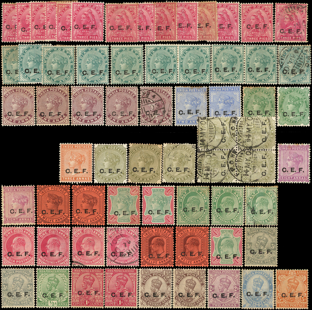1898~1927年德國租借地膠州灣.英國.德國.俄國在華客郵等一組共687枚,含新票198枚.舊票489枚,其中英國在華軍郵HALF ANNA雙連新票,加蓋重墨『C.E.F.』成『O.E.F.』,品像混合或有重複,VF-F;歡迎至官網瀏覽全貌(Page 14)