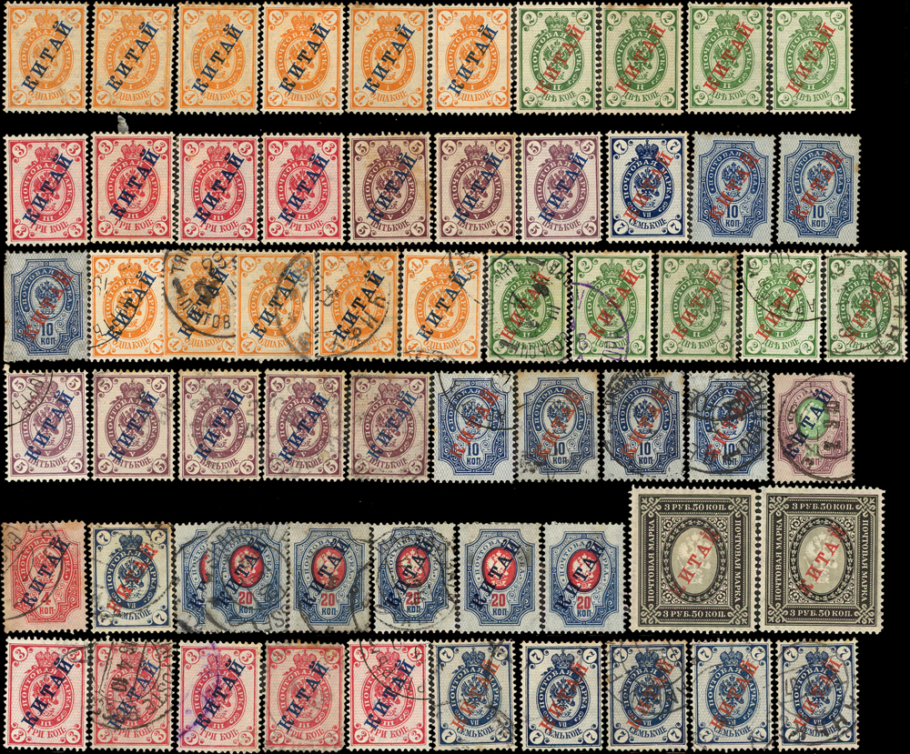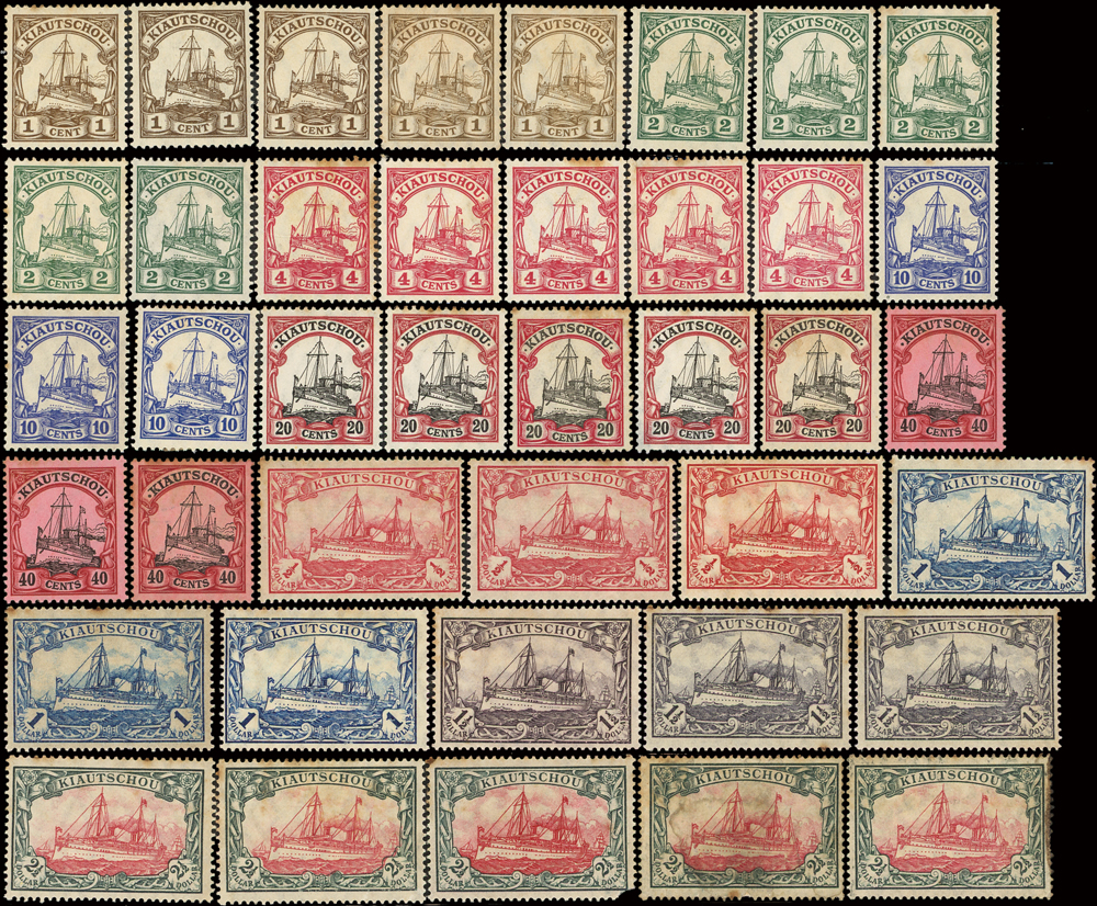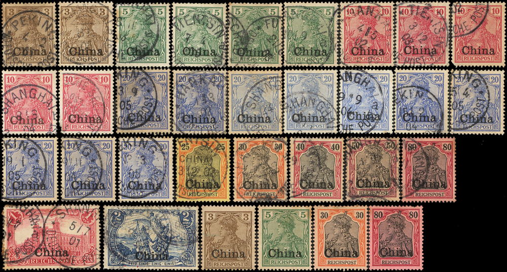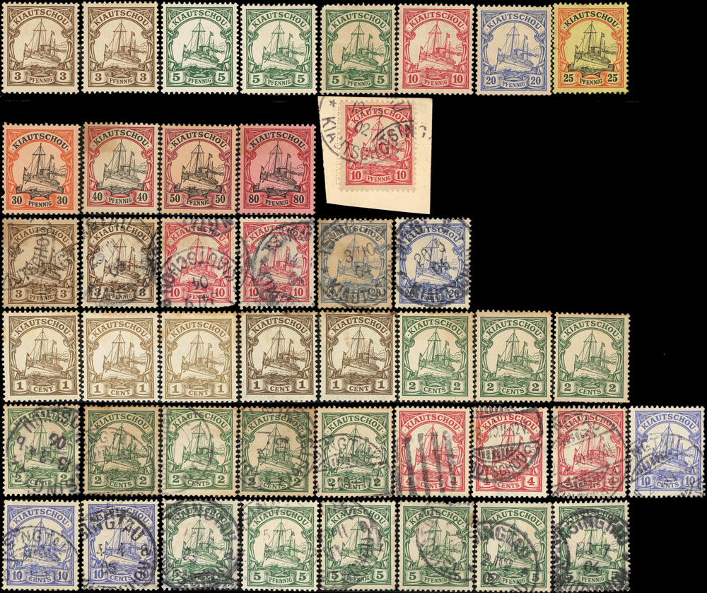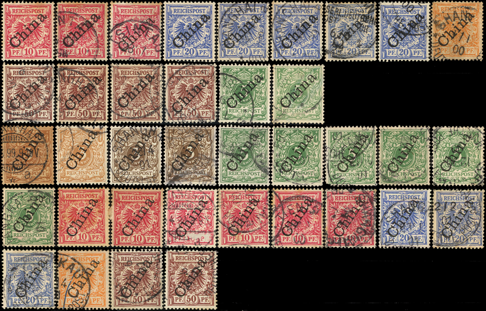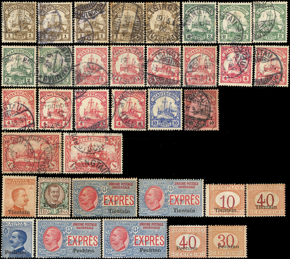 1898~1927年德國租借地膠州灣.英國.德國.俄國在華客郵等一組共687枚,含新票198枚.舊票489枚,其中英國在華軍郵HALF ANNA雙連新票,加蓋重墨『C.E.F.』成『O.E.F.』,品像混合或有重複,VF-F;歡迎至官網瀏覽全貌(Page 14)