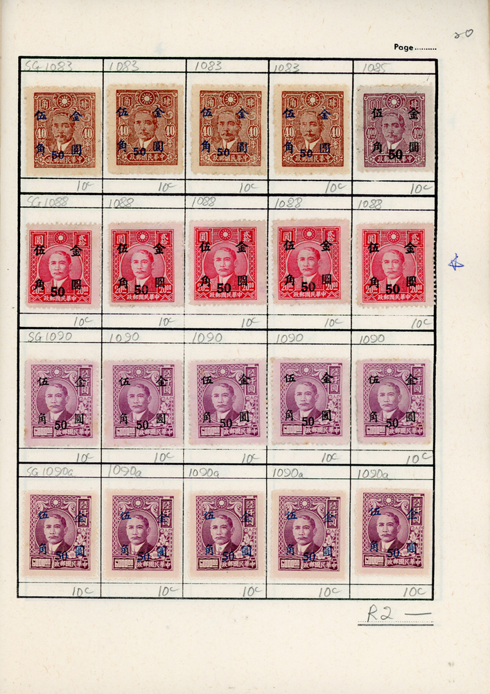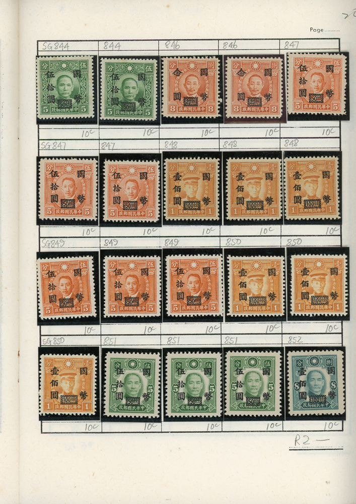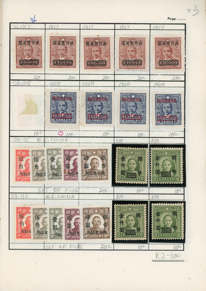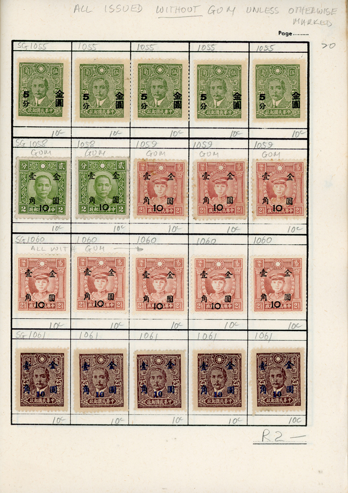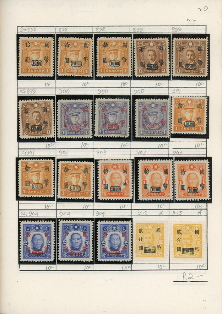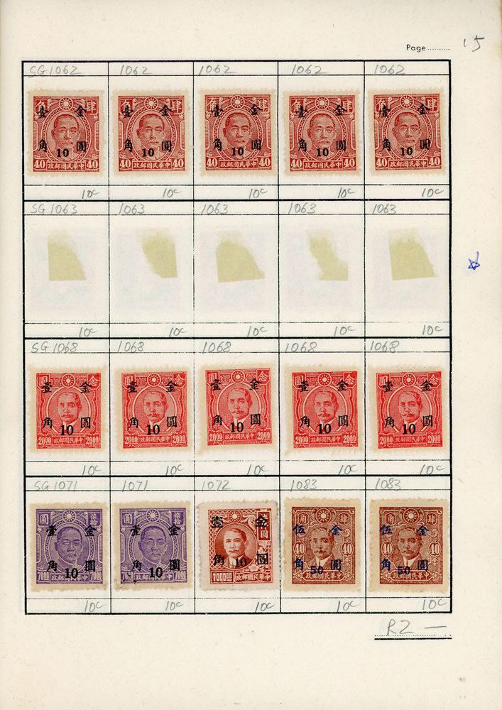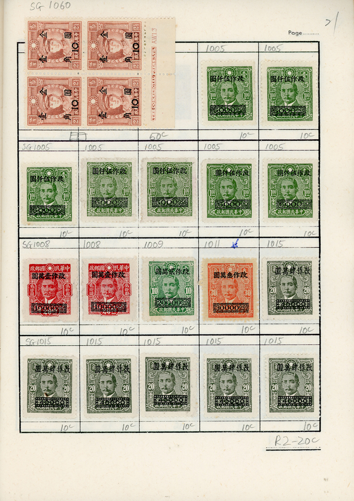 各版國父像先烈像不成套新票約1370枚,品種豐富,含:國父像烈士像改值金圓.國父北平中央二版限東北.國父像改高額國幣.國父像偽新民版東北改值.國父像烈士像改值國幣.國父像香港大東版.香港商務版烈士像.國父像上海大東二版.國父像百城二版等,品像混合或有重複,部分貼於紙上,VF-F,歡迎至官網瀏覽全貌(Page 17)