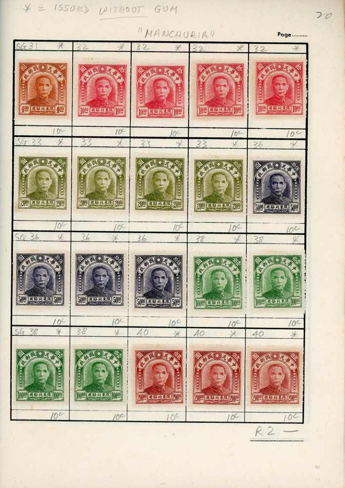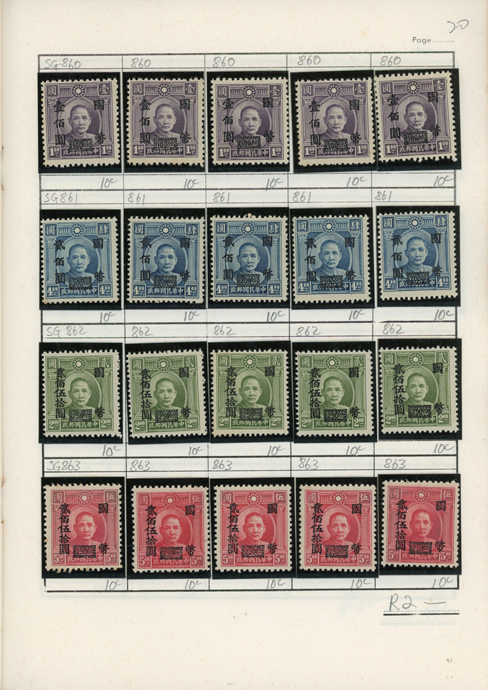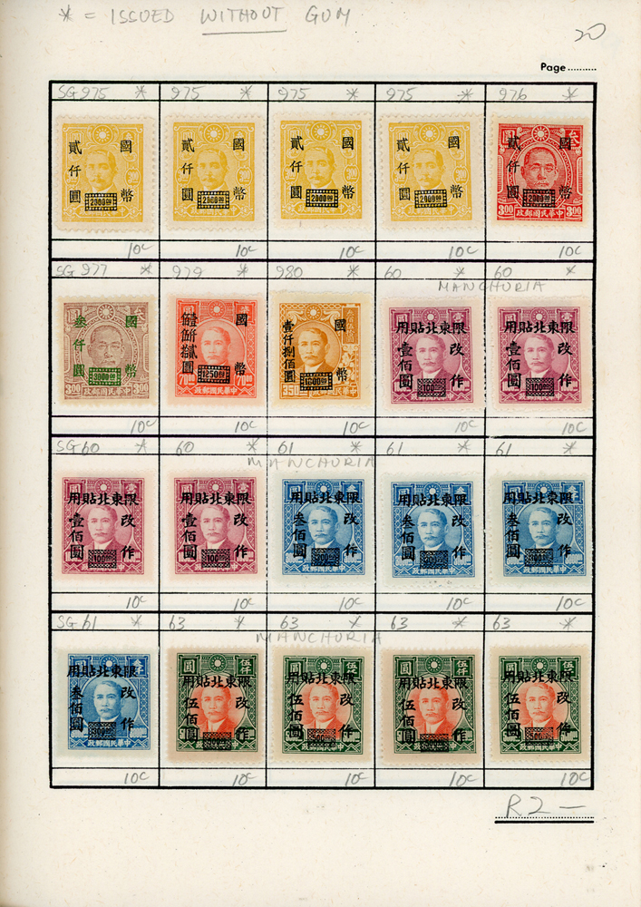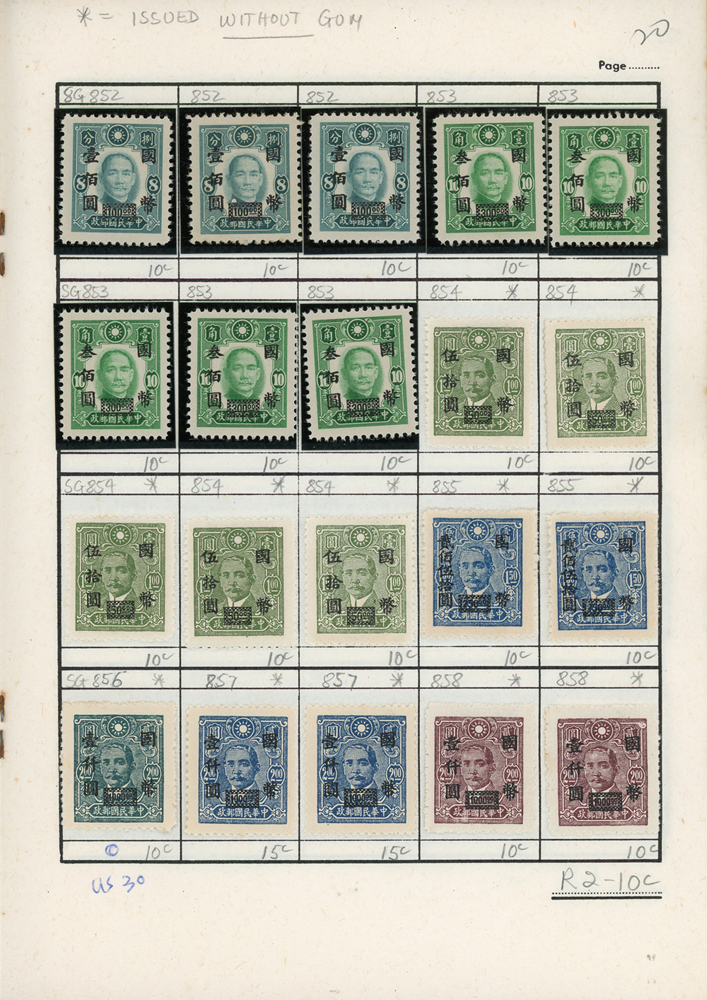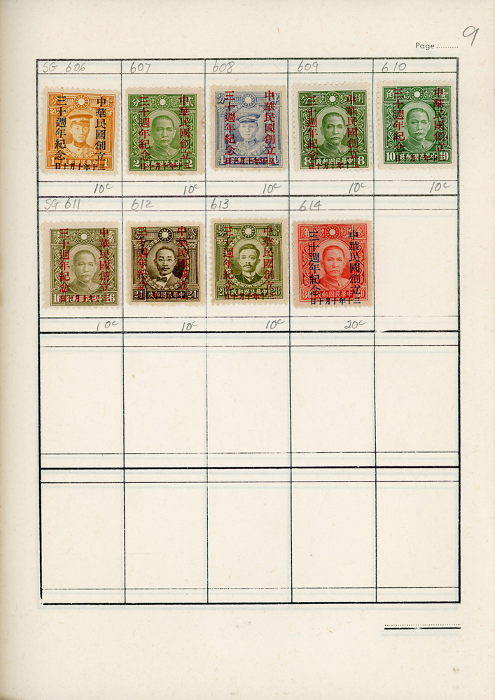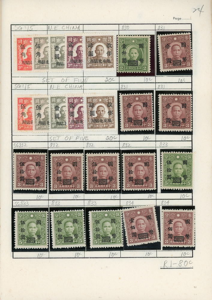 各版國父像先烈像不成套新票約1370枚,品種豐富,含:國父像烈士像改值金圓.國父北平中央二版限東北.國父像改高額國幣.國父像偽新民版東北改值.國父像烈士像改值國幣.國父像香港大東版.香港商務版烈士像.國父像上海大東二版.國父像百城二版等,品像混合或有重複,部分貼於紙上,VF-F,歡迎至官網瀏覽全貌(Page 17)