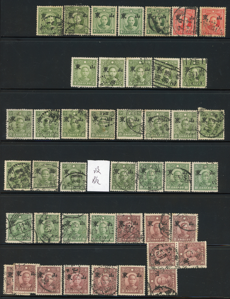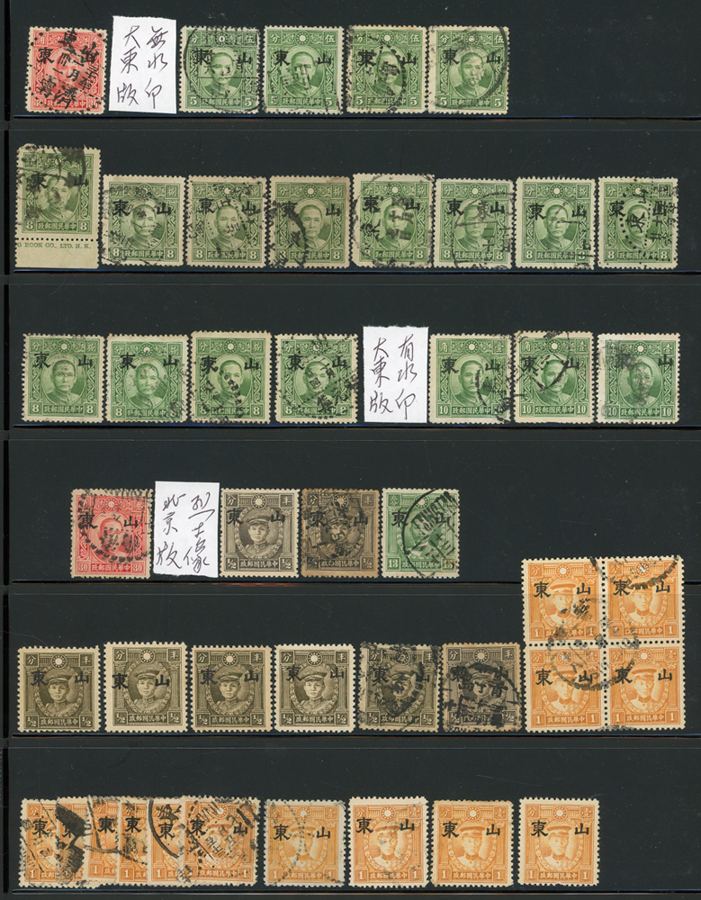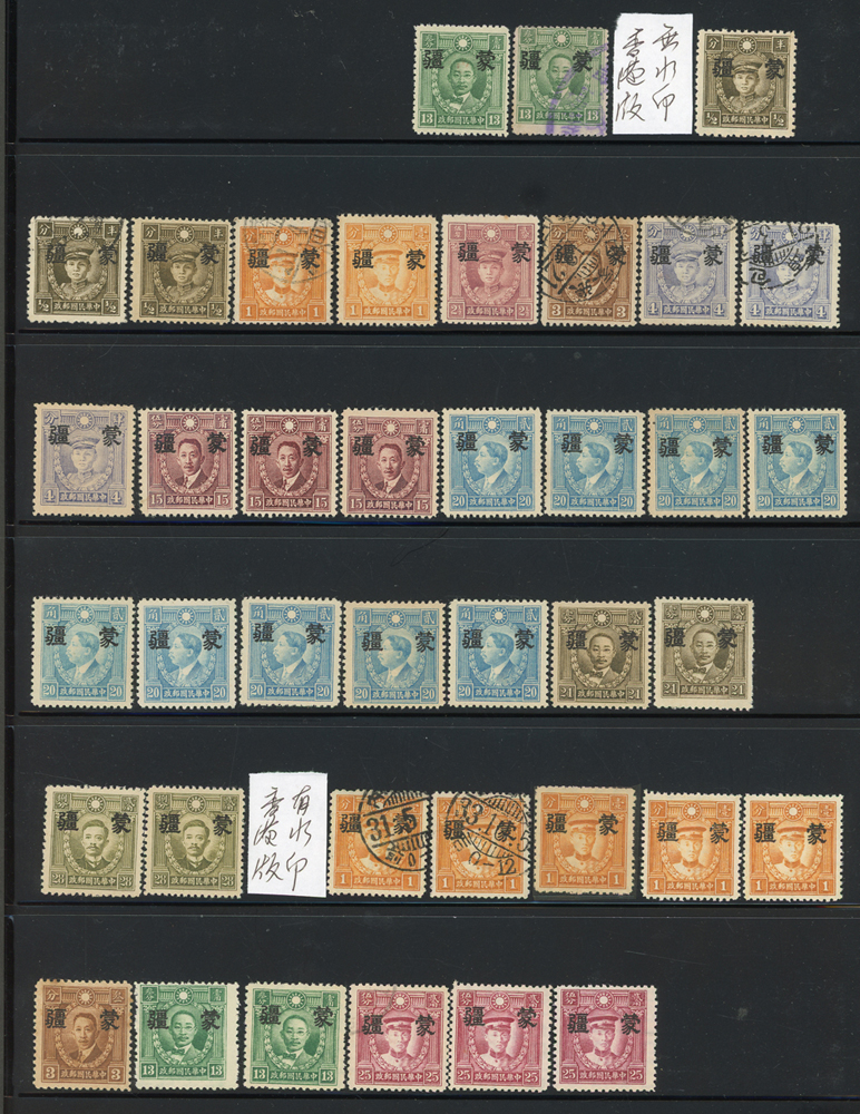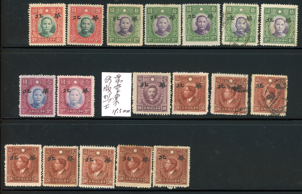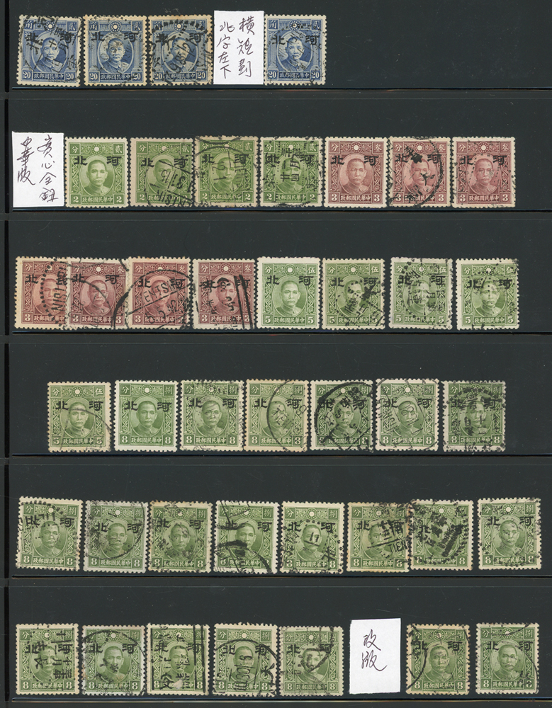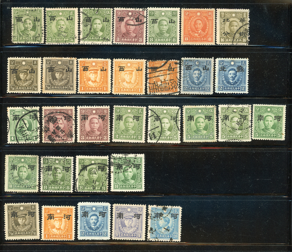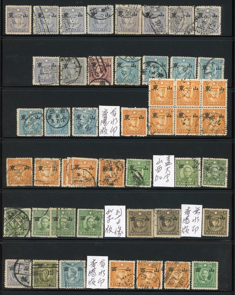 淪陷區郵票新.舊混和一組共1558枚,整理整齊於黑卡中,包括:新票715枚.舊票843枚,含:華北六區加蓋票-河北.山西.山東.河南,蒙疆大.小字,蒙疆加蓋半值票,仿版加蓋蒙疆,蒙疆加蓋改值,加蓋華北,新嘉坡陷落-河北.河南.山東.山西等等,品像混合或有重複,VF-F,歡迎至官網瀏覽全貌(Page 19)