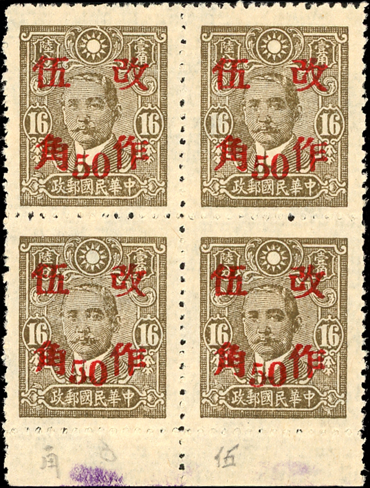 郵票分類 大清郵政 1911年以前清代~海關大龍及小龍郵票(1001-1028)清代~慈壽/紅印花及蟠龍郵票(1029-1065)清代~蟠龍郵戳/宣統及其他郵票(1066-1081)清代~商埠郵票(1136-1155)在華客郵郵票(1159-1167)中華民國郵政 1912~1949年民國~整批/整冊郵票(1189-1201)民國~常用郵票&變體票.趣味品(1202-1323)民國~紀念郵票(1324-1347)民國~專題/航空/欠資/附捐/儲金(1348-1366)民國~加蓋限省貼用/單位銀元郵票/郵戳(1367-1388)民國~郵票小冊(1389-1423)日偽政權~郵票(1704-1713)台灣 1888~2020年台灣~整批/整冊郵票(3501-3553)清代~台灣官用郵票(3584-3593)清代~台灣龍馬票(3594-3595)清代~台灣民主國獨虎票(3596-3600)台灣~老台幣時期郵票&變體票1945~1949(3696-3737)台灣~新台幣時期郵票&變體票1950~2000年(3816-4062)台灣~大全張(4063-4384)台灣~生肖筒(4385-4399)台灣~樣票(4400-4453)台灣~小全張(4454-4595)台灣~郵政贈品/紀念品(4596-4601)台灣~郵票小冊(4602-4621)台灣~自動化郵資券(4622-4645)台灣~年度郵票/年度錦冊/專冊(4648-4673)中國人民郵政 1949~2018年新中國~解放區郵票(6123-6127)新中國~普通/改值郵票(6141-6171)新中國~紀念/編號/特種郵票(6172-6187)新中國~J、T字頭郵票(6188-6229)新中國~小型張/小本票(6230-6253)新中國~編年票(6254-6276)中國香港及澳門~郵票(6305-6313)世界各國郵票日本郵票(6317-6326)外國郵票(A~Z)(6335-6349) 大清郵政 1911年以前 ↳清代~海關大龍及小龍郵票(1001-1028) ↳清代~慈壽/紅印花及蟠龍郵票(1029-1065) ↳清代~蟠龍郵戳/宣統及其他郵票(1066-1081) ↳清代~商埠郵票(1136-1155) ↳在華客郵郵票(1159-1167)中華民國郵政 1912~1949年 ↳民國~整批/整冊郵票(1189-1201) ↳民國~常用郵票&變體票.趣味品(1202-1323) ↳民國~紀念郵票(1324-1347) ↳民國~專題/航空/欠資/附捐/儲金(1348-1366) ↳民國~加蓋限省貼用/單位銀元郵票/郵戳(1367-1388) ↳民國~郵票小冊(1389-1423) ↳日偽政權~郵票(1704-1713)台灣 1888~2020年 ↳台灣~整批/整冊郵票(3501-3553) ↳清代~台灣官用郵票(3584-3593) ↳清代~台灣龍馬票(3594-3595) ↳清代~台灣民主國獨虎票(3596-3600) ↳台灣~老台幣時期郵票&變體票1945~1949(3696-3737) ↳台灣~新台幣時期郵票&變體票1950~2000年(3816-4062) ↳台灣~大全張(4063-4384) ↳台灣~生肖筒(4385-4399) ↳台灣~樣票(4400-4453) ↳台灣~小全張(4454-4595) ↳台灣~郵政贈品/紀念品(4596-4601) ↳台灣~郵票小冊(4602-4621) ↳台灣~自動化郵資券(4622-4645) ↳台灣~年度郵票/年度錦冊/專冊(4648-4673)中國人民郵政 1949~2018年 ↳新中國~解放區郵票(6123-6127) ↳新中國~普通/改值郵票(6141-6171) ↳新中國~紀念/編號/特種郵票(6172-6187) ↳新中國~J、T字頭郵票(6188-6229) ↳新中國~小型張/小本票(6230-6253) ↳新中國~編年票(6254-6276) ↳中國香港及澳門~郵票(6305-6313)世界各國郵票 ↳日本郵票(6317-6326) ↳外國郵票(A~Z)(6335-6349) 點大圖放大展示,點小圖切換 1 國父像中信版16分總局加蓋『改作伍角』新票4方連7件共28枚,VF-F(Page 21) 結標時間 2025-12-16 11:19:20 拍品編號:1239 起拍價:NT$100 當前價:NT$100 自動出價 直接出價 出價 系統將按出價級數,依序為您比(出)價至上限金額 提醒您:直接出價後不可將金額改低,只能改高,蟠龍無法降低您的出價,最高出價者無法取消出價 (查看出價說明) 得標說明:需按得標價另加10%佣金 當前加價幅度:NT$100元 (查看加價級數表) 回上頁 線上出價記錄 線上 1 人次,書面 0 人次 競價客戶 所在地 出價時間 出價金額 出價方式 l******6 (領先) 台灣 2025-11-25 14:04:29 NT$100 自動出價 問與答 目前尚無提問 我要提問 請先登入會員