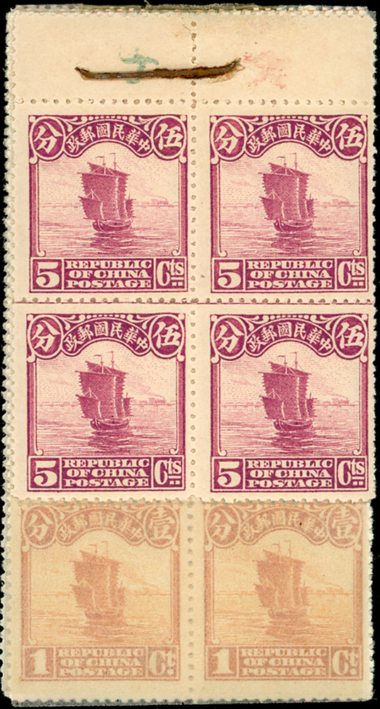 1923年帆船郵票小冊一冊,封皮與郵票拆開展示,含北京二版帆船1分6枚,3分18枚及5分8枚,郵票完整無缺,原釘尚在,陳目#BK11,VF,源自日本資深藏家(Page 30)