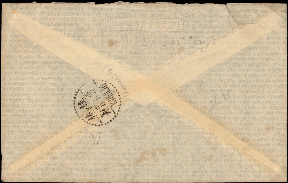 1943年湖南經印度寄英國航空封,貼國父像中信版1元2枚.湖南加蓋『改作伍角』1枚.國父像紐約版2元1枚.香港商務版烈士像2角1枚.國父像百城一版10元1枚.國父像香港大東版5分1枚,銷湖南邵陽32.6.29戳,背銷桂林32.7.4中轉戳(Page 37)