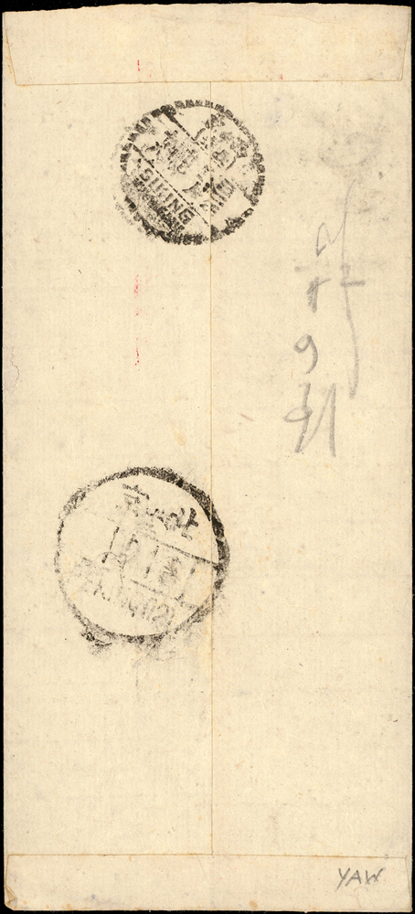 信封分類 大清郵政 1911年以前清代~國家郵政史(1082-1112)清代~商埠郵政史(1156-1158)在華客郵郵史(1168-1188)中華民國郵政 1912~1949年民國~郵政史(1424-1537)民國~名人封(1538-1547)民國~防盜(1548-1559)民國~首航封(1560-1570)民國~欠資封(1571-1574)民國~檢查封(1575-1599)民國~行動郵局/信櫃(1600-1613)兩岸通郵史(1933年-1989年)(1614-1632)民國~郵政匯兌(1633-1644)民國~民信局/僑批(1645-1651)民國~郵政明信片(1652-1659)民國~風景明信片(1660-1683)民國~國內及國際航空郵簡(1684-1703)日偽政權~郵政史(1714-1723)台灣 1888~2020年台灣~整批/整冊信封(3554-3583)日治時期~台灣郵史1895~1945(3601-3661)日治時期~台灣明信片(3662-3688)日治時期~台灣風景片(3689-3695)台灣老台幣時期~國父像火炬圖『限臺灣省用』明信片(3738-3739)台灣~老台幣時期郵政史1945~1949(3740-3815)台灣~自動化實寄封(4646-4647)台灣~新台幣時期郵政史(6001-6041)大陳島(6042)台灣~代辦所/欠資/首航(6043-6055)台灣~郵政匯兌(6056-6073)台灣~首日封(6074-6090)台灣~郵資封/郵政明信片(6091-6100)台灣~原圖卡(6101-6113)台灣~國內及國際航空郵簡(6114-6122)中國人民郵政 1949~2018年新中國~解放區郵史(6128-6140)新中國~郵政史(6277-6289)新中國~郵政匯兌/郵資封片(6290-6304)中國香港~郵政史(6314-6316)世界各國郵票日本郵政史(6327-6334)外國信封(A~Z)(6350-6365) 大清郵政 1911年以前 ↳清代~國家郵政史(1082-1112) ↳清代~商埠郵政史(1156-1158) ↳在華客郵郵史(1168-1188)中華民國郵政 1912~1949年 ↳民國~郵政史(1424-1537) ↳民國~名人封(1538-1547) ↳民國~防盜(1548-1559) ↳民國~首航封(1560-1570) ↳民國~欠資封(1571-1574) ↳民國~檢查封(1575-1599) ↳民國~行動郵局/信櫃(1600-1613) ↳兩岸通郵史(1933年-1989年)(1614-1632) ↳民國~郵政匯兌(1633-1644) ↳民國~民信局/僑批(1645-1651) ↳民國~郵政明信片(1652-1659) ↳民國~風景明信片(1660-1683) ↳民國~國內及國際航空郵簡(1684-1703) ↳日偽政權~郵政史(1714-1723)台灣 1888~2020年 ↳台灣~整批/整冊信封(3554-3583) ↳日治時期~台灣郵史1895~1945(3601-3661) ↳日治時期~台灣明信片(3662-3688) ↳日治時期~台灣風景片(3689-3695) ↳台灣老台幣時期~國父像火炬圖『限臺灣省用』明信片(3738-3739) ↳台灣~老台幣時期郵政史1945~1949(3740-3815) ↳台灣~自動化實寄封(4646-4647) ↳台灣~新台幣時期郵政史(6001-6041) ↳大陳島(6042) ↳台灣~代辦所/欠資/首航(6043-6055) ↳台灣~郵政匯兌(6056-6073) ↳台灣~首日封(6074-6090) ↳台灣~郵資封/郵政明信片(6091-6100) ↳台灣~原圖卡(6101-6113) ↳台灣~國內及國際航空郵簡(6114-6122)中國人民郵政 1949~2018年 ↳新中國~解放區郵史(6128-6140) ↳新中國~郵政史(6277-6289) ↳新中國~郵政匯兌/郵資封片(6290-6304) ↳中國香港~郵政史(6314-6316)世界各國郵票 ↳日本郵政史(6327-6334) ↳外國信封(A~Z)(6350-6365) 點大圖放大展示,點小圖切換 1 1943年西安寄北京中式封,貼國父像中信版『改作伍角』1枚,銷西京(長安)三二年戳,背銷北京到達戳日期不清(Page 37) 結標時間 2025-12-16 12:40:00 拍品編號:1481 起拍價:NT$100 當前價:NT$100 自動出價 直接出價 出價 系統將按出價級數,依序為您比(出)價至上限金額 提醒您:直接出價後不可將金額改低,只能改高,蟠龍無法降低您的出價,最高出價者無法取消出價 (查看出價說明) 得標說明:需按得標價另加10%佣金 當前加價幅度:NT$100元 (查看加價級數表) 回上頁 線上出價記錄 線上 1 人次,書面 0 人次 競價客戶 所在地 出價時間 出價金額 出價方式 l******6 (領先) 台灣 2025-11-25 15:06:48 NT$100 自動出價 問與答 目前尚無提問 我要提問 請先登入會員