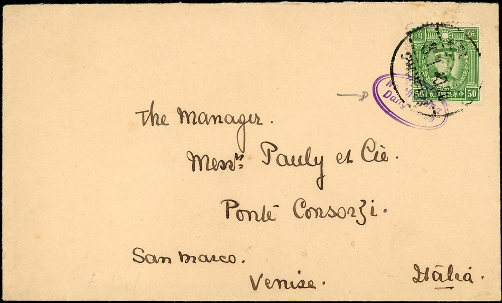 信封分類 大清郵政 1911年以前清代~國家郵政史(1082-1112)清代~商埠郵政史(1156-1158)在華客郵郵史(1168-1188)中華民國郵政 1912~1949年民國~郵政史(1424-1537)民國~名人封(1538-1547)民國~防盜(1548-1559)民國~首航封(1560-1570)民國~欠資封(1571-1574)民國~檢查封(1575-1599)民國~行動郵局/信櫃(1600-1613)兩岸通郵史(1933年-1989年)(1614-1632)民國~郵政匯兌(1633-1644)民國~民信局/僑批(1645-1651)民國~郵政明信片(1652-1659)民國~風景明信片(1660-1683)民國~國內及國際航空郵簡(1684-1703)日偽政權~郵政史(1714-1723)台灣 1888~2020年台灣~整批/整冊信封(3554-3583)日治時期~台灣郵史1895~1945(3601-3661)日治時期~台灣明信片(3662-3688)日治時期~台灣風景片(3689-3695)台灣老台幣時期~國父像火炬圖『限臺灣省用』明信片(3738-3739)台灣~老台幣時期郵政史1945~1949(3740-3815)台灣~自動化實寄封(4646-4647)台灣~新台幣時期郵政史(6001-6041)大陳島(6042)台灣~代辦所/欠資/首航(6043-6055)台灣~郵政匯兌(6056-6073)台灣~首日封(6074-6090)台灣~郵資封/郵政明信片(6091-6100)台灣~原圖卡(6101-6113)台灣~國內及國際航空郵簡(6114-6122)中國人民郵政 1949~2018年新中國~解放區郵史(6128-6140)新中國~郵政史(6277-6289)新中國~郵政匯兌/郵資封片(6290-6304)中國香港~郵政史(6314-6316)世界各國郵票日本郵政史(6327-6334)外國信封(A~Z)(6350-6365) 大清郵政 1911年以前 ↳清代~國家郵政史(1082-1112) ↳清代~商埠郵政史(1156-1158) ↳在華客郵郵史(1168-1188)中華民國郵政 1912~1949年 ↳民國~郵政史(1424-1537) ↳民國~名人封(1538-1547) ↳民國~防盜(1548-1559) ↳民國~首航封(1560-1570) ↳民國~欠資封(1571-1574) ↳民國~檢查封(1575-1599) ↳民國~行動郵局/信櫃(1600-1613) ↳兩岸通郵史(1933年-1989年)(1614-1632) ↳民國~郵政匯兌(1633-1644) ↳民國~民信局/僑批(1645-1651) ↳民國~郵政明信片(1652-1659) ↳民國~風景明信片(1660-1683) ↳民國~國內及國際航空郵簡(1684-1703) ↳日偽政權~郵政史(1714-1723)台灣 1888~2020年 ↳台灣~整批/整冊信封(3554-3583) ↳日治時期~台灣郵史1895~1945(3601-3661) ↳日治時期~台灣明信片(3662-3688) ↳日治時期~台灣風景片(3689-3695) ↳台灣老台幣時期~國父像火炬圖『限臺灣省用』明信片(3738-3739) ↳台灣~老台幣時期郵政史1945~1949(3740-3815) ↳台灣~自動化實寄封(4646-4647) ↳台灣~新台幣時期郵政史(6001-6041) ↳大陳島(6042) ↳台灣~代辦所/欠資/首航(6043-6055) ↳台灣~郵政匯兌(6056-6073) ↳台灣~首日封(6074-6090) ↳台灣~郵資封/郵政明信片(6091-6100) ↳台灣~原圖卡(6101-6113) ↳台灣~國內及國際航空郵簡(6114-6122)中國人民郵政 1949~2018年 ↳新中國~解放區郵史(6128-6140) ↳新中國~郵政史(6277-6289) ↳新中國~郵政匯兌/郵資封片(6290-6304) ↳中國香港~郵政史(6314-6316)世界各國郵票 ↳日本郵政史(6327-6334) ↳外國信封(A~Z)(6350-6365) 點大圖放大展示,點小圖切換 1940年上海寄義大利封,貼香港商務版烈士像5角1枚,銷上海40.1.8中英戳,票上另銷藍色橢圓形型『North-China Daily News』防盜騎縫私章;林茂興舊藏(Page 44) 結標時間 2025-12-16 13:05:20 拍品編號:1557 起拍價:NT$100 當前價:NT$100 自動出價 直接出價 出價 系統將按出價級數,依序為您比(出)價至上限金額 提醒您:直接出價後不可將金額改低,只能改高,蟠龍無法降低您的出價,最高出價者無法取消出價 (查看出價說明) 得標說明:需按得標價另加10%佣金 當前加價幅度:NT$0元 (查看加價級數表) 回上頁 線上出價記錄 線上 0 人次,書面 0 人次 競價客戶 所在地 出價時間 出價金額 出價方式 問與答 目前尚無提問 我要提問 請先登入會員