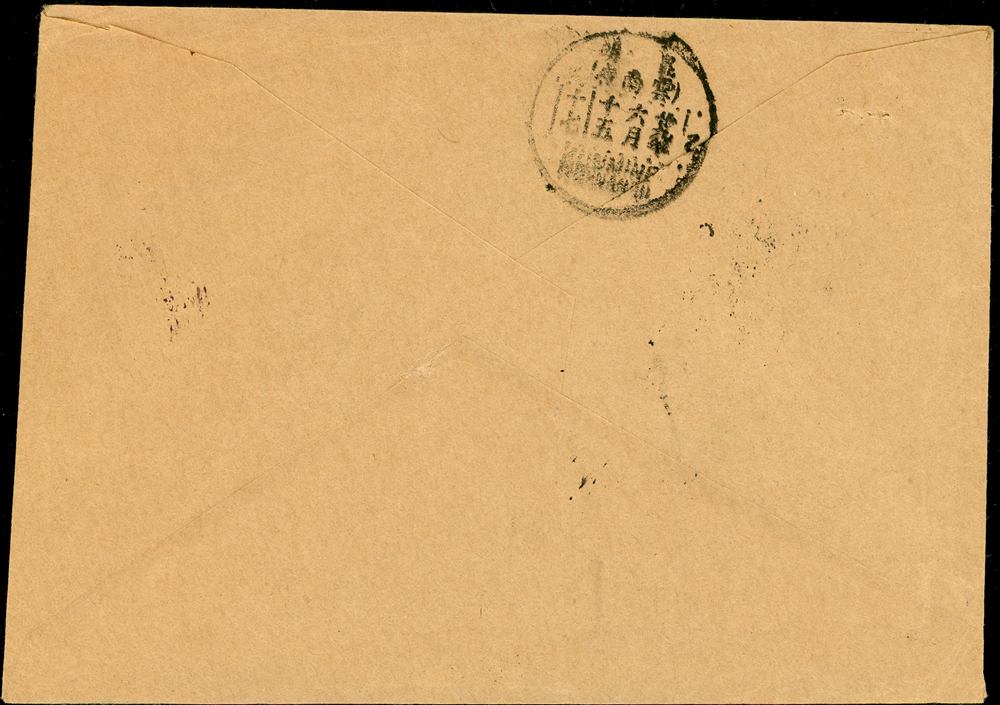 1940年東川寄美國西式封,貼香港商務版烈士像1角1枚,銷東川白沙29.6.8戳,經重慶29.6.9,昆明(雲南府)29.6.15中轉,票上另銷黑色方型『國立中央圖書館』防盜騎縫私章;林茂興舊藏(Page 44)