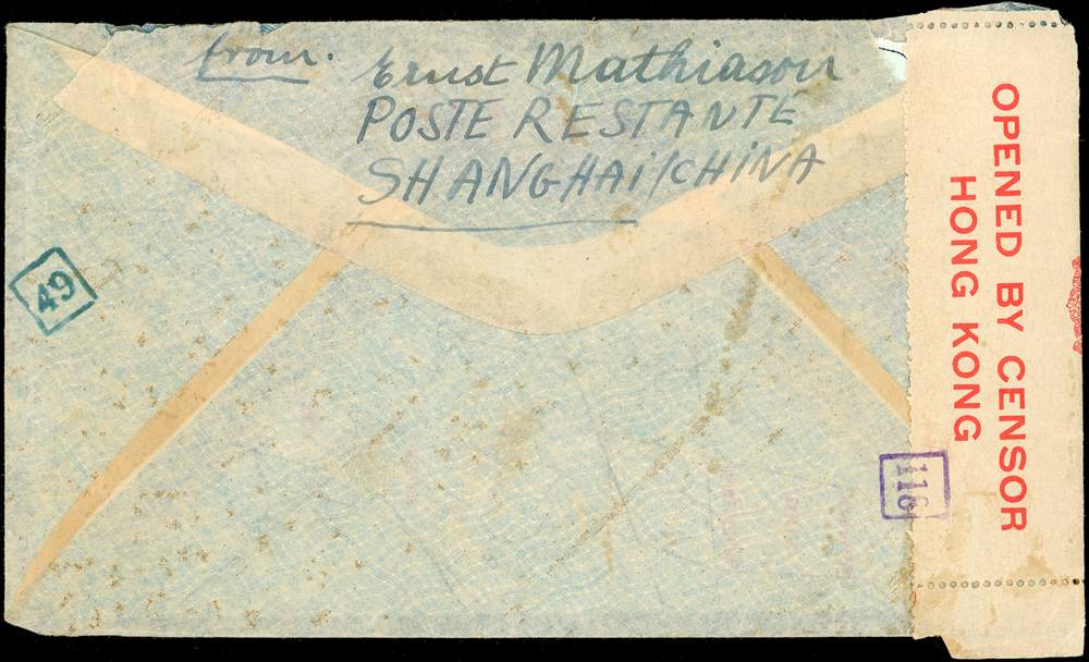信封分類 大清郵政 1911年以前清代~國家郵政史(1082-1112)清代~商埠郵政史(1156-1158)在華客郵郵史(1168-1188)中華民國郵政 1912~1949年民國~郵政史(1424-1537)民國~名人封(1538-1547)民國~防盜(1548-1559)民國~首航封(1560-1570)民國~欠資封(1571-1574)民國~檢查封(1575-1599)民國~行動郵局/信櫃(1600-1613)兩岸通郵史(1933年-1989年)(1614-1632)民國~郵政匯兌(1633-1644)民國~民信局/僑批(1645-1651)民國~郵政明信片(1652-1659)民國~風景明信片(1660-1683)民國~國內及國際航空郵簡(1684-1703)日偽政權~郵政史(1714-1723)台灣 1888~2020年台灣~整批/整冊信封(3554-3583)日治時期~台灣郵史1895~1945(3601-3661)日治時期~台灣明信片(3662-3688)日治時期~台灣風景片(3689-3695)台灣老台幣時期~國父像火炬圖『限臺灣省用』明信片(3738-3739)台灣~老台幣時期郵政史1945~1949(3740-3815)台灣~自動化實寄封(4646-4647)台灣~新台幣時期郵政史(6001-6041)大陳島(6042)台灣~代辦所/欠資/首航(6043-6055)台灣~郵政匯兌(6056-6073)台灣~首日封(6074-6090)台灣~郵資封/郵政明信片(6091-6100)台灣~原圖卡(6101-6113)台灣~國內及國際航空郵簡(6114-6122)中國人民郵政 1949~2018年新中國~解放區郵史(6128-6140)新中國~郵政史(6277-6289)新中國~郵政匯兌/郵資封片(6290-6304)中國香港~郵政史(6314-6316)世界各國郵票日本郵政史(6327-6334)外國信封(A~Z)(6350-6365) 大清郵政 1911年以前 ↳清代~國家郵政史(1082-1112) ↳清代~商埠郵政史(1156-1158) ↳在華客郵郵史(1168-1188)中華民國郵政 1912~1949年 ↳民國~郵政史(1424-1537) ↳民國~名人封(1538-1547) ↳民國~防盜(1548-1559) ↳民國~首航封(1560-1570) ↳民國~欠資封(1571-1574) ↳民國~檢查封(1575-1599) ↳民國~行動郵局/信櫃(1600-1613) ↳兩岸通郵史(1933年-1989年)(1614-1632) ↳民國~郵政匯兌(1633-1644) ↳民國~民信局/僑批(1645-1651) ↳民國~郵政明信片(1652-1659) ↳民國~風景明信片(1660-1683) ↳民國~國內及國際航空郵簡(1684-1703) ↳日偽政權~郵政史(1714-1723)台灣 1888~2020年 ↳台灣~整批/整冊信封(3554-3583) ↳日治時期~台灣郵史1895~1945(3601-3661) ↳日治時期~台灣明信片(3662-3688) ↳日治時期~台灣風景片(3689-3695) ↳台灣老台幣時期~國父像火炬圖『限臺灣省用』明信片(3738-3739) ↳台灣~老台幣時期郵政史1945~1949(3740-3815) ↳台灣~自動化實寄封(4646-4647) ↳台灣~新台幣時期郵政史(6001-6041) ↳大陳島(6042) ↳台灣~代辦所/欠資/首航(6043-6055) ↳台灣~郵政匯兌(6056-6073) ↳台灣~首日封(6074-6090) ↳台灣~郵資封/郵政明信片(6091-6100) ↳台灣~原圖卡(6101-6113) ↳台灣~國內及國際航空郵簡(6114-6122)中國人民郵政 1949~2018年 ↳新中國~解放區郵史(6128-6140) ↳新中國~郵政史(6277-6289) ↳新中國~郵政匯兌/郵資封片(6290-6304) ↳中國香港~郵政史(6314-6316)世界各國郵票 ↳日本郵政史(6327-6334) ↳外國信封(A~Z)(6350-6365) 點大圖放大展示,點小圖切換 1939-1940年間,上海水路寄南非經香港檢查封,貼北京版烈士像5角1枚,銷戳不清,經香港加貼香港英軍檢查封條,蓋『118』騎縫章(Page 45) 結標時間 2025-12-16 13:14:00 拍品編號:1583 起拍價:NT$100 當前價:NT$100 自動出價 直接出價 出價 系統將按出價級數,依序為您比(出)價至上限金額 提醒您:直接出價後不可將金額改低,只能改高,蟠龍無法降低您的出價,最高出價者無法取消出價 (查看出價說明) 得標說明:需按得標價另加10%佣金 當前加價幅度:NT$100元 (查看加價級數表) 回上頁 線上出價記錄 線上 1 人次,書面 0 人次 競價客戶 所在地 出價時間 出價金額 出價方式 l******6 (領先) 台灣 2025-11-25 15:50:06 NT$100 自動出價 問與答 目前尚無提問 我要提問 請先登入會員