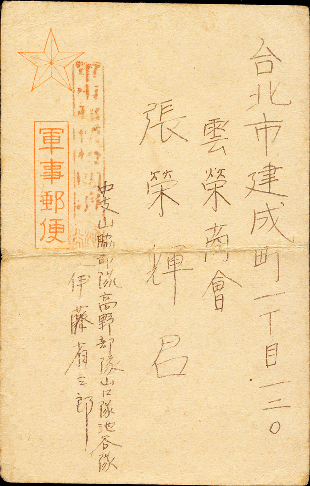 信封分類 大清郵政 1911年以前清代~國家郵政史(1082-1112)清代~商埠郵政史(1156-1158)在華客郵郵史(1168-1188)中華民國郵政 1912~1949年民國~郵政史(1424-1537)民國~名人封(1538-1547)民國~防盜(1548-1559)民國~首航封(1560-1570)民國~欠資封(1571-1574)民國~檢查封(1575-1599)民國~行動郵局/信櫃(1600-1613)兩岸通郵史(1933年-1989年)(1614-1632)民國~郵政匯兌(1633-1644)民國~民信局/僑批(1645-1651)民國~郵政明信片(1652-1659)民國~風景明信片(1660-1683)民國~國內及國際航空郵簡(1684-1703)日偽政權~郵政史(1714-1723)台灣 1888~2020年台灣~整批/整冊信封(3554-3583)日治時期~台灣郵史1895~1945(3601-3661)日治時期~台灣明信片(3662-3688)日治時期~台灣風景片(3689-3695)台灣老台幣時期~國父像火炬圖『限臺灣省用』明信片(3738-3739)台灣~老台幣時期郵政史1945~1949(3740-3815)台灣~自動化實寄封(4646-4647)台灣~新台幣時期郵政史(6001-6041)大陳島(6042)台灣~代辦所/欠資/首航(6043-6055)台灣~郵政匯兌(6056-6073)台灣~首日封(6074-6090)台灣~郵資封/郵政明信片(6091-6100)台灣~原圖卡(6101-6113)台灣~國內及國際航空郵簡(6114-6122)中國人民郵政 1949~2018年新中國~解放區郵史(6128-6140)新中國~郵政史(6277-6289)新中國~郵政匯兌/郵資封片(6290-6304)中國香港~郵政史(6314-6316)世界各國郵票日本郵政史(6327-6334)外國信封(A~Z)(6350-6365) 大清郵政 1911年以前 ↳清代~國家郵政史(1082-1112) ↳清代~商埠郵政史(1156-1158) ↳在華客郵郵史(1168-1188)中華民國郵政 1912~1949年 ↳民國~郵政史(1424-1537) ↳民國~名人封(1538-1547) ↳民國~防盜(1548-1559) ↳民國~首航封(1560-1570) ↳民國~欠資封(1571-1574) ↳民國~檢查封(1575-1599) ↳民國~行動郵局/信櫃(1600-1613) ↳兩岸通郵史(1933年-1989年)(1614-1632) ↳民國~郵政匯兌(1633-1644) ↳民國~民信局/僑批(1645-1651) ↳民國~郵政明信片(1652-1659) ↳民國~風景明信片(1660-1683) ↳民國~國內及國際航空郵簡(1684-1703) ↳日偽政權~郵政史(1714-1723)台灣 1888~2020年 ↳台灣~整批/整冊信封(3554-3583) ↳日治時期~台灣郵史1895~1945(3601-3661) ↳日治時期~台灣明信片(3662-3688) ↳日治時期~台灣風景片(3689-3695) ↳台灣老台幣時期~國父像火炬圖『限臺灣省用』明信片(3738-3739) ↳台灣~老台幣時期郵政史1945~1949(3740-3815) ↳台灣~自動化實寄封(4646-4647) ↳台灣~新台幣時期郵政史(6001-6041) ↳大陳島(6042) ↳台灣~代辦所/欠資/首航(6043-6055) ↳台灣~郵政匯兌(6056-6073) ↳台灣~首日封(6074-6090) ↳台灣~郵資封/郵政明信片(6091-6100) ↳台灣~原圖卡(6101-6113) ↳台灣~國內及國際航空郵簡(6114-6122)中國人民郵政 1949~2018年 ↳新中國~解放區郵史(6128-6140) ↳新中國~郵政史(6277-6289) ↳新中國~郵政匯兌/郵資封片(6290-6304) ↳中國香港~郵政史(6314-6316)世界各國郵票 ↳日本郵政史(6327-6334) ↳外國信封(A~Z)(6350-6365) 點大圖放大展示,點小圖切換 1940.1.1中支高野部隊寄台北市軍事郵便賀年明信片,銷紅色『軍事郵便檢閱濟』長框型檢查戳,片中折(Page 47) 結標時間 2025-12-16 13:25:20 拍品編號:1617 起拍價:NT$2000 當前價:NT$2000 自動出價 直接出價 出價 系統將按出價級數,依序為您比(出)價至上限金額 提醒您:直接出價後不可將金額改低,只能改高,蟠龍無法降低您的出價,最高出價者無法取消出價 (查看出價說明) 得標說明:需按得標價另加10%佣金 當前加價幅度:NT$0元 (查看加價級數表) 回上頁 線上出價記錄 線上 0 人次,書面 0 人次 競價客戶 所在地 出價時間 出價金額 出價方式 問與答 目前尚無提問 我要提問 請先登入會員