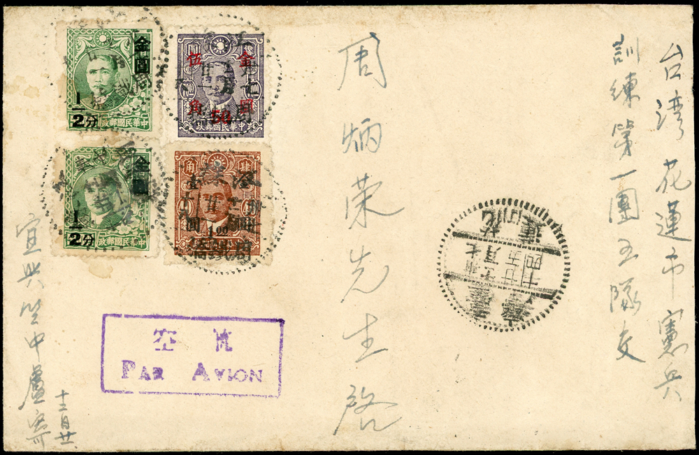 信封分類 大清郵政 1911年以前清代~國家郵政史(1082-1112)清代~商埠郵政史(1156-1158)在華客郵郵史(1168-1188)中華民國郵政 1912~1949年民國~郵政史(1424-1537)民國~名人封(1538-1547)民國~防盜(1548-1559)民國~首航封(1560-1570)民國~欠資封(1571-1574)民國~檢查封(1575-1599)民國~行動郵局/信櫃(1600-1613)兩岸通郵史(1933年-1989年)(1614-1632)民國~郵政匯兌(1633-1644)民國~民信局/僑批(1645-1651)民國~郵政明信片(1652-1659)民國~風景明信片(1660-1683)民國~國內及國際航空郵簡(1684-1703)日偽政權~郵政史(1714-1723)台灣 1888~2020年台灣~整批/整冊信封(3554-3583)日治時期~台灣郵史1895~1945(3601-3661)日治時期~台灣明信片(3662-3688)日治時期~台灣風景片(3689-3695)台灣老台幣時期~國父像火炬圖『限臺灣省用』明信片(3738-3739)台灣~老台幣時期郵政史1945~1949(3740-3815)台灣~自動化實寄封(4646-4647)台灣~新台幣時期郵政史(6001-6041)大陳島(6042)台灣~代辦所/欠資/首航(6043-6055)台灣~郵政匯兌(6056-6073)台灣~首日封(6074-6090)台灣~郵資封/郵政明信片(6091-6100)台灣~原圖卡(6101-6113)台灣~國內及國際航空郵簡(6114-6122)中國人民郵政 1949~2018年新中國~解放區郵史(6128-6140)新中國~郵政史(6277-6289)新中國~郵政匯兌/郵資封片(6290-6304)中國香港~郵政史(6314-6316)世界各國郵票日本郵政史(6327-6334)外國信封(A~Z)(6350-6365) 大清郵政 1911年以前 ↳清代~國家郵政史(1082-1112) ↳清代~商埠郵政史(1156-1158) ↳在華客郵郵史(1168-1188)中華民國郵政 1912~1949年 ↳民國~郵政史(1424-1537) ↳民國~名人封(1538-1547) ↳民國~防盜(1548-1559) ↳民國~首航封(1560-1570) ↳民國~欠資封(1571-1574) ↳民國~檢查封(1575-1599) ↳民國~行動郵局/信櫃(1600-1613) ↳兩岸通郵史(1933年-1989年)(1614-1632) ↳民國~郵政匯兌(1633-1644) ↳民國~民信局/僑批(1645-1651) ↳民國~郵政明信片(1652-1659) ↳民國~風景明信片(1660-1683) ↳民國~國內及國際航空郵簡(1684-1703) ↳日偽政權~郵政史(1714-1723)台灣 1888~2020年 ↳台灣~整批/整冊信封(3554-3583) ↳日治時期~台灣郵史1895~1945(3601-3661) ↳日治時期~台灣明信片(3662-3688) ↳日治時期~台灣風景片(3689-3695) ↳台灣老台幣時期~國父像火炬圖『限臺灣省用』明信片(3738-3739) ↳台灣~老台幣時期郵政史1945~1949(3740-3815) ↳台灣~自動化實寄封(4646-4647) ↳台灣~新台幣時期郵政史(6001-6041) ↳大陳島(6042) ↳台灣~代辦所/欠資/首航(6043-6055) ↳台灣~郵政匯兌(6056-6073) ↳台灣~首日封(6074-6090) ↳台灣~郵資封/郵政明信片(6091-6100) ↳台灣~原圖卡(6101-6113) ↳台灣~國內及國際航空郵簡(6114-6122)中國人民郵政 1949~2018年 ↳新中國~解放區郵史(6128-6140) ↳新中國~郵政史(6277-6289) ↳新中國~郵政匯兌/郵資封片(6290-6304) ↳中國香港~郵政史(6314-6316)世界各國郵票 ↳日本郵政史(6327-6334) ↳外國信封(A~Z)(6350-6365) 點大圖放大展示,點小圖切換 1948年江蘇寄台灣花蓮航空封,正背面貼金元票22枚計1.6元,銷江蘇周鐵橋卅七.十二月卄一,花蓮卅七.十二月卄五到戳(Page 47) 結標時間 2025-12-16 13:27:20 拍品編號:1623 起拍價:NT$100 當前價:NT$100 自動出價 直接出價 出價 系統將按出價級數,依序為您比(出)價至上限金額 提醒您:直接出價後不可將金額改低,只能改高,蟠龍無法降低您的出價,最高出價者無法取消出價 (查看出價說明) 得標說明:需按得標價另加10%佣金 當前加價幅度:NT$100元 (查看加價級數表) 回上頁 線上出價記錄 線上 1 人次,書面 0 人次 競價客戶 所在地 出價時間 出價金額 出價方式 l****9 (領先) 台灣 2025-11-25 11:00:32 NT$100 自動出價 問與答 目前尚無提問 我要提問 請先登入會員
