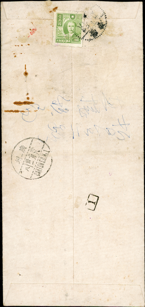 信封分類 大清郵政 1911年以前清代~國家郵政史(1082-1112)清代~商埠郵政史(1156-1158)在華客郵郵史(1168-1188)中華民國郵政 1912~1949年民國~郵政史(1424-1537)民國~名人封(1538-1547)民國~防盜(1548-1559)民國~首航封(1560-1570)民國~欠資封(1571-1574)民國~檢查封(1575-1599)民國~行動郵局/信櫃(1600-1613)兩岸通郵史(1933年-1989年)(1614-1632)民國~郵政匯兌(1633-1644)民國~民信局/僑批(1645-1651)民國~郵政明信片(1652-1659)民國~風景明信片(1660-1683)民國~國內及國際航空郵簡(1684-1703)日偽政權~郵政史(1714-1723)台灣 1888~2020年台灣~整批/整冊信封(3554-3583)日治時期~台灣郵史1895~1945(3601-3661)日治時期~台灣明信片(3662-3688)日治時期~台灣風景片(3689-3695)台灣老台幣時期~國父像火炬圖『限臺灣省用』明信片(3738-3739)台灣~老台幣時期郵政史1945~1949(3740-3815)台灣~自動化實寄封(4646-4647)台灣~新台幣時期郵政史(6001-6041)大陳島(6042)台灣~代辦所/欠資/首航(6043-6055)台灣~郵政匯兌(6056-6073)台灣~首日封(6074-6090)台灣~郵資封/郵政明信片(6091-6100)台灣~原圖卡(6101-6113)台灣~國內及國際航空郵簡(6114-6122)中國人民郵政 1949~2018年新中國~解放區郵史(6128-6140)新中國~郵政史(6277-6289)新中國~郵政匯兌/郵資封片(6290-6304)中國香港~郵政史(6314-6316)世界各國郵票日本郵政史(6327-6334)外國信封(A~Z)(6350-6365) 大清郵政 1911年以前 ↳清代~國家郵政史(1082-1112) ↳清代~商埠郵政史(1156-1158) ↳在華客郵郵史(1168-1188)中華民國郵政 1912~1949年 ↳民國~郵政史(1424-1537) ↳民國~名人封(1538-1547) ↳民國~防盜(1548-1559) ↳民國~首航封(1560-1570) ↳民國~欠資封(1571-1574) ↳民國~檢查封(1575-1599) ↳民國~行動郵局/信櫃(1600-1613) ↳兩岸通郵史(1933年-1989年)(1614-1632) ↳民國~郵政匯兌(1633-1644) ↳民國~民信局/僑批(1645-1651) ↳民國~郵政明信片(1652-1659) ↳民國~風景明信片(1660-1683) ↳民國~國內及國際航空郵簡(1684-1703) ↳日偽政權~郵政史(1714-1723)台灣 1888~2020年 ↳台灣~整批/整冊信封(3554-3583) ↳日治時期~台灣郵史1895~1945(3601-3661) ↳日治時期~台灣明信片(3662-3688) ↳日治時期~台灣風景片(3689-3695) ↳台灣老台幣時期~國父像火炬圖『限臺灣省用』明信片(3738-3739) ↳台灣~老台幣時期郵政史1945~1949(3740-3815) ↳台灣~自動化實寄封(4646-4647) ↳台灣~新台幣時期郵政史(6001-6041) ↳大陳島(6042) ↳台灣~代辦所/欠資/首航(6043-6055) ↳台灣~郵政匯兌(6056-6073) ↳台灣~首日封(6074-6090) ↳台灣~郵資封/郵政明信片(6091-6100) ↳台灣~原圖卡(6101-6113) ↳台灣~國內及國際航空郵簡(6114-6122)中國人民郵政 1949~2018年 ↳新中國~解放區郵史(6128-6140) ↳新中國~郵政史(6277-6289) ↳新中國~郵政匯兌/郵資封片(6290-6304) ↳中國香港~郵政史(6314-6316)世界各國郵票 ↳日本郵政史(6327-6334) ↳外國信封(A~Z)(6350-6365) 點大圖放大展示,點小圖切換 1949年台北監察院寄廣州中式航快封,背貼國父像農作物二版限臺灣貼用1萬元1枚,銷臺灣臺北38.7.29戳,旁銷廣州38.7.31到達戳(Page 47) 結標時間 2025-12-16 13:28:40 拍品編號:1627 起拍價:NT$100 當前價:NT$100 自動出價 直接出價 出價 系統將按出價級數,依序為您比(出)價至上限金額 提醒您:直接出價後不可將金額改低,只能改高,蟠龍無法降低您的出價,最高出價者無法取消出價 (查看出價說明) 得標說明:需按得標價另加10%佣金 當前加價幅度:NT$100元 (查看加價級數表) 回上頁 線上出價記錄 線上 1 人次,書面 0 人次 競價客戶 所在地 出價時間 出價金額 出價方式 l****9 (領先) 台灣 2025-11-25 11:01:15 NT$100 自動出價 問與答 目前尚無提問 我要提問 請先登入會員