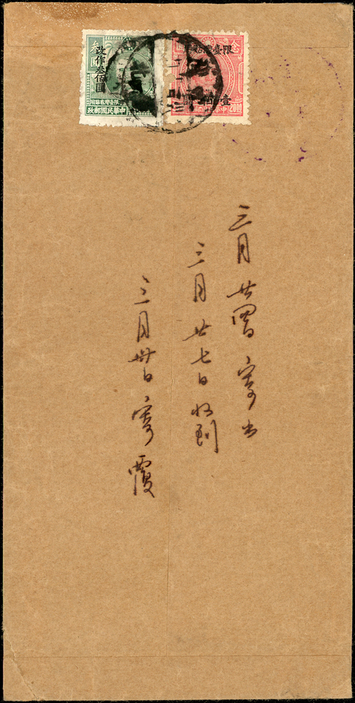 信封分類 大清郵政 1911年以前清代~國家郵政史(1082-1112)清代~商埠郵政史(1156-1158)在華客郵郵史(1168-1188)中華民國郵政 1912~1949年民國~郵政史(1424-1537)民國~名人封(1538-1547)民國~防盜(1548-1559)民國~首航封(1560-1570)民國~欠資封(1571-1574)民國~檢查封(1575-1599)民國~行動郵局/信櫃(1600-1613)兩岸通郵史(1933年-1989年)(1614-1632)民國~郵政匯兌(1633-1644)民國~民信局/僑批(1645-1651)民國~郵政明信片(1652-1659)民國~風景明信片(1660-1683)民國~國內及國際航空郵簡(1684-1703)日偽政權~郵政史(1714-1723)台灣 1888~2020年台灣~整批/整冊信封(3554-3583)日治時期~台灣郵史1895~1945(3601-3661)日治時期~台灣明信片(3662-3688)日治時期~台灣風景片(3689-3695)台灣老台幣時期~國父像火炬圖『限臺灣省用』明信片(3738-3739)台灣~老台幣時期郵政史1945~1949(3740-3815)台灣~自動化實寄封(4646-4647)台灣~新台幣時期郵政史(6001-6041)大陳島(6042)台灣~代辦所/欠資/首航(6043-6055)台灣~郵政匯兌(6056-6073)台灣~首日封(6074-6090)台灣~郵資封/郵政明信片(6091-6100)台灣~原圖卡(6101-6113)台灣~國內及國際航空郵簡(6114-6122)中國人民郵政 1949~2018年新中國~解放區郵史(6128-6140)新中國~郵政史(6277-6289)新中國~郵政匯兌/郵資封片(6290-6304)中國香港~郵政史(6314-6316)世界各國郵票日本郵政史(6327-6334)外國信封(A~Z)(6350-6365) 大清郵政 1911年以前 ↳清代~國家郵政史(1082-1112) ↳清代~商埠郵政史(1156-1158) ↳在華客郵郵史(1168-1188)中華民國郵政 1912~1949年 ↳民國~郵政史(1424-1537) ↳民國~名人封(1538-1547) ↳民國~防盜(1548-1559) ↳民國~首航封(1560-1570) ↳民國~欠資封(1571-1574) ↳民國~檢查封(1575-1599) ↳民國~行動郵局/信櫃(1600-1613) ↳兩岸通郵史(1933年-1989年)(1614-1632) ↳民國~郵政匯兌(1633-1644) ↳民國~民信局/僑批(1645-1651) ↳民國~郵政明信片(1652-1659) ↳民國~風景明信片(1660-1683) ↳民國~國內及國際航空郵簡(1684-1703) ↳日偽政權~郵政史(1714-1723)台灣 1888~2020年 ↳台灣~整批/整冊信封(3554-3583) ↳日治時期~台灣郵史1895~1945(3601-3661) ↳日治時期~台灣明信片(3662-3688) ↳日治時期~台灣風景片(3689-3695) ↳台灣老台幣時期~國父像火炬圖『限臺灣省用』明信片(3738-3739) ↳台灣~老台幣時期郵政史1945~1949(3740-3815) ↳台灣~自動化實寄封(4646-4647) ↳台灣~新台幣時期郵政史(6001-6041) ↳大陳島(6042) ↳台灣~代辦所/欠資/首航(6043-6055) ↳台灣~郵政匯兌(6056-6073) ↳台灣~首日封(6074-6090) ↳台灣~郵資封/郵政明信片(6091-6100) ↳台灣~原圖卡(6101-6113) ↳台灣~國內及國際航空郵簡(6114-6122)中國人民郵政 1949~2018年 ↳新中國~解放區郵史(6128-6140) ↳新中國~郵政史(6277-6289) ↳新中國~郵政匯兌/郵資封片(6290-6304) ↳中國香港~郵政史(6314-6316)世界各國郵票 ↳日本郵政史(6327-6334) ↳外國信封(A~Z)(6350-6365) 點大圖放大展示,點小圖切換 1949年台北寄廣州軍人家書封,背貼老台幣票2枚計400元,銷台北卅八年三月卄四,正面另蓋紫色軍人家書章(Page 47) 結標時間 2025-12-16 13:29:00 拍品編號:1628 起拍價:NT$1500 當前價:NT$1500 自動出價 直接出價 出價 系統將按出價級數,依序為您比(出)價至上限金額 提醒您:直接出價後不可將金額改低,只能改高,蟠龍無法降低您的出價,最高出價者無法取消出價 (查看出價說明) 得標說明:需按得標價另加10%佣金 當前加價幅度:NT$0元 (查看加價級數表) 回上頁 線上出價記錄 線上 0 人次,書面 0 人次 競價客戶 所在地 出價時間 出價金額 出價方式 問與答 目前尚無提問 我要提問 請先登入會員