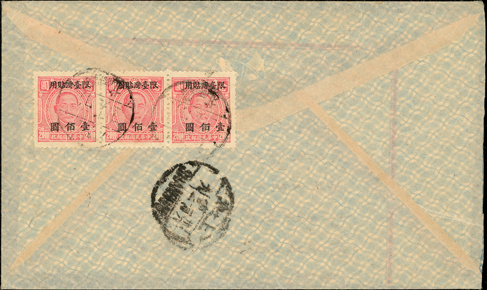 信封分類 大清郵政 1911年以前清代~國家郵政史(1082-1112)清代~商埠郵政史(1156-1158)在華客郵郵史(1168-1188)中華民國郵政 1912~1949年民國~郵政史(1424-1537)民國~名人封(1538-1547)民國~防盜(1548-1559)民國~首航封(1560-1570)民國~欠資封(1571-1574)民國~檢查封(1575-1599)民國~行動郵局/信櫃(1600-1613)兩岸通郵史(1933年-1989年)(1614-1632)民國~郵政匯兌(1633-1644)民國~民信局/僑批(1645-1651)民國~郵政明信片(1652-1659)民國~風景明信片(1660-1683)民國~國內及國際航空郵簡(1684-1703)日偽政權~郵政史(1714-1723)台灣 1888~2020年台灣~整批/整冊信封(3554-3583)日治時期~台灣郵史1895~1945(3601-3661)日治時期~台灣明信片(3662-3688)日治時期~台灣風景片(3689-3695)台灣老台幣時期~國父像火炬圖『限臺灣省用』明信片(3738-3739)台灣~老台幣時期郵政史1945~1949(3740-3815)台灣~自動化實寄封(4646-4647)台灣~新台幣時期郵政史(6001-6041)大陳島(6042)台灣~代辦所/欠資/首航(6043-6055)台灣~郵政匯兌(6056-6073)台灣~首日封(6074-6090)台灣~郵資封/郵政明信片(6091-6100)台灣~原圖卡(6101-6113)台灣~國內及國際航空郵簡(6114-6122)中國人民郵政 1949~2018年新中國~解放區郵史(6128-6140)新中國~郵政史(6277-6289)新中國~郵政匯兌/郵資封片(6290-6304)中國香港~郵政史(6314-6316)世界各國郵票日本郵政史(6327-6334)外國信封(A~Z)(6350-6365) 大清郵政 1911年以前 ↳清代~國家郵政史(1082-1112) ↳清代~商埠郵政史(1156-1158) ↳在華客郵郵史(1168-1188)中華民國郵政 1912~1949年 ↳民國~郵政史(1424-1537) ↳民國~名人封(1538-1547) ↳民國~防盜(1548-1559) ↳民國~首航封(1560-1570) ↳民國~欠資封(1571-1574) ↳民國~檢查封(1575-1599) ↳民國~行動郵局/信櫃(1600-1613) ↳兩岸通郵史(1933年-1989年)(1614-1632) ↳民國~郵政匯兌(1633-1644) ↳民國~民信局/僑批(1645-1651) ↳民國~郵政明信片(1652-1659) ↳民國~風景明信片(1660-1683) ↳民國~國內及國際航空郵簡(1684-1703) ↳日偽政權~郵政史(1714-1723)台灣 1888~2020年 ↳台灣~整批/整冊信封(3554-3583) ↳日治時期~台灣郵史1895~1945(3601-3661) ↳日治時期~台灣明信片(3662-3688) ↳日治時期~台灣風景片(3689-3695) ↳台灣老台幣時期~國父像火炬圖『限臺灣省用』明信片(3738-3739) ↳台灣~老台幣時期郵政史1945~1949(3740-3815) ↳台灣~自動化實寄封(4646-4647) ↳台灣~新台幣時期郵政史(6001-6041) ↳大陳島(6042) ↳台灣~代辦所/欠資/首航(6043-6055) ↳台灣~郵政匯兌(6056-6073) ↳台灣~首日封(6074-6090) ↳台灣~郵資封/郵政明信片(6091-6100) ↳台灣~原圖卡(6101-6113) ↳台灣~國內及國際航空郵簡(6114-6122)中國人民郵政 1949~2018年 ↳新中國~解放區郵史(6128-6140) ↳新中國~郵政史(6277-6289) ↳新中國~郵政匯兌/郵資封片(6290-6304) ↳中國香港~郵政史(6314-6316)世界各國郵票 ↳日本郵政史(6327-6334) ↳外國信封(A~Z)(6350-6365) 點大圖放大展示,點小圖切換 1949年台北寄上海封,背貼常台9.100元3枚,銷台北卅八年二月十九,上海卅八年二月卄一到戳(Page 47) 結標時間 2025-12-16 13:29:20 拍品編號:1629 起拍價:NT$1000 當前價:NT$1000 自動出價 直接出價 出價 系統將按出價級數,依序為您比(出)價至上限金額 提醒您:直接出價後不可將金額改低,只能改高,蟠龍無法降低您的出價,最高出價者無法取消出價 (查看出價說明) 得標說明:需按得標價另加10%佣金 當前加價幅度:NT$0元 (查看加價級數表) 回上頁 線上出價記錄 線上 0 人次,書面 0 人次 競價客戶 所在地 出價時間 出價金額 出價方式 問與答 目前尚無提問 我要提問 請先登入會員