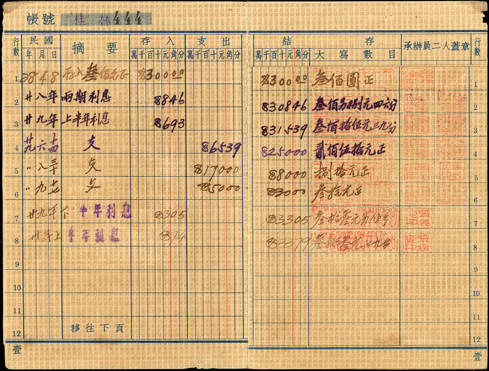 信封分類 大清郵政 1911年以前清代~國家郵政史(1082-1112)清代~商埠郵政史(1156-1158)在華客郵郵史(1168-1188)中華民國郵政 1912~1949年民國~郵政史(1424-1537)民國~名人封(1538-1547)民國~防盜(1548-1559)民國~首航封(1560-1570)民國~欠資封(1571-1574)民國~檢查封(1575-1599)民國~行動郵局/信櫃(1600-1613)兩岸通郵史(1933年-1989年)(1614-1632)民國~郵政匯兌(1633-1644)民國~民信局/僑批(1645-1651)民國~郵政明信片(1652-1659)民國~風景明信片(1660-1683)民國~國內及國際航空郵簡(1684-1703)日偽政權~郵政史(1714-1723)台灣 1888~2020年台灣~整批/整冊信封(3554-3583)日治時期~台灣郵史1895~1945(3601-3661)日治時期~台灣明信片(3662-3688)日治時期~台灣風景片(3689-3695)台灣老台幣時期~國父像火炬圖『限臺灣省用』明信片(3738-3739)台灣~老台幣時期郵政史1945~1949(3740-3815)台灣~自動化實寄封(4646-4647)台灣~新台幣時期郵政史(6001-6041)大陳島(6042)台灣~代辦所/欠資/首航(6043-6055)台灣~郵政匯兌(6056-6073)台灣~首日封(6074-6090)台灣~郵資封/郵政明信片(6091-6100)台灣~原圖卡(6101-6113)台灣~國內及國際航空郵簡(6114-6122)中國人民郵政 1949~2018年新中國~解放區郵史(6128-6140)新中國~郵政史(6277-6289)新中國~郵政匯兌/郵資封片(6290-6304)中國香港~郵政史(6314-6316)世界各國郵票日本郵政史(6327-6334)外國信封(A~Z)(6350-6365) 大清郵政 1911年以前 ↳清代~國家郵政史(1082-1112) ↳清代~商埠郵政史(1156-1158) ↳在華客郵郵史(1168-1188)中華民國郵政 1912~1949年 ↳民國~郵政史(1424-1537) ↳民國~名人封(1538-1547) ↳民國~防盜(1548-1559) ↳民國~首航封(1560-1570) ↳民國~欠資封(1571-1574) ↳民國~檢查封(1575-1599) ↳民國~行動郵局/信櫃(1600-1613) ↳兩岸通郵史(1933年-1989年)(1614-1632) ↳民國~郵政匯兌(1633-1644) ↳民國~民信局/僑批(1645-1651) ↳民國~郵政明信片(1652-1659) ↳民國~風景明信片(1660-1683) ↳民國~國內及國際航空郵簡(1684-1703) ↳日偽政權~郵政史(1714-1723)台灣 1888~2020年 ↳台灣~整批/整冊信封(3554-3583) ↳日治時期~台灣郵史1895~1945(3601-3661) ↳日治時期~台灣明信片(3662-3688) ↳日治時期~台灣風景片(3689-3695) ↳台灣老台幣時期~國父像火炬圖『限臺灣省用』明信片(3738-3739) ↳台灣~老台幣時期郵政史1945~1949(3740-3815) ↳台灣~自動化實寄封(4646-4647) ↳台灣~新台幣時期郵政史(6001-6041) ↳大陳島(6042) ↳台灣~代辦所/欠資/首航(6043-6055) ↳台灣~郵政匯兌(6056-6073) ↳台灣~首日封(6074-6090) ↳台灣~郵資封/郵政明信片(6091-6100) ↳台灣~原圖卡(6101-6113) ↳台灣~國內及國際航空郵簡(6114-6122)中國人民郵政 1949~2018年 ↳新中國~解放區郵史(6128-6140) ↳新中國~郵政史(6277-6289) ↳新中國~郵政匯兌/郵資封片(6290-6304) ↳中國香港~郵政史(6314-6316)世界各國郵票 ↳日本郵政史(6327-6334) ↳外國信封(A~Z)(6350-6365) 點大圖放大展示,點小圖切換 民國28年郵政儲金匯業局儲金簿一本,封面另蓋『國幣帳』及『桂林』章,內銷郵政儲金桂林卄八年四月八日,封皮下方局部裁切,內頁完整(Page 48) 結標時間 2025-12-16 13:30:40 拍品編號:1633 起拍價:NT$100 當前價:NT$100 自動出價 直接出價 出價 系統將按出價級數,依序為您比(出)價至上限金額 提醒您:直接出價後不可將金額改低,只能改高,蟠龍無法降低您的出價,最高出價者無法取消出價 (查看出價說明) 得標說明:需按得標價另加10%佣金 當前加價幅度:NT$0元 (查看加價級數表) 回上頁 線上出價記錄 線上 0 人次,書面 0 人次 競價客戶 所在地 出價時間 出價金額 出價方式 問與答 目前尚無提問 我要提問 請先登入會員