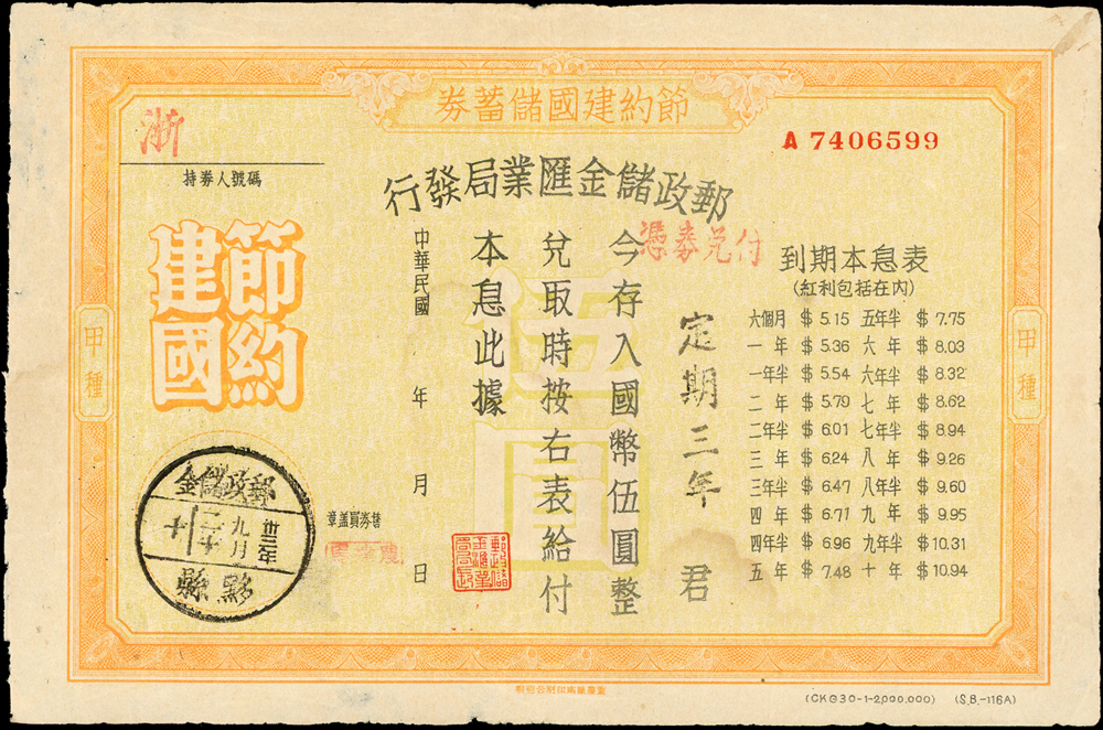 信封分類 大清郵政 1911年以前清代~國家郵政史(1082-1112)清代~商埠郵政史(1156-1158)在華客郵郵史(1168-1188)中華民國郵政 1912~1949年民國~郵政史(1424-1537)民國~名人封(1538-1547)民國~防盜(1548-1559)民國~首航封(1560-1570)民國~欠資封(1571-1574)民國~檢查封(1575-1599)民國~行動郵局/信櫃(1600-1613)兩岸通郵史(1933年-1989年)(1614-1632)民國~郵政匯兌(1633-1644)民國~民信局/僑批(1645-1651)民國~郵政明信片(1652-1659)民國~風景明信片(1660-1683)民國~國內及國際航空郵簡(1684-1703)日偽政權~郵政史(1714-1723)台灣 1888~2020年台灣~整批/整冊信封(3554-3583)日治時期~台灣郵史1895~1945(3601-3661)日治時期~台灣明信片(3662-3688)日治時期~台灣風景片(3689-3695)台灣老台幣時期~國父像火炬圖『限臺灣省用』明信片(3738-3739)台灣~老台幣時期郵政史1945~1949(3740-3815)台灣~自動化實寄封(4646-4647)台灣~新台幣時期郵政史(6001-6041)大陳島(6042)台灣~代辦所/欠資/首航(6043-6055)台灣~郵政匯兌(6056-6073)台灣~首日封(6074-6090)台灣~郵資封/郵政明信片(6091-6100)台灣~原圖卡(6101-6113)台灣~國內及國際航空郵簡(6114-6122)中國人民郵政 1949~2018年新中國~解放區郵史(6128-6140)新中國~郵政史(6277-6289)新中國~郵政匯兌/郵資封片(6290-6304)中國香港~郵政史(6314-6316)世界各國郵票日本郵政史(6327-6334)外國信封(A~Z)(6350-6365) 大清郵政 1911年以前 ↳清代~國家郵政史(1082-1112) ↳清代~商埠郵政史(1156-1158) ↳在華客郵郵史(1168-1188)中華民國郵政 1912~1949年 ↳民國~郵政史(1424-1537) ↳民國~名人封(1538-1547) ↳民國~防盜(1548-1559) ↳民國~首航封(1560-1570) ↳民國~欠資封(1571-1574) ↳民國~檢查封(1575-1599) ↳民國~行動郵局/信櫃(1600-1613) ↳兩岸通郵史(1933年-1989年)(1614-1632) ↳民國~郵政匯兌(1633-1644) ↳民國~民信局/僑批(1645-1651) ↳民國~郵政明信片(1652-1659) ↳民國~風景明信片(1660-1683) ↳民國~國內及國際航空郵簡(1684-1703) ↳日偽政權~郵政史(1714-1723)台灣 1888~2020年 ↳台灣~整批/整冊信封(3554-3583) ↳日治時期~台灣郵史1895~1945(3601-3661) ↳日治時期~台灣明信片(3662-3688) ↳日治時期~台灣風景片(3689-3695) ↳台灣老台幣時期~國父像火炬圖『限臺灣省用』明信片(3738-3739) ↳台灣~老台幣時期郵政史1945~1949(3740-3815) ↳台灣~自動化實寄封(4646-4647) ↳台灣~新台幣時期郵政史(6001-6041) ↳大陳島(6042) ↳台灣~代辦所/欠資/首航(6043-6055) ↳台灣~郵政匯兌(6056-6073) ↳台灣~首日封(6074-6090) ↳台灣~郵資封/郵政明信片(6091-6100) ↳台灣~原圖卡(6101-6113) ↳台灣~國內及國際航空郵簡(6114-6122)中國人民郵政 1949~2018年 ↳新中國~解放區郵史(6128-6140) ↳新中國~郵政史(6277-6289) ↳新中國~郵政匯兌/郵資封片(6290-6304) ↳中國香港~郵政史(6314-6316)世界各國郵票 ↳日本郵政史(6327-6334) ↳外國信封(A~Z)(6350-6365) 點大圖放大展示,點小圖切換 1942-1944年郵政儲金匯業局發行節約建國儲蓄券國幣5元2枚,分別銷郵政儲金/黔縣/卅三年九月二十及軍郵/201/三十一年十二月卄五(Page 48) 結標時間 2025-12-16 13:31:40 拍品編號:1636 起拍價:NT$100 當前價:NT$100 自動出價 直接出價 出價 系統將按出價級數,依序為您比(出)價至上限金額 提醒您:直接出價後不可將金額改低,只能改高,蟠龍無法降低您的出價,最高出價者無法取消出價 (查看出價說明) 得標說明:需按得標價另加10%佣金 當前加價幅度:NT$0元 (查看加價級數表) 回上頁 線上出價記錄 線上 0 人次,書面 0 人次 競價客戶 所在地 出價時間 出價金額 出價方式 問與答 目前尚無提問 我要提問 請先登入會員