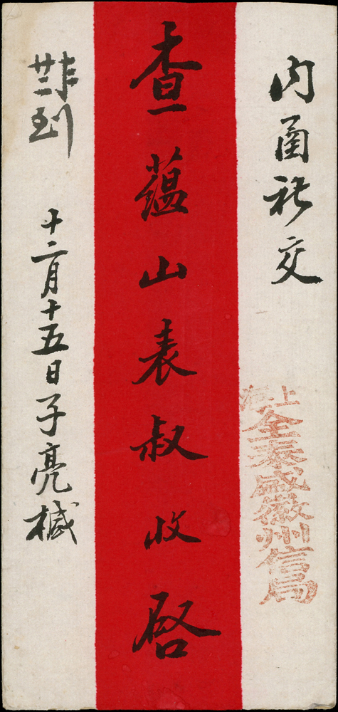 信封分類 大清郵政 1911年以前清代~國家郵政史(1082-1112)清代~商埠郵政史(1156-1158)在華客郵郵史(1168-1188)中華民國郵政 1912~1949年民國~郵政史(1424-1537)民國~名人封(1538-1547)民國~防盜(1548-1559)民國~首航封(1560-1570)民國~欠資封(1571-1574)民國~檢查封(1575-1599)民國~行動郵局/信櫃(1600-1613)兩岸通郵史(1933年-1989年)(1614-1632)民國~郵政匯兌(1633-1644)民國~民信局/僑批(1645-1651)民國~郵政明信片(1652-1659)民國~風景明信片(1660-1683)民國~國內及國際航空郵簡(1684-1703)日偽政權~郵政史(1714-1723)台灣 1888~2020年台灣~整批/整冊信封(3554-3583)日治時期~台灣郵史1895~1945(3601-3661)日治時期~台灣明信片(3662-3688)日治時期~台灣風景片(3689-3695)台灣老台幣時期~國父像火炬圖『限臺灣省用』明信片(3738-3739)台灣~老台幣時期郵政史1945~1949(3740-3815)台灣~自動化實寄封(4646-4647)台灣~新台幣時期郵政史(6001-6041)大陳島(6042)台灣~代辦所/欠資/首航(6043-6055)台灣~郵政匯兌(6056-6073)台灣~首日封(6074-6090)台灣~郵資封/郵政明信片(6091-6100)台灣~原圖卡(6101-6113)台灣~國內及國際航空郵簡(6114-6122)中國人民郵政 1949~2018年新中國~解放區郵史(6128-6140)新中國~郵政史(6277-6289)新中國~郵政匯兌/郵資封片(6290-6304)中國香港~郵政史(6314-6316)世界各國郵票日本郵政史(6327-6334)外國信封(A~Z)(6350-6365) 大清郵政 1911年以前 ↳清代~國家郵政史(1082-1112) ↳清代~商埠郵政史(1156-1158) ↳在華客郵郵史(1168-1188)中華民國郵政 1912~1949年 ↳民國~郵政史(1424-1537) ↳民國~名人封(1538-1547) ↳民國~防盜(1548-1559) ↳民國~首航封(1560-1570) ↳民國~欠資封(1571-1574) ↳民國~檢查封(1575-1599) ↳民國~行動郵局/信櫃(1600-1613) ↳兩岸通郵史(1933年-1989年)(1614-1632) ↳民國~郵政匯兌(1633-1644) ↳民國~民信局/僑批(1645-1651) ↳民國~郵政明信片(1652-1659) ↳民國~風景明信片(1660-1683) ↳民國~國內及國際航空郵簡(1684-1703) ↳日偽政權~郵政史(1714-1723)台灣 1888~2020年 ↳台灣~整批/整冊信封(3554-3583) ↳日治時期~台灣郵史1895~1945(3601-3661) ↳日治時期~台灣明信片(3662-3688) ↳日治時期~台灣風景片(3689-3695) ↳台灣老台幣時期~國父像火炬圖『限臺灣省用』明信片(3738-3739) ↳台灣~老台幣時期郵政史1945~1949(3740-3815) ↳台灣~自動化實寄封(4646-4647) ↳台灣~新台幣時期郵政史(6001-6041) ↳大陳島(6042) ↳台灣~代辦所/欠資/首航(6043-6055) ↳台灣~郵政匯兌(6056-6073) ↳台灣~首日封(6074-6090) ↳台灣~郵資封/郵政明信片(6091-6100) ↳台灣~原圖卡(6101-6113) ↳台灣~國內及國際航空郵簡(6114-6122)中國人民郵政 1949~2018年 ↳新中國~解放區郵史(6128-6140) ↳新中國~郵政史(6277-6289) ↳新中國~郵政匯兌/郵資封片(6290-6304) ↳中國香港~郵政史(6314-6316)世界各國郵票 ↳日本郵政史(6327-6334) ↳外國信封(A~Z)(6350-6365) 點大圖放大展示,點小圖切換 民信局紅條封,蓋『上海/全泰盛徽州信局』章(Page 48) 結標時間 2025-12-16 13:34:40 拍品編號:1645 起拍價:NT$100 當前價:NT$100 自動出價 直接出價 出價 系統將按出價級數,依序為您比(出)價至上限金額 提醒您:直接出價後不可將金額改低,只能改高,蟠龍無法降低您的出價,最高出價者無法取消出價 (查看出價說明) 得標說明:需按得標價另加10%佣金 當前加價幅度:NT$100元 (查看加價級數表) 回上頁 線上出價記錄 線上 1 人次,書面 0 人次 競價客戶 所在地 出價時間 出價金額 出價方式 l****9 (領先) 台灣 2025-11-25 11:02:01 NT$100 自動出價 問與答 目前尚無提問 我要提問 請先登入會員