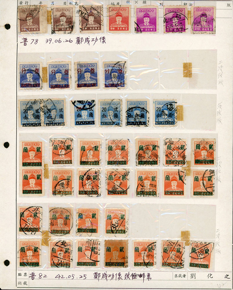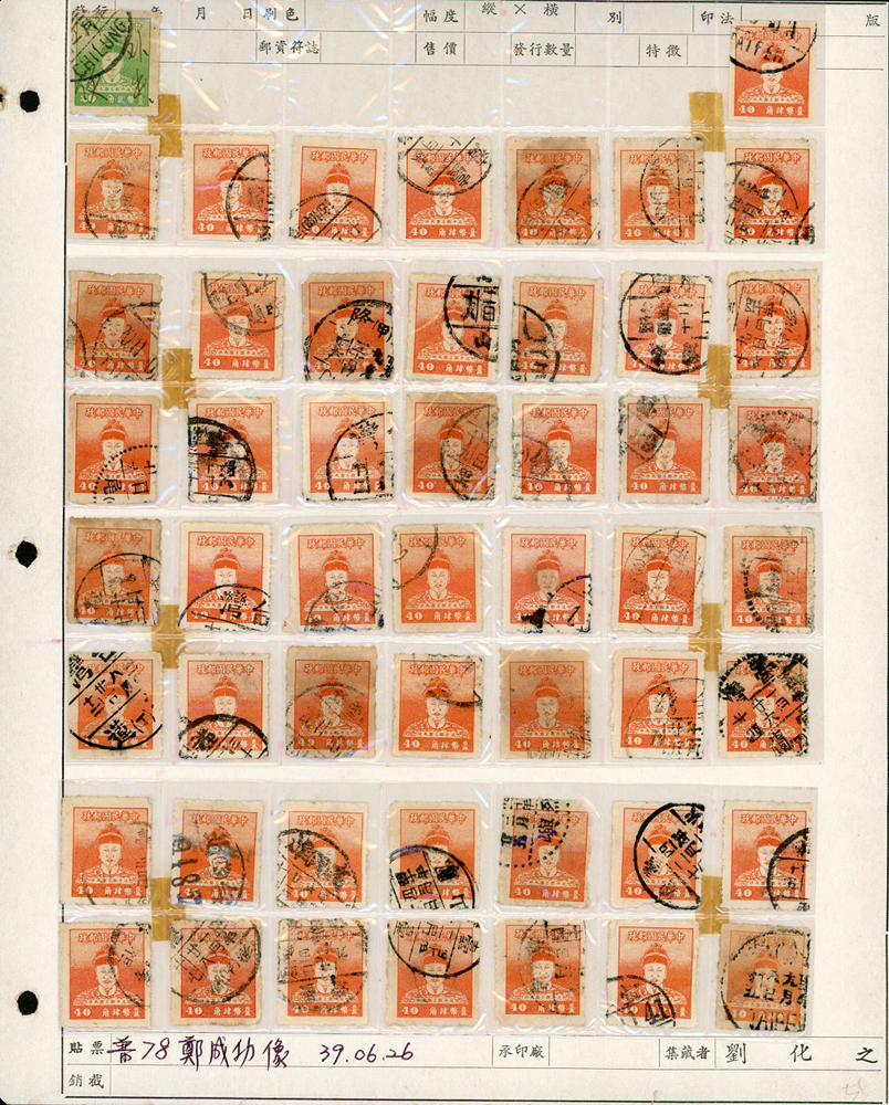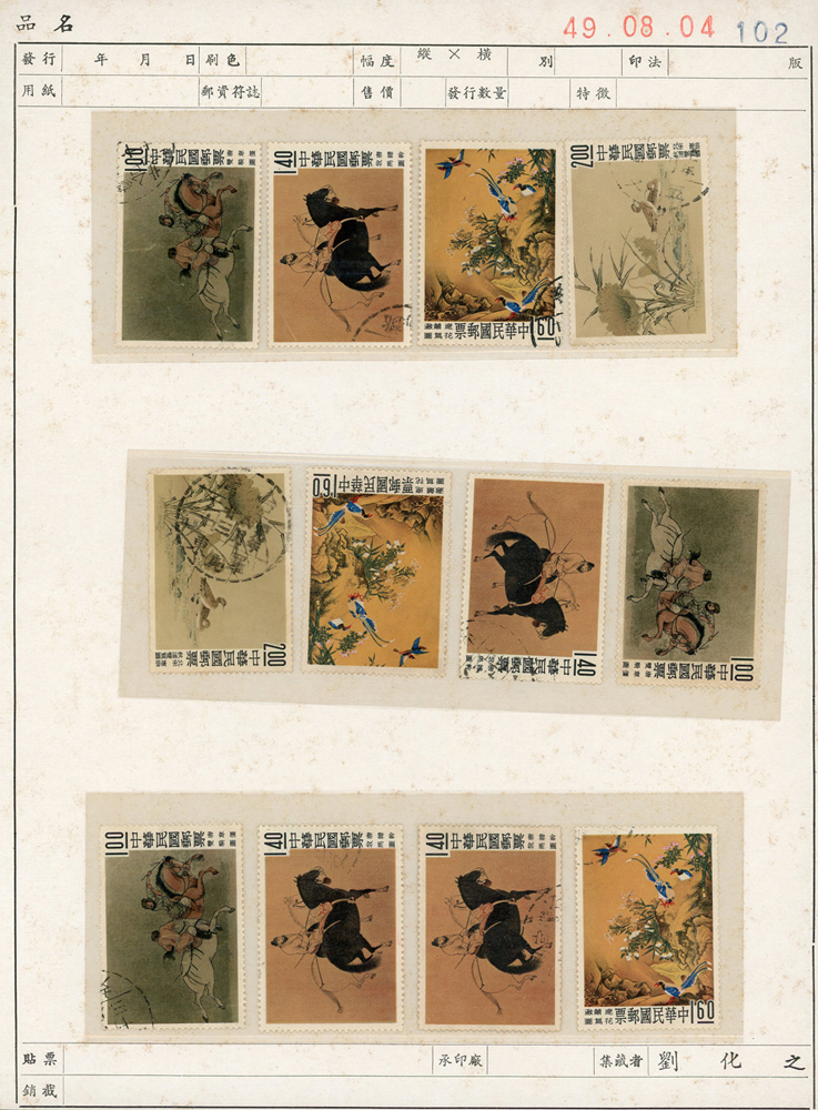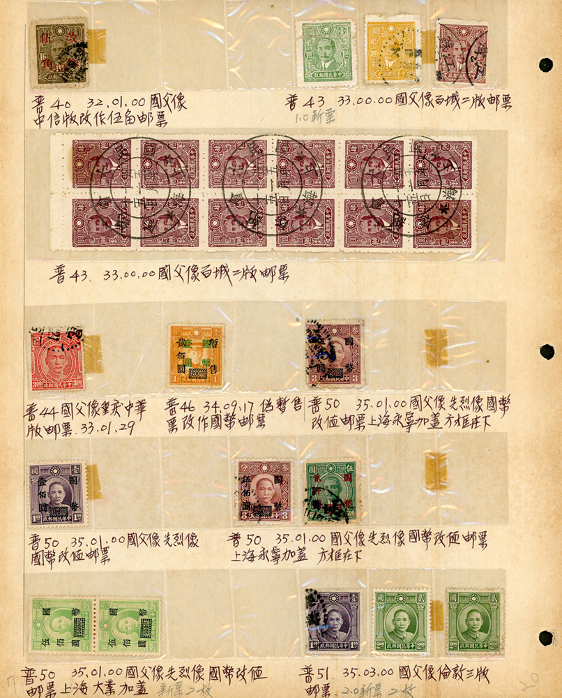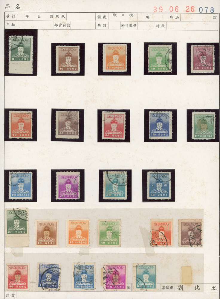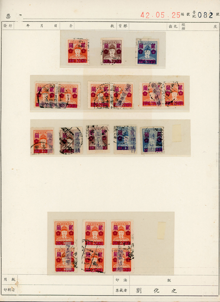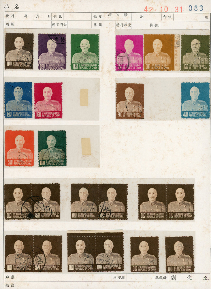 民國時期零散舊票及台灣中早期新舊混合票一冊,含新票156枚,舊票1187枚,整理於冊中,台灣少數舊票成套,包括有:造林保林4全.母教2全.平.凸版地圖12全.臺灣花卉(47年版)4全.玉照閱兵1全.保衛金馬4全.世界通信週4全.國立臺灣科學館2全.民主導師2全.限時專送1全.錄音郵件1全.故宮古畫(一)4全.體育(49年版)6全.郵購服務1全,品像混合,F-VF;歡迎至官網瀏覽全貌;林茂興舊藏(Page 53)