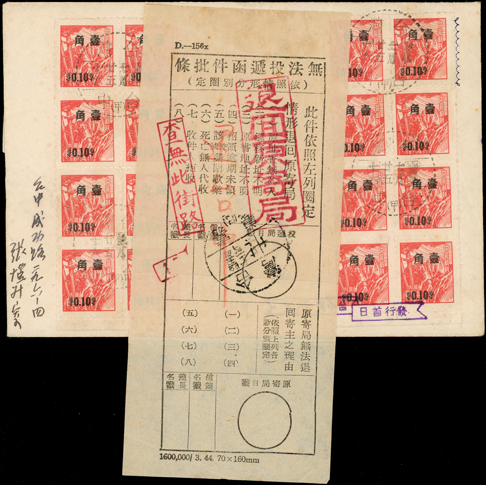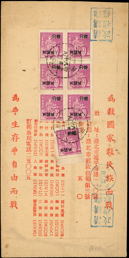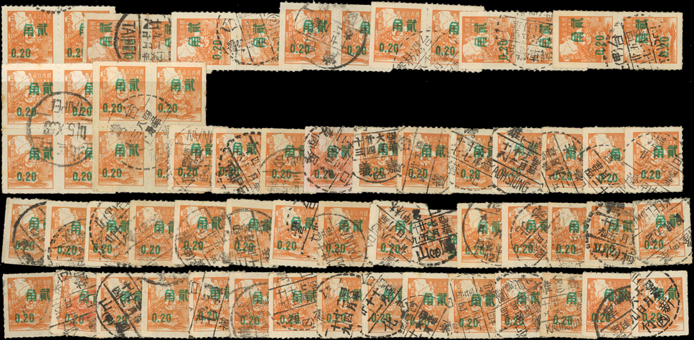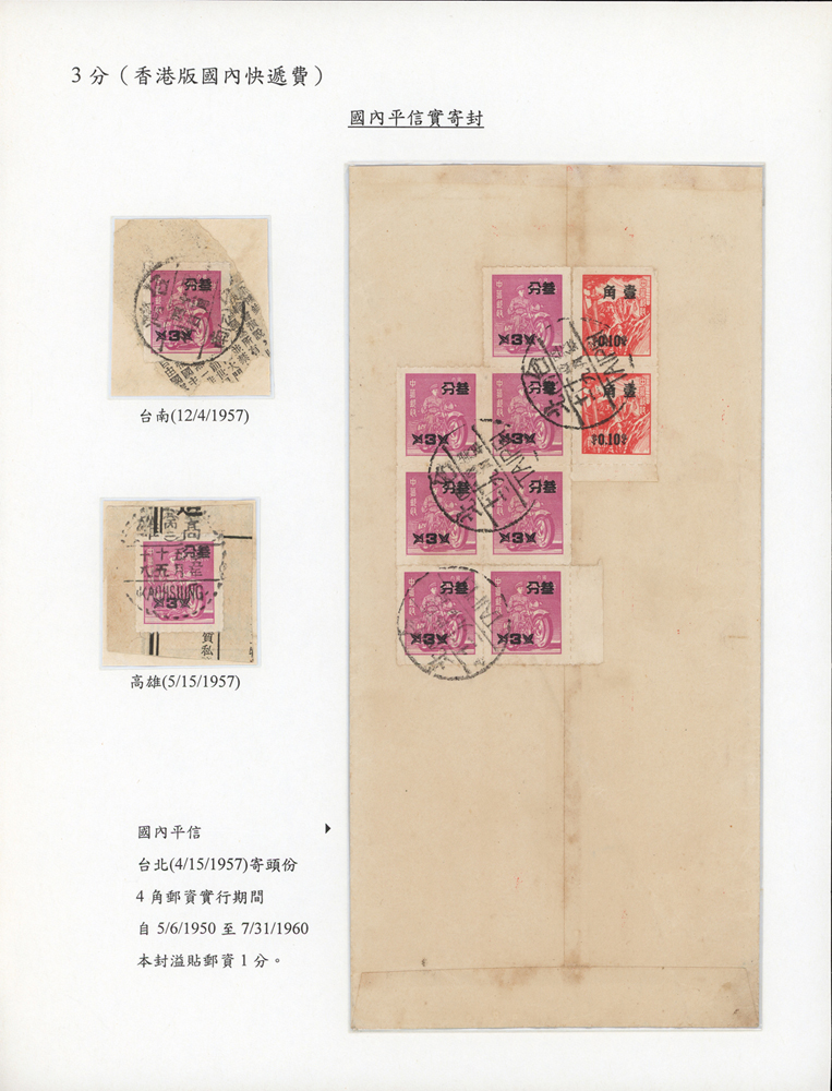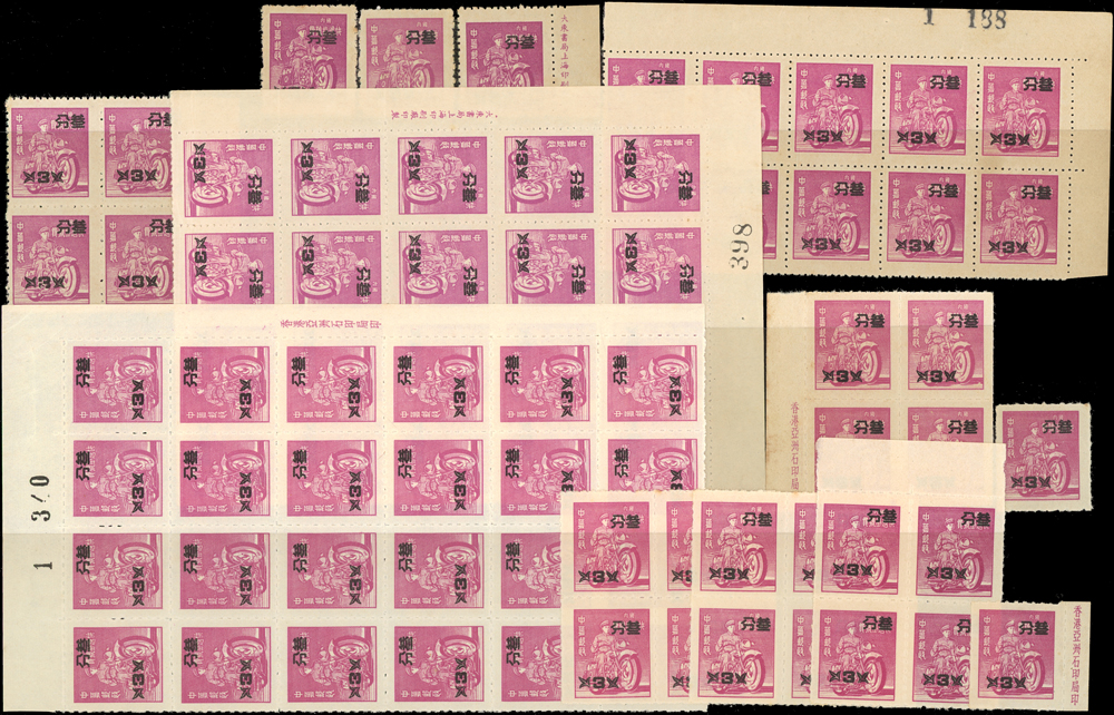 常82.單位資費改印面值郵票小輯,整理整齊於公文夾中,包括有:實寄封17封,新票379枚(含大方連,可配成16套),舊票400枚(可配成29套),另變體新舊票計119枚,含:加蓋移位.加蓋背黏印.隔物印破版.背加蓋透印.齒孔左移等,品項混合,稍加整理可以組成一框郵集,VF-F;歡迎至官網瀏覽全貌;林茂興舊藏(Page 53)