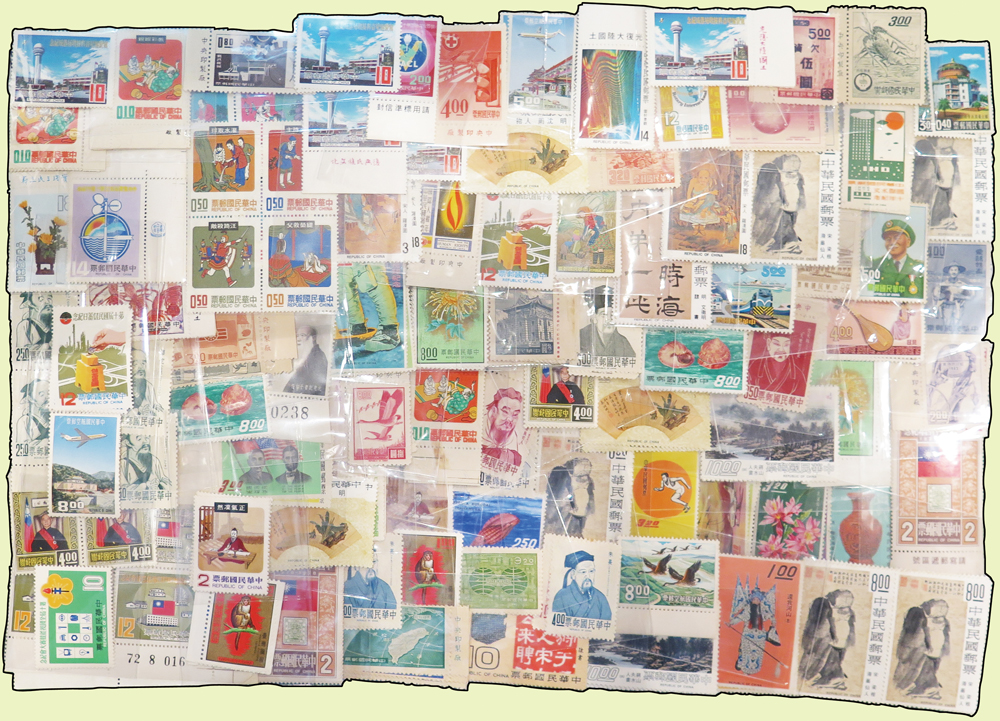 台灣中早期新票91套,重點內容包括:體育(49年版).花卉(53年版).雷虎特技.故宮古物(59年版).宋人羅漢圖.人物圖.中國書法藝術.登入月球.中國戲劇.一.三版金門莒光樓.中國詩人.玄奘、朱熹.第四任總統就職週年.文字源流.航空(58年版).孔子、孟子.蔣夫人畫作(二).音樂(58年版).一版中山樓.雁行圖.台灣獸類.扇面古畫.蔣總統玉照(55年版).岳飛、文天祥.交通建設(56年版)等等,品像混合,部分背面淡黃或齒緣淡黃,VF-F,歡迎至官網瀏覽全貌