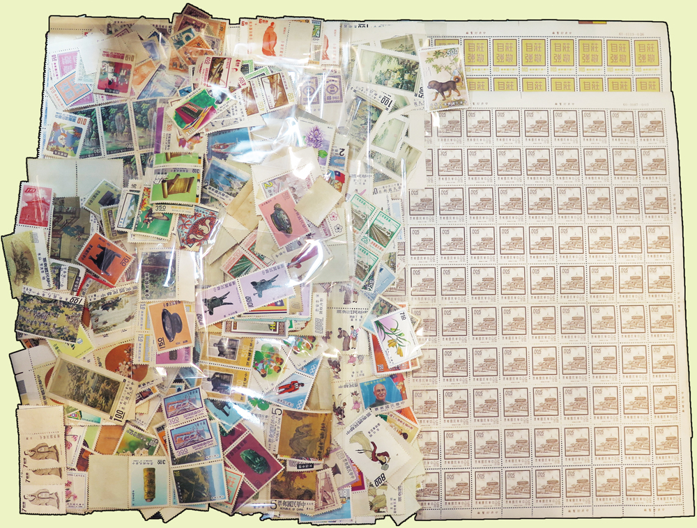 台灣中早期不成套新票920枚,含:老台幣.專題.紀念.欠資.常用票,除老台幣外,其餘總面值共計NT$2285元,包括有:十二月令圖.十駿犬.前十八寶.臺灣風景(50年版).駿馬圖.春市圖.二版中山樓5分1版.莊敬自強5分1版等,品像混合或有重複,F-VF