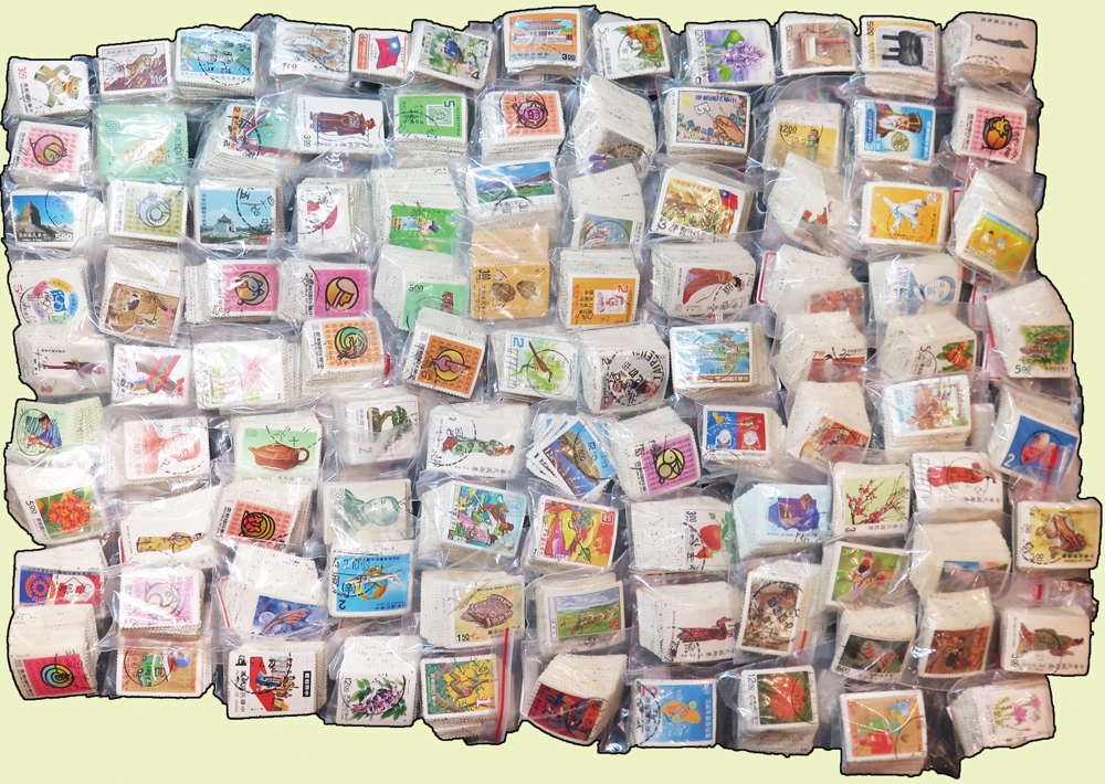 台灣中近期(已洗)舊票約1萬枚,包括:古代雕象牙3元.中華傳統服飾(75年版)2元.電信百週年2元.利瑪竇來華四百週年2元.古代錢幣(67年版)8元.建國70年3元.七七抗戰五十週年2元.臺灣蝴蝶(67年版)4元.郵政博物館新廈落成紀念5元.一九八四洛杉磯奧運會5元.臺灣水果(74年版)2元.一輪羊1元.國際孔學會議3元.婚禮12元.水中花5元.梅花3元.金馬風光2元.防菸害.長江風光5元.中華傳統服飾(77年版)3元等等,品種豐富,均以小塑袋分裝,每種百枚為一袋,共100袋,品像混和,VF-F;枚數未清點或有些微誤差,歡迎至官網瀏覽全貌