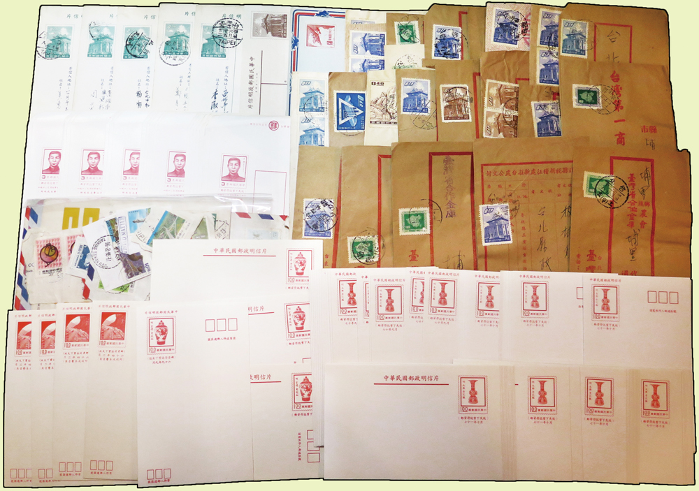 封.片一組共137件,含:(1)1949年本地自然實寄封26封,票戳俱全;(2)民國73年版吳樾3元國內平信郵資封23封,未使用;(3)民國64-71年1元郵資片72片,未使用;(4)二版莒光樓實寄片4片,平安片新片1件,47年4月版港澳航空郵簡新簡1件;(5)近期實寄封3件及斷片7件