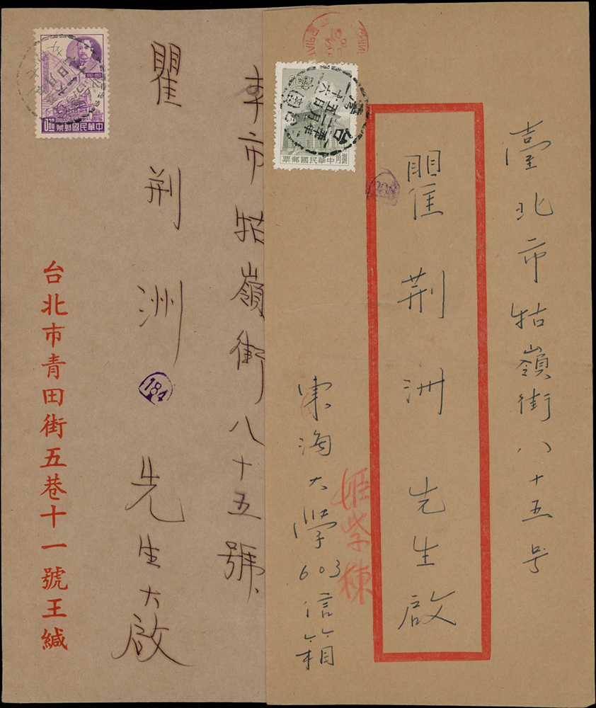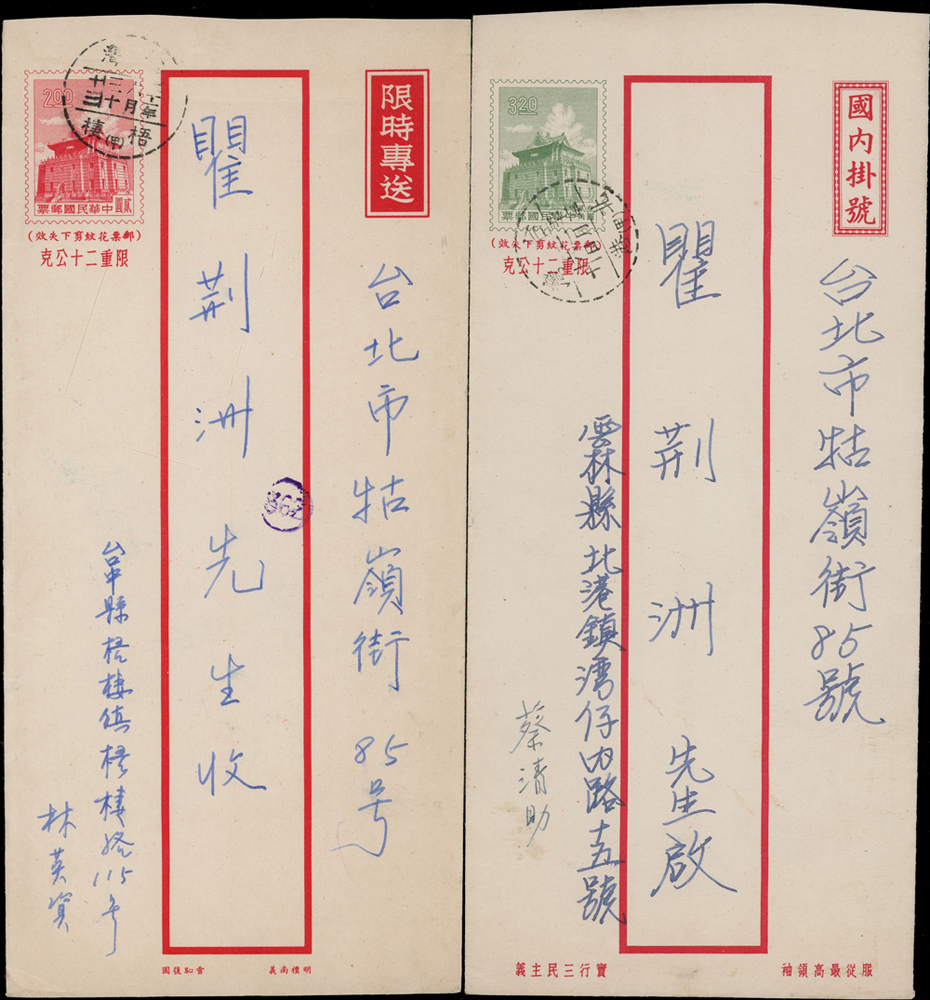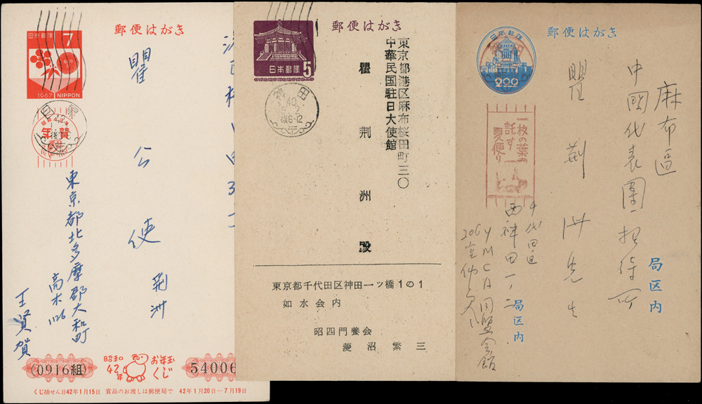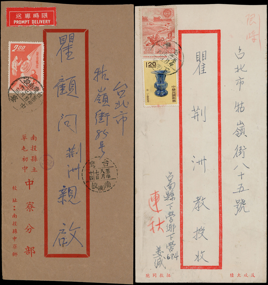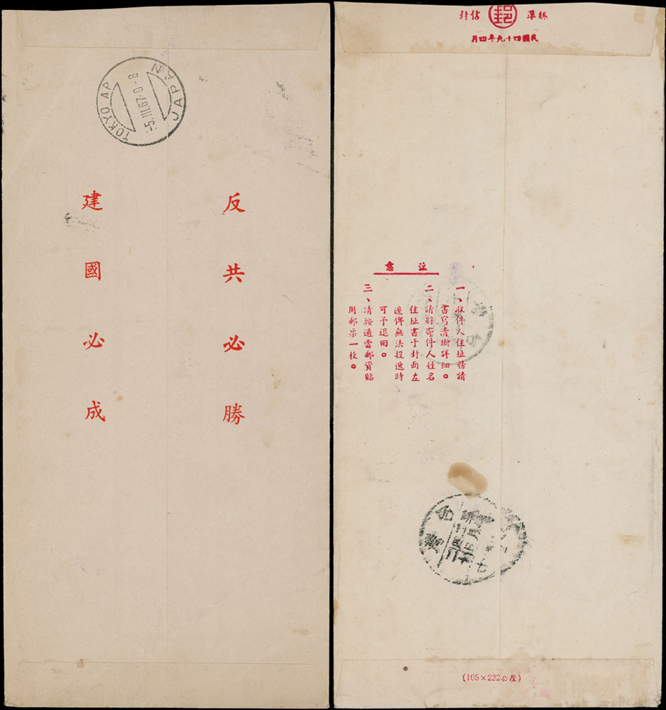 1950~1981年實寄名人封.片40件(封.片各20件),收件人均為:瞿荊洲(曾任臺灣銀行第二任總經理,駐日大使),含:台灣寄日本大使館.台灣國內互寄.日本國內互寄,歡迎至官網瀏覽全貌