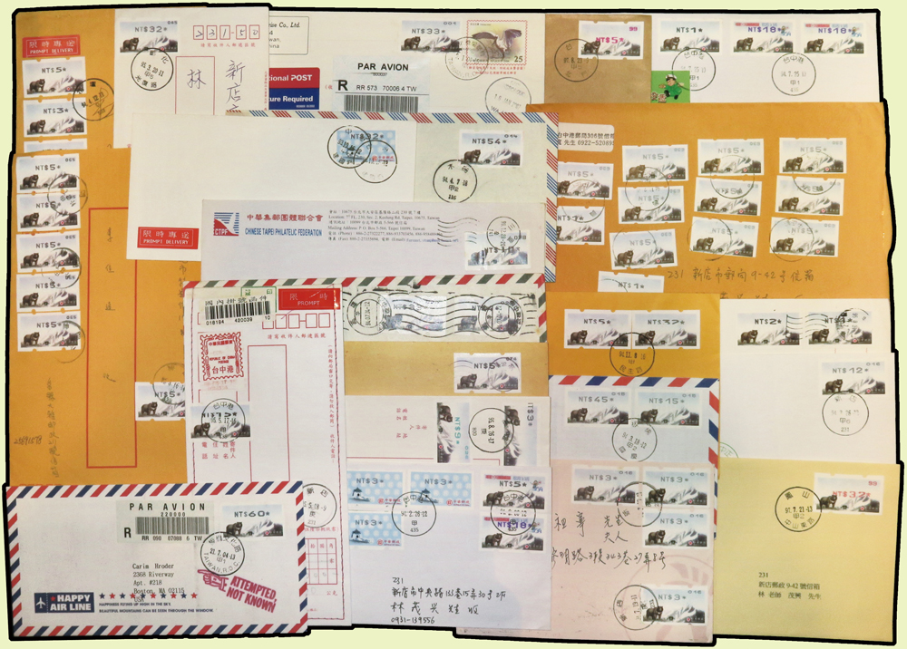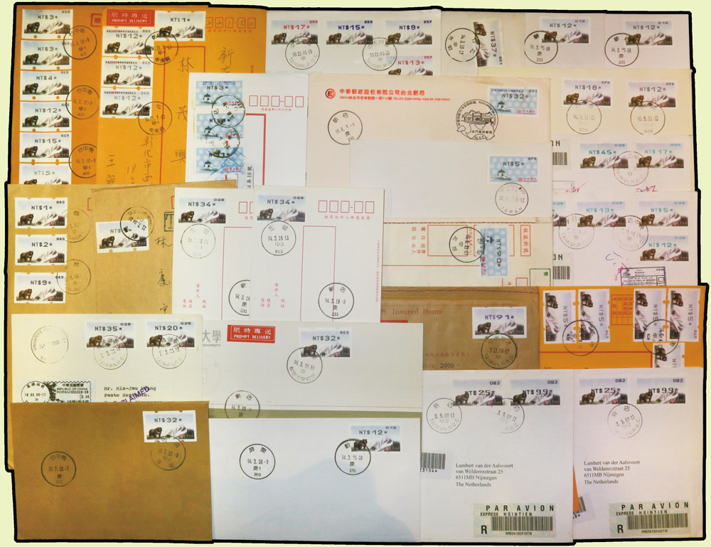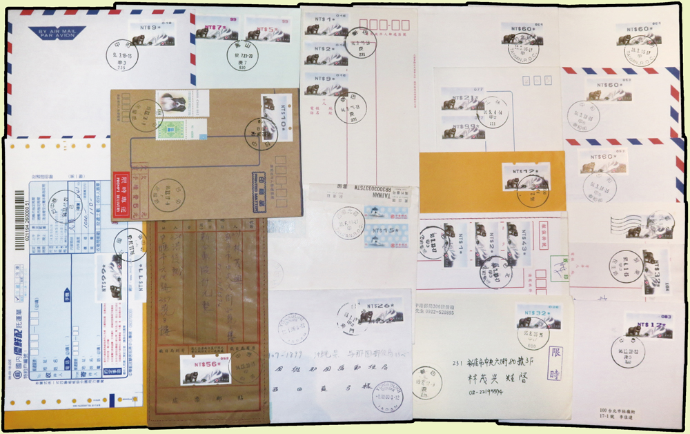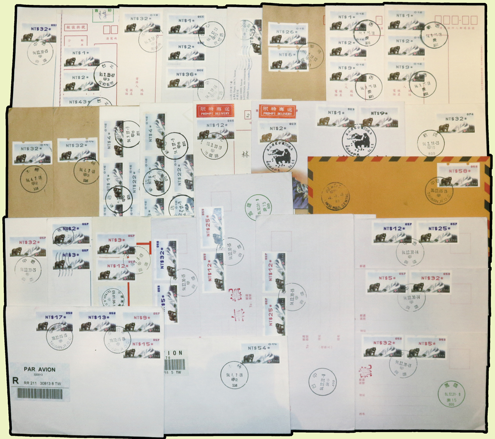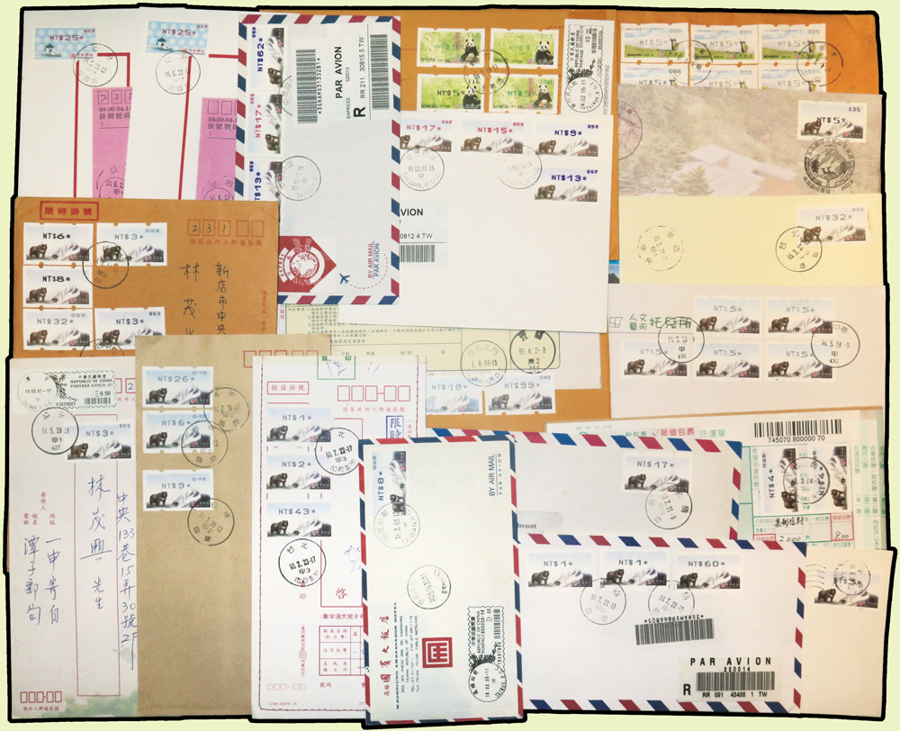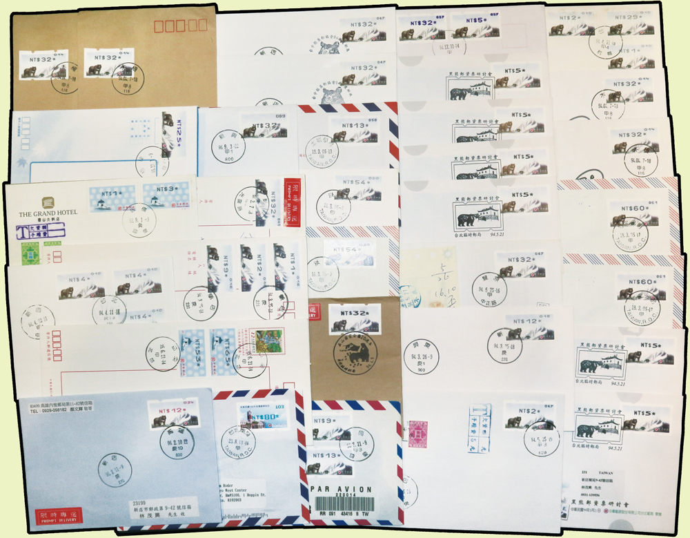 2003~2018年貼各版郵資票台灣本地互寄封413封,明信片1片,郵簡16件,共計430件,含:國內掛號.國內包裹.國內快捷.限時專送.限時掛號.航空.航空掛號.水陸掛號.退回封.欠資封.改址封.保價報值封等,部分為集郵品,貼票精彩,分貼:台灣黑熊.中正紀念堂.2004全國郵展暨國際郵展.三雁圖.建國百年全國郵展.油桐花(續.續二).大熊貓.2013全國郵展,清惲壽平牡丹.2014全國郵展暨中泰聯合郵展.第21屆亞洲國際郵展.金雞.吉羊.駿馬.靈蛇.梅花鹿.2016世界郵展.2005第18屆亞洲國際郵展等等,總重約2.8公斤;歡迎至官網瀏覽全貌;林茂興舊藏(Page 55)