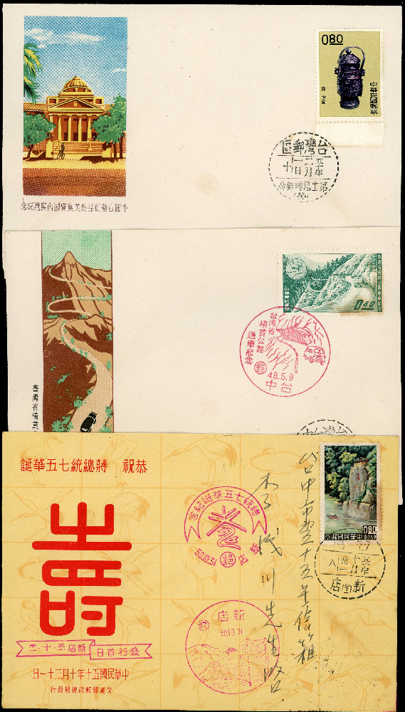 台灣早期低值首日局封713封,部分實寄,包括有:中國農村復興聯合委員會十週年.臺灣省橫貫公路開工週年.母教.臺灣風景(50年版).保衛金馬.第五屆世界森林會議.中華民國建國五十年國慶.前十八寶.臺灣省橫貫路通車.農業普查.國立臺灣科學館.世界難民年.青年暑期訓練.招商局八十五週年.世界童子軍五十週年.廣播事業三十週年.電信七十五週年.臺灣花卉(47年版).臺灣昆蟲(47年版).聯合國教育科學文化組織新廈落成.行憲十週年.世界通信週.世界衛生組織十週年.第十屆航海節等;品像混合多重複,部分微斑點,VF-F;歡迎至官網瀏覽全貌