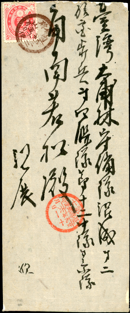 信封分類 大清郵政 1911年以前清代~國家郵政史(1082-1112)清代~商埠郵政史(1156-1158)在華客郵郵史(1168-1188)中華民國郵政 1912~1949年民國~郵政史(1424-1537)民國~名人封(1538-1547)民國~防盜(1548-1559)民國~首航封(1560-1570)民國~欠資封(1571-1574)民國~檢查封(1575-1599)民國~行動郵局/信櫃(1600-1613)兩岸通郵史(1933年-1989年)(1614-1632)民國~郵政匯兌(1633-1644)民國~民信局/僑批(1645-1651)民國~郵政明信片(1652-1659)民國~風景明信片(1660-1683)民國~國內及國際航空郵簡(1684-1703)日偽政權~郵政史(1714-1723)台灣 1888~2020年台灣~整批/整冊信封(3554-3583)日治時期~台灣郵史1895~1945(3601-3661)日治時期~台灣明信片(3662-3688)日治時期~台灣風景片(3689-3695)台灣老台幣時期~國父像火炬圖『限臺灣省用』明信片(3738-3739)台灣~老台幣時期郵政史1945~1949(3740-3815)台灣~自動化實寄封(4646-4647)台灣~新台幣時期郵政史(6001-6041)大陳島(6042)台灣~代辦所/欠資/首航(6043-6055)台灣~郵政匯兌(6056-6073)台灣~首日封(6074-6090)台灣~郵資封/郵政明信片(6091-6100)台灣~原圖卡(6101-6113)台灣~國內及國際航空郵簡(6114-6122)中國人民郵政 1949~2018年新中國~解放區郵史(6128-6140)新中國~郵政史(6277-6289)新中國~郵政匯兌/郵資封片(6290-6304)中國香港~郵政史(6314-6316)世界各國郵票日本郵政史(6327-6334)外國信封(A~Z)(6350-6365) 大清郵政 1911年以前 ↳清代~國家郵政史(1082-1112) ↳清代~商埠郵政史(1156-1158) ↳在華客郵郵史(1168-1188)中華民國郵政 1912~1949年 ↳民國~郵政史(1424-1537) ↳民國~名人封(1538-1547) ↳民國~防盜(1548-1559) ↳民國~首航封(1560-1570) ↳民國~欠資封(1571-1574) ↳民國~檢查封(1575-1599) ↳民國~行動郵局/信櫃(1600-1613) ↳兩岸通郵史(1933年-1989年)(1614-1632) ↳民國~郵政匯兌(1633-1644) ↳民國~民信局/僑批(1645-1651) ↳民國~郵政明信片(1652-1659) ↳民國~風景明信片(1660-1683) ↳民國~國內及國際航空郵簡(1684-1703) ↳日偽政權~郵政史(1714-1723)台灣 1888~2020年 ↳台灣~整批/整冊信封(3554-3583) ↳日治時期~台灣郵史1895~1945(3601-3661) ↳日治時期~台灣明信片(3662-3688) ↳日治時期~台灣風景片(3689-3695) ↳台灣老台幣時期~國父像火炬圖『限臺灣省用』明信片(3738-3739) ↳台灣~老台幣時期郵政史1945~1949(3740-3815) ↳台灣~自動化實寄封(4646-4647) ↳台灣~新台幣時期郵政史(6001-6041) ↳大陳島(6042) ↳台灣~代辦所/欠資/首航(6043-6055) ↳台灣~郵政匯兌(6056-6073) ↳台灣~首日封(6074-6090) ↳台灣~郵資封/郵政明信片(6091-6100) ↳台灣~原圖卡(6101-6113) ↳台灣~國內及國際航空郵簡(6114-6122)中國人民郵政 1949~2018年 ↳新中國~解放區郵史(6128-6140) ↳新中國~郵政史(6277-6289) ↳新中國~郵政匯兌/郵資封片(6290-6304) ↳中國香港~郵政史(6314-6316)世界各國郵票 ↳日本郵政史(6327-6334) ↳外國信封(A~Z)(6350-6365) 點大圖放大展示,點小圖切換 1 1896年岡山寄大甫林守備隊封,貼舊小判2錢1枚,銷備前岡山卄九年五月三十日丸一戳,第七臺灣郵便局卄九年六月十一日丸一戳(Page 57) 結標時間 2025-12-16 10:33:40 拍品編號:3602 起拍價:NT$3000 當前價:NT$3000 自動出價 直接出價 出價 系統將按出價級數,依序為您比(出)價至上限金額 提醒您:直接出價後不可將金額改低,只能改高,蟠龍無法降低您的出價,最高出價者無法取消出價 (查看出價說明) 得標說明:需按得標價另加10%佣金 當前加價幅度:NT$0元 (查看加價級數表) 回上頁 線上出價記錄 線上 0 人次,書面 0 人次 競價客戶 所在地 出價時間 出價金額 出價方式 問與答 目前尚無提問 我要提問 請先登入會員