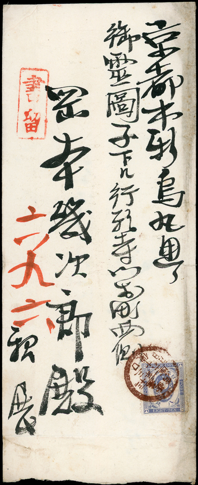 信封分類 大清郵政 1911年以前清代~國家郵政史(1082-1112)清代~商埠郵政史(1156-1158)在華客郵郵史(1168-1188)中華民國郵政 1912~1949年民國~郵政史(1424-1537)民國~名人封(1538-1547)民國~防盜(1548-1559)民國~首航封(1560-1570)民國~欠資封(1571-1574)民國~檢查封(1575-1599)民國~行動郵局/信櫃(1600-1613)兩岸通郵史(1933年-1989年)(1614-1632)民國~郵政匯兌(1633-1644)民國~民信局/僑批(1645-1651)民國~郵政明信片(1652-1659)民國~風景明信片(1660-1683)民國~國內及國際航空郵簡(1684-1703)日偽政權~郵政史(1714-1723)台灣 1888~2020年台灣~整批/整冊信封(3554-3583)日治時期~台灣郵史1895~1945(3601-3661)日治時期~台灣明信片(3662-3688)日治時期~台灣風景片(3689-3695)台灣老台幣時期~國父像火炬圖『限臺灣省用』明信片(3738-3739)台灣~老台幣時期郵政史1945~1949(3740-3815)台灣~自動化實寄封(4646-4647)台灣~新台幣時期郵政史(6001-6041)大陳島(6042)台灣~代辦所/欠資/首航(6043-6055)台灣~郵政匯兌(6056-6073)台灣~首日封(6074-6090)台灣~郵資封/郵政明信片(6091-6100)台灣~原圖卡(6101-6113)台灣~國內及國際航空郵簡(6114-6122)中國人民郵政 1949~2018年新中國~解放區郵史(6128-6140)新中國~郵政史(6277-6289)新中國~郵政匯兌/郵資封片(6290-6304)中國香港~郵政史(6314-6316)世界各國郵票日本郵政史(6327-6334)外國信封(A~Z)(6350-6365) 大清郵政 1911年以前 ↳清代~國家郵政史(1082-1112) ↳清代~商埠郵政史(1156-1158) ↳在華客郵郵史(1168-1188)中華民國郵政 1912~1949年 ↳民國~郵政史(1424-1537) ↳民國~名人封(1538-1547) ↳民國~防盜(1548-1559) ↳民國~首航封(1560-1570) ↳民國~欠資封(1571-1574) ↳民國~檢查封(1575-1599) ↳民國~行動郵局/信櫃(1600-1613) ↳兩岸通郵史(1933年-1989年)(1614-1632) ↳民國~郵政匯兌(1633-1644) ↳民國~民信局/僑批(1645-1651) ↳民國~郵政明信片(1652-1659) ↳民國~風景明信片(1660-1683) ↳民國~國內及國際航空郵簡(1684-1703) ↳日偽政權~郵政史(1714-1723)台灣 1888~2020年 ↳台灣~整批/整冊信封(3554-3583) ↳日治時期~台灣郵史1895~1945(3601-3661) ↳日治時期~台灣明信片(3662-3688) ↳日治時期~台灣風景片(3689-3695) ↳台灣老台幣時期~國父像火炬圖『限臺灣省用』明信片(3738-3739) ↳台灣~老台幣時期郵政史1945~1949(3740-3815) ↳台灣~自動化實寄封(4646-4647) ↳台灣~新台幣時期郵政史(6001-6041) ↳大陳島(6042) ↳台灣~代辦所/欠資/首航(6043-6055) ↳台灣~郵政匯兌(6056-6073) ↳台灣~首日封(6074-6090) ↳台灣~郵資封/郵政明信片(6091-6100) ↳台灣~原圖卡(6101-6113) ↳台灣~國內及國際航空郵簡(6114-6122)中國人民郵政 1949~2018年 ↳新中國~解放區郵史(6128-6140) ↳新中國~郵政史(6277-6289) ↳新中國~郵政匯兌/郵資封片(6290-6304) ↳中國香港~郵政史(6314-6316)世界各國郵票 ↳日本郵政史(6327-6334) ↳外國信封(A~Z)(6350-6365) 點大圖放大展示,點小圖切換 1897年基隆寄日本掛號封,貼新小判8錢1枚,銷臺灣基隆三十年六月三十日丸一戳,背銷日本京都七月七日丸一到戳(Page 57) 結標時間 2025-12-16 10:35:20 拍品編號:3607 起拍價:NT$1000 當前價:NT$1000 自動出價 直接出價 出價 系統將按出價級數,依序為您比(出)價至上限金額 提醒您:直接出價後不可將金額改低,只能改高,蟠龍無法降低您的出價,最高出價者無法取消出價 (查看出價說明) 得標說明:需按得標價另加10%佣金 當前加價幅度:NT$0元 (查看加價級數表) 回上頁 線上出價記錄 線上 0 人次,書面 0 人次 競價客戶 所在地 出價時間 出價金額 出價方式 問與答 目前尚無提問 我要提問 請先登入會員
