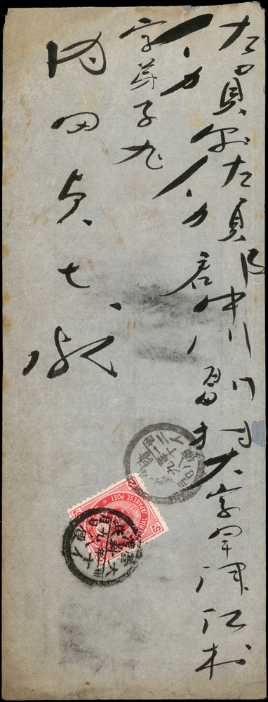 信封分類 大清郵政 1911年以前清代~國家郵政史(1082-1112)清代~商埠郵政史(1156-1158)在華客郵郵史(1168-1188)中華民國郵政 1912~1949年民國~郵政史(1424-1537)民國~名人封(1538-1547)民國~防盜(1548-1559)民國~首航封(1560-1570)民國~欠資封(1571-1574)民國~檢查封(1575-1599)民國~行動郵局/信櫃(1600-1613)兩岸通郵史(1933年-1989年)(1614-1632)民國~郵政匯兌(1633-1644)民國~民信局/僑批(1645-1651)民國~郵政明信片(1652-1659)民國~風景明信片(1660-1683)民國~國內及國際航空郵簡(1684-1703)日偽政權~郵政史(1714-1723)台灣 1888~2020年台灣~整批/整冊信封(3554-3583)日治時期~台灣郵史1895~1945(3601-3661)日治時期~台灣明信片(3662-3688)日治時期~台灣風景片(3689-3695)台灣老台幣時期~國父像火炬圖『限臺灣省用』明信片(3738-3739)台灣~老台幣時期郵政史1945~1949(3740-3815)台灣~自動化實寄封(4646-4647)台灣~新台幣時期郵政史(6001-6041)大陳島(6042)台灣~代辦所/欠資/首航(6043-6055)台灣~郵政匯兌(6056-6073)台灣~首日封(6074-6090)台灣~郵資封/郵政明信片(6091-6100)台灣~原圖卡(6101-6113)台灣~國內及國際航空郵簡(6114-6122)中國人民郵政 1949~2018年新中國~解放區郵史(6128-6140)新中國~郵政史(6277-6289)新中國~郵政匯兌/郵資封片(6290-6304)中國香港~郵政史(6314-6316)世界各國郵票日本郵政史(6327-6334)外國信封(A~Z)(6350-6365) 大清郵政 1911年以前 ↳清代~國家郵政史(1082-1112) ↳清代~商埠郵政史(1156-1158) ↳在華客郵郵史(1168-1188)中華民國郵政 1912~1949年 ↳民國~郵政史(1424-1537) ↳民國~名人封(1538-1547) ↳民國~防盜(1548-1559) ↳民國~首航封(1560-1570) ↳民國~欠資封(1571-1574) ↳民國~檢查封(1575-1599) ↳民國~行動郵局/信櫃(1600-1613) ↳兩岸通郵史(1933年-1989年)(1614-1632) ↳民國~郵政匯兌(1633-1644) ↳民國~民信局/僑批(1645-1651) ↳民國~郵政明信片(1652-1659) ↳民國~風景明信片(1660-1683) ↳民國~國內及國際航空郵簡(1684-1703) ↳日偽政權~郵政史(1714-1723)台灣 1888~2020年 ↳台灣~整批/整冊信封(3554-3583) ↳日治時期~台灣郵史1895~1945(3601-3661) ↳日治時期~台灣明信片(3662-3688) ↳日治時期~台灣風景片(3689-3695) ↳台灣老台幣時期~國父像火炬圖『限臺灣省用』明信片(3738-3739) ↳台灣~老台幣時期郵政史1945~1949(3740-3815) ↳台灣~自動化實寄封(4646-4647) ↳台灣~新台幣時期郵政史(6001-6041) ↳大陳島(6042) ↳台灣~代辦所/欠資/首航(6043-6055) ↳台灣~郵政匯兌(6056-6073) ↳台灣~首日封(6074-6090) ↳台灣~郵資封/郵政明信片(6091-6100) ↳台灣~原圖卡(6101-6113) ↳台灣~國內及國際航空郵簡(6114-6122)中國人民郵政 1949~2018年 ↳新中國~解放區郵史(6128-6140) ↳新中國~郵政史(6277-6289) ↳新中國~郵政匯兌/郵資封片(6290-6304) ↳中國香港~郵政史(6314-6316)世界各國郵票 ↳日本郵政史(6327-6334) ↳外國信封(A~Z)(6350-6365) 點大圖放大展示,點小圖切換 1898年台灣大嵙崁寄日本封,貼日郵小判2錢1枚,銷台灣大嵙崁三一年九月十八日丸一戳,日本諸富三一年九月二十八日丸一到戳;附內信(Page 57) 結標時間 2025-12-16 10:36:40 拍品編號:3611 起拍價:NT$4000 當前價:NT$4000 自動出價 直接出價 出價 系統將按出價級數,依序為您比(出)價至上限金額 提醒您:直接出價後不可將金額改低,只能改高,蟠龍無法降低您的出價,最高出價者無法取消出價 (查看出價說明) 得標說明:需按得標價另加10%佣金 當前加價幅度:NT$0元 (查看加價級數表) 回上頁 線上出價記錄 線上 0 人次,書面 0 人次 競價客戶 所在地 出價時間 出價金額 出價方式 問與答 目前尚無提問 我要提問 請先登入會員