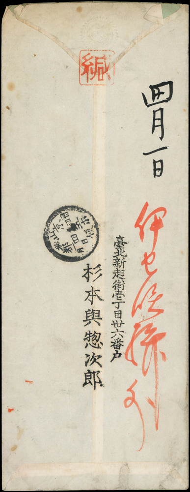 信封分類 大清郵政 1911年以前清代~國家郵政史(1082-1112)清代~商埠郵政史(1156-1158)在華客郵郵史(1168-1188)中華民國郵政 1912~1949年民國~郵政史(1424-1537)民國~名人封(1538-1547)民國~防盜(1548-1559)民國~首航封(1560-1570)民國~欠資封(1571-1574)民國~檢查封(1575-1599)民國~行動郵局/信櫃(1600-1613)兩岸通郵史(1933年-1989年)(1614-1632)民國~郵政匯兌(1633-1644)民國~民信局/僑批(1645-1651)民國~郵政明信片(1652-1659)民國~風景明信片(1660-1683)民國~國內及國際航空郵簡(1684-1703)日偽政權~郵政史(1714-1723)台灣 1888~2020年台灣~整批/整冊信封(3554-3583)日治時期~台灣郵史1895~1945(3601-3661)日治時期~台灣明信片(3662-3688)日治時期~台灣風景片(3689-3695)台灣老台幣時期~國父像火炬圖『限臺灣省用』明信片(3738-3739)台灣~老台幣時期郵政史1945~1949(3740-3815)台灣~自動化實寄封(4646-4647)台灣~新台幣時期郵政史(6001-6041)大陳島(6042)台灣~代辦所/欠資/首航(6043-6055)台灣~郵政匯兌(6056-6073)台灣~首日封(6074-6090)台灣~郵資封/郵政明信片(6091-6100)台灣~原圖卡(6101-6113)台灣~國內及國際航空郵簡(6114-6122)中國人民郵政 1949~2018年新中國~解放區郵史(6128-6140)新中國~郵政史(6277-6289)新中國~郵政匯兌/郵資封片(6290-6304)中國香港~郵政史(6314-6316)世界各國郵票日本郵政史(6327-6334)外國信封(A~Z)(6350-6365) 大清郵政 1911年以前 ↳清代~國家郵政史(1082-1112) ↳清代~商埠郵政史(1156-1158) ↳在華客郵郵史(1168-1188)中華民國郵政 1912~1949年 ↳民國~郵政史(1424-1537) ↳民國~名人封(1538-1547) ↳民國~防盜(1548-1559) ↳民國~首航封(1560-1570) ↳民國~欠資封(1571-1574) ↳民國~檢查封(1575-1599) ↳民國~行動郵局/信櫃(1600-1613) ↳兩岸通郵史(1933年-1989年)(1614-1632) ↳民國~郵政匯兌(1633-1644) ↳民國~民信局/僑批(1645-1651) ↳民國~郵政明信片(1652-1659) ↳民國~風景明信片(1660-1683) ↳民國~國內及國際航空郵簡(1684-1703) ↳日偽政權~郵政史(1714-1723)台灣 1888~2020年 ↳台灣~整批/整冊信封(3554-3583) ↳日治時期~台灣郵史1895~1945(3601-3661) ↳日治時期~台灣明信片(3662-3688) ↳日治時期~台灣風景片(3689-3695) ↳台灣老台幣時期~國父像火炬圖『限臺灣省用』明信片(3738-3739) ↳台灣~老台幣時期郵政史1945~1949(3740-3815) ↳台灣~自動化實寄封(4646-4647) ↳台灣~新台幣時期郵政史(6001-6041) ↳大陳島(6042) ↳台灣~代辦所/欠資/首航(6043-6055) ↳台灣~郵政匯兌(6056-6073) ↳台灣~首日封(6074-6090) ↳台灣~郵資封/郵政明信片(6091-6100) ↳台灣~原圖卡(6101-6113) ↳台灣~國內及國際航空郵簡(6114-6122)中國人民郵政 1949~2018年 ↳新中國~解放區郵史(6128-6140) ↳新中國~郵政史(6277-6289) ↳新中國~郵政匯兌/郵資封片(6290-6304) ↳中國香港~郵政史(6314-6316)世界各國郵票 ↳日本郵政史(6327-6334) ↳外國信封(A~Z)(6350-6365) 點大圖放大展示,點小圖切換 1901年台北新起街寄日本掛號封,貼日郵菊10錢1枚,銷台灣臺北三四年四月一日丸一戳,日本山城京都三四年四月五日丸一到戳(Page 57) 結標時間 2025-12-16 10:38:20 拍品編號:3616 起拍價:NT$3000 當前價:NT$3000 自動出價 直接出價 出價 系統將按出價級數,依序為您比(出)價至上限金額 提醒您:直接出價後不可將金額改低,只能改高,蟠龍無法降低您的出價,最高出價者無法取消出價 (查看出價說明) 得標說明:需按得標價另加10%佣金 當前加價幅度:NT$0元 (查看加價級數表) 回上頁 線上出價記錄 線上 0 人次,書面 0 人次 競價客戶 所在地 出價時間 出價金額 出價方式 問與答 目前尚無提問 我要提問 請先登入會員