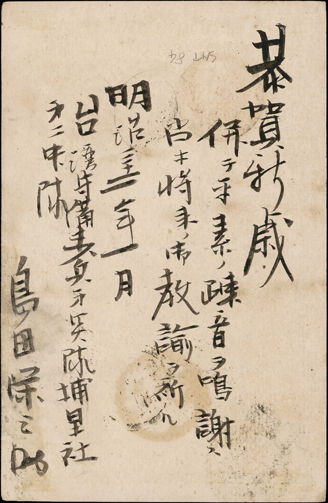 信封分類 大清郵政 1911年以前清代~國家郵政史(1082-1112)清代~商埠郵政史(1156-1158)在華客郵郵史(1168-1188)中華民國郵政 1912~1949年民國~郵政史(1424-1537)民國~名人封(1538-1547)民國~防盜(1548-1559)民國~首航封(1560-1570)民國~欠資封(1571-1574)民國~檢查封(1575-1599)民國~行動郵局/信櫃(1600-1613)兩岸通郵史(1933年-1989年)(1614-1632)民國~郵政匯兌(1633-1644)民國~民信局/僑批(1645-1651)民國~郵政明信片(1652-1659)民國~風景明信片(1660-1683)民國~國內及國際航空郵簡(1684-1703)日偽政權~郵政史(1714-1723)台灣 1888~2020年台灣~整批/整冊信封(3554-3583)日治時期~台灣郵史1895~1945(3601-3661)日治時期~台灣明信片(3662-3688)日治時期~台灣風景片(3689-3695)台灣老台幣時期~國父像火炬圖『限臺灣省用』明信片(3738-3739)台灣~老台幣時期郵政史1945~1949(3740-3815)台灣~自動化實寄封(4646-4647)台灣~新台幣時期郵政史(6001-6041)大陳島(6042)台灣~代辦所/欠資/首航(6043-6055)台灣~郵政匯兌(6056-6073)台灣~首日封(6074-6090)台灣~郵資封/郵政明信片(6091-6100)台灣~原圖卡(6101-6113)台灣~國內及國際航空郵簡(6114-6122)中國人民郵政 1949~2018年新中國~解放區郵史(6128-6140)新中國~郵政史(6277-6289)新中國~郵政匯兌/郵資封片(6290-6304)中國香港~郵政史(6314-6316)世界各國郵票日本郵政史(6327-6334)外國信封(A~Z)(6350-6365) 大清郵政 1911年以前 ↳清代~國家郵政史(1082-1112) ↳清代~商埠郵政史(1156-1158) ↳在華客郵郵史(1168-1188)中華民國郵政 1912~1949年 ↳民國~郵政史(1424-1537) ↳民國~名人封(1538-1547) ↳民國~防盜(1548-1559) ↳民國~首航封(1560-1570) ↳民國~欠資封(1571-1574) ↳民國~檢查封(1575-1599) ↳民國~行動郵局/信櫃(1600-1613) ↳兩岸通郵史(1933年-1989年)(1614-1632) ↳民國~郵政匯兌(1633-1644) ↳民國~民信局/僑批(1645-1651) ↳民國~郵政明信片(1652-1659) ↳民國~風景明信片(1660-1683) ↳民國~國內及國際航空郵簡(1684-1703) ↳日偽政權~郵政史(1714-1723)台灣 1888~2020年 ↳台灣~整批/整冊信封(3554-3583) ↳日治時期~台灣郵史1895~1945(3601-3661) ↳日治時期~台灣明信片(3662-3688) ↳日治時期~台灣風景片(3689-3695) ↳台灣老台幣時期~國父像火炬圖『限臺灣省用』明信片(3738-3739) ↳台灣~老台幣時期郵政史1945~1949(3740-3815) ↳台灣~自動化實寄封(4646-4647) ↳台灣~新台幣時期郵政史(6001-6041) ↳大陳島(6042) ↳台灣~代辦所/欠資/首航(6043-6055) ↳台灣~郵政匯兌(6056-6073) ↳台灣~首日封(6074-6090) ↳台灣~郵資封/郵政明信片(6091-6100) ↳台灣~原圖卡(6101-6113) ↳台灣~國內及國際航空郵簡(6114-6122)中國人民郵政 1949~2018年 ↳新中國~解放區郵史(6128-6140) ↳新中國~郵政史(6277-6289) ↳新中國~郵政匯兌/郵資封片(6290-6304) ↳中國香港~郵政史(6314-6316)世界各國郵票 ↳日本郵政史(6327-6334) ↳外國信封(A~Z)(6350-6365) 點大圖放大展示,點小圖切換 1899年日本小判1錢郵資片,自臺中守備兵第四大隊埔里社寄日本,銷臺灣埔里社三二年一月四日丸一戳,日本大阪三二年一月二十日丸一到戳(Page 59) 結標時間 2025-12-16 10:55:00 拍品編號:3666 起拍價:NT$5000 當前價:NT$5000 自動出價 直接出價 出價 系統將按出價級數,依序為您比(出)價至上限金額 提醒您:直接出價後不可將金額改低,只能改高,蟠龍無法降低您的出價,最高出價者無法取消出價 (查看出價說明) 得標說明:需按得標價另加10%佣金 當前加價幅度:NT$0元 (查看加價級數表) 回上頁 線上出價記錄 線上 0 人次,書面 0 人次 競價客戶 所在地 出價時間 出價金額 出價方式 問與答 目前尚無提問 我要提問 請先登入會員