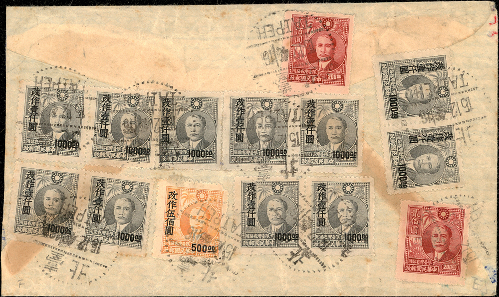 信封分類 大清郵政 1911年以前清代~國家郵政史(1082-1112)清代~商埠郵政史(1156-1158)在華客郵郵史(1168-1188)中華民國郵政 1912~1949年民國~郵政史(1424-1537)民國~名人封(1538-1547)民國~防盜(1548-1559)民國~首航封(1560-1570)民國~欠資封(1571-1574)民國~檢查封(1575-1599)民國~行動郵局/信櫃(1600-1613)兩岸通郵史(1933年-1989年)(1614-1632)民國~郵政匯兌(1633-1644)民國~民信局/僑批(1645-1651)民國~郵政明信片(1652-1659)民國~風景明信片(1660-1683)民國~國內及國際航空郵簡(1684-1703)日偽政權~郵政史(1714-1723)台灣 1888~2020年台灣~整批/整冊信封(3554-3583)日治時期~台灣郵史1895~1945(3601-3661)日治時期~台灣明信片(3662-3688)日治時期~台灣風景片(3689-3695)台灣老台幣時期~國父像火炬圖『限臺灣省用』明信片(3738-3739)台灣~老台幣時期郵政史1945~1949(3740-3815)台灣~自動化實寄封(4646-4647)台灣~新台幣時期郵政史(6001-6041)大陳島(6042)台灣~代辦所/欠資/首航(6043-6055)台灣~郵政匯兌(6056-6073)台灣~首日封(6074-6090)台灣~郵資封/郵政明信片(6091-6100)台灣~原圖卡(6101-6113)台灣~國內及國際航空郵簡(6114-6122)中國人民郵政 1949~2018年新中國~解放區郵史(6128-6140)新中國~郵政史(6277-6289)新中國~郵政匯兌/郵資封片(6290-6304)中國香港~郵政史(6314-6316)世界各國郵票日本郵政史(6327-6334)外國信封(A~Z)(6350-6365) 大清郵政 1911年以前 ↳清代~國家郵政史(1082-1112) ↳清代~商埠郵政史(1156-1158) ↳在華客郵郵史(1168-1188)中華民國郵政 1912~1949年 ↳民國~郵政史(1424-1537) ↳民國~名人封(1538-1547) ↳民國~防盜(1548-1559) ↳民國~首航封(1560-1570) ↳民國~欠資封(1571-1574) ↳民國~檢查封(1575-1599) ↳民國~行動郵局/信櫃(1600-1613) ↳兩岸通郵史(1933年-1989年)(1614-1632) ↳民國~郵政匯兌(1633-1644) ↳民國~民信局/僑批(1645-1651) ↳民國~郵政明信片(1652-1659) ↳民國~風景明信片(1660-1683) ↳民國~國內及國際航空郵簡(1684-1703) ↳日偽政權~郵政史(1714-1723)台灣 1888~2020年 ↳台灣~整批/整冊信封(3554-3583) ↳日治時期~台灣郵史1895~1945(3601-3661) ↳日治時期~台灣明信片(3662-3688) ↳日治時期~台灣風景片(3689-3695) ↳台灣老台幣時期~國父像火炬圖『限臺灣省用』明信片(3738-3739) ↳台灣~老台幣時期郵政史1945~1949(3740-3815) ↳台灣~自動化實寄封(4646-4647) ↳台灣~新台幣時期郵政史(6001-6041) ↳大陳島(6042) ↳台灣~代辦所/欠資/首航(6043-6055) ↳台灣~郵政匯兌(6056-6073) ↳台灣~首日封(6074-6090) ↳台灣~郵資封/郵政明信片(6091-6100) ↳台灣~原圖卡(6101-6113) ↳台灣~國內及國際航空郵簡(6114-6122)中國人民郵政 1949~2018年 ↳新中國~解放區郵史(6128-6140) ↳新中國~郵政史(6277-6289) ↳新中國~郵政匯兌/郵資封片(6290-6304) ↳中國香港~郵政史(6314-6316)世界各國郵票 ↳日本郵政史(6327-6334) ↳外國信封(A~Z)(6350-6365) 點大圖放大展示,點小圖切換 老台幣第15期國際航空郵資(37.12.10-37.12.31):1948年台北寄美國航空封,背貼老台幣票14枚計郵資12000元,銷台北37.12.15;此郵資僅使用21天(Page 65) 結標時間 2025-12-16 11:32:40 拍品編號:3779 起拍價:NT$3000 當前價:NT$3000 自動出價 直接出價 出價 系統將按出價級數,依序為您比(出)價至上限金額 提醒您:直接出價後不可將金額改低,只能改高,蟠龍無法降低您的出價,最高出價者無法取消出價 (查看出價說明) 得標說明:需按得標價另加10%佣金 當前加價幅度:NT$0元 (查看加價級數表) 回上頁 線上出價記錄 線上 0 人次,書面 0 人次 競價客戶 所在地 出價時間 出價金額 出價方式 問與答 目前尚無提問 我要提問 請先登入會員