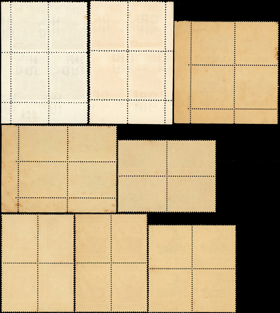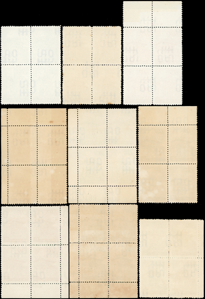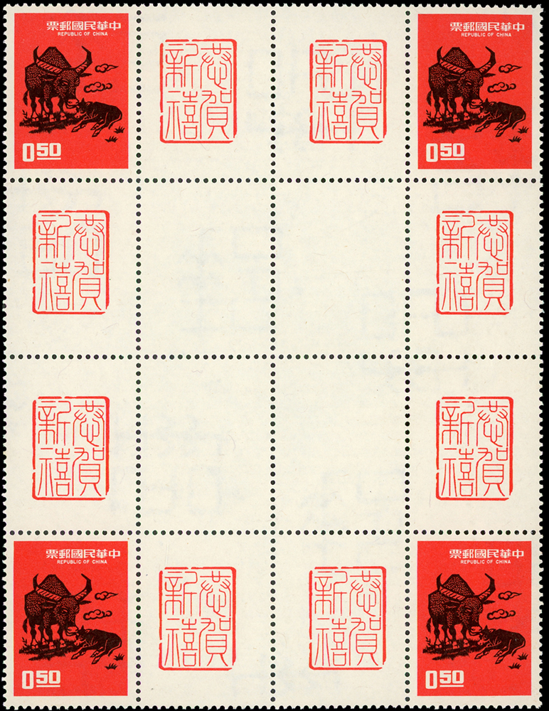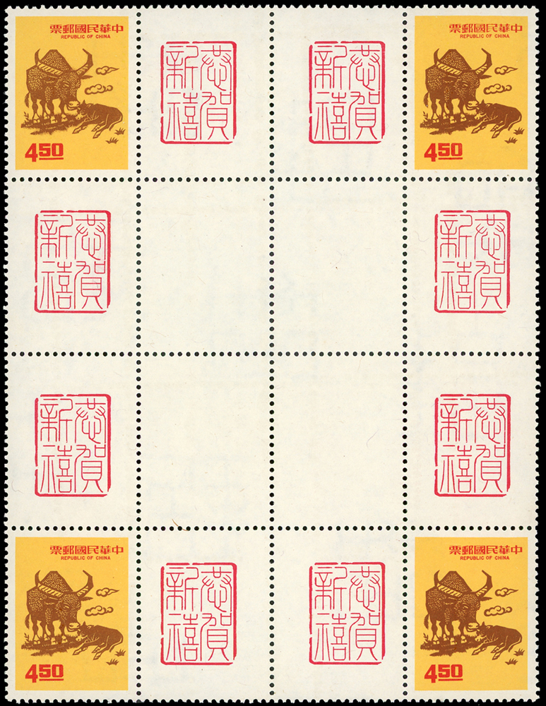 台灣中早期新票方連8組,共32套,包括:蔣總統七秩華誕紀念2組,玉照閱兵.一輪牛.一版莒光樓.亞洋郵盟十週年.中華青少年及少年棒球雙獲世界冠軍紀念.一九七四年世界博覽會各1組,品像混合,多數背淡黃或斑點,VF-F;歡迎至官網瀏覽全貌