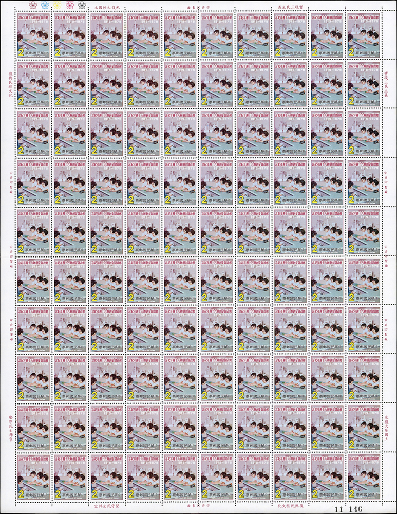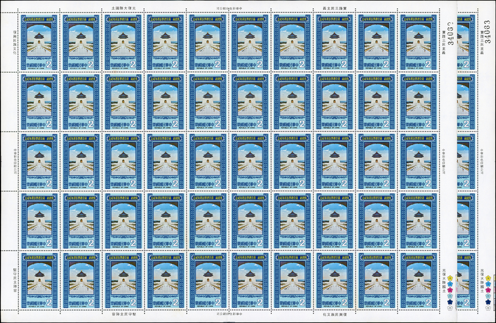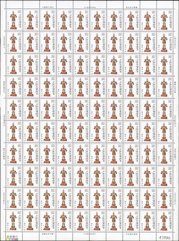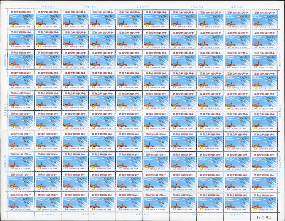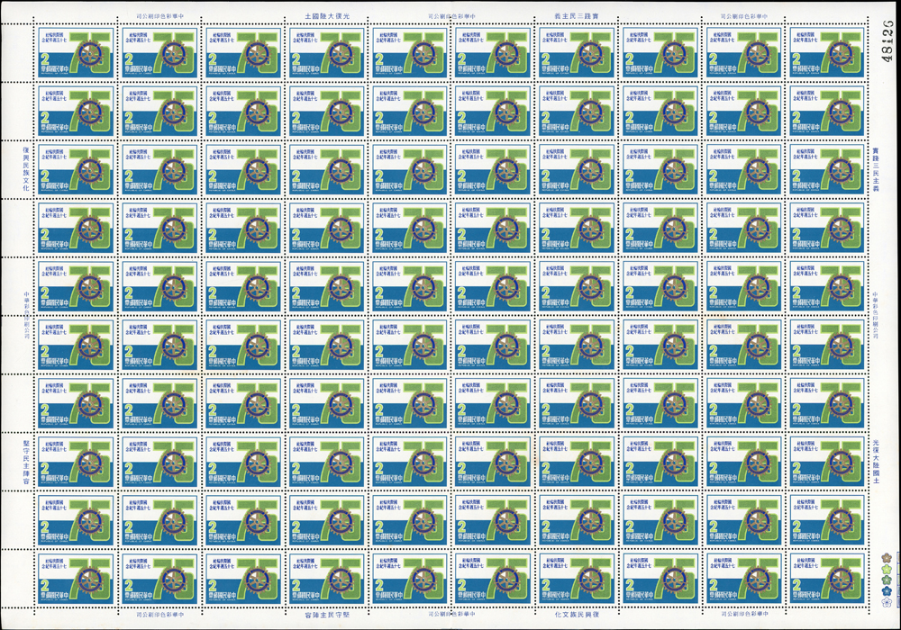 台灣不成套新票版張:(1)百枚版張16版,含:古代玉器(68.69年版)2元.古代陶器2元.臺灣風景(69年版)2元.節約能源2元.第十屆國民儲蓄日2元.六十九年臺閩地區戶口及住宅普查2元.唐三彩2元.航空(69年版)5元.國際扶輪社七十五週年2元.第十屆全國技能競賽大會2元.國際兒童年2元.郵政儲金創辦六十週年紀念2元.環境保護2元.莊敬自強2角2版;(2)50枚版張4版,含:松竹圖古畫及蔣公逝世五週年紀念2元各2版;品像混合,少數背淡斑點,多數保存佳,VF-F;歡迎至官網瀏覽全貌