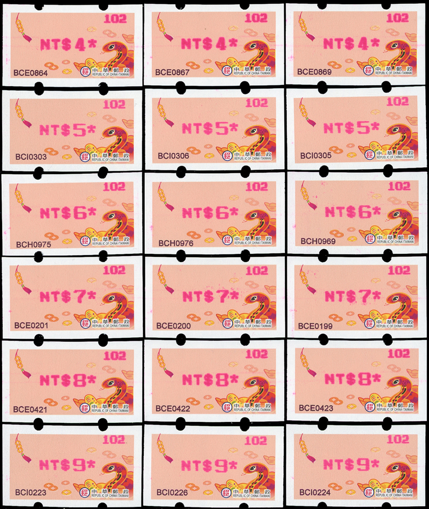 郵票分類 大清郵政 1911年以前清代~海關大龍及小龍郵票(1001-1028)清代~慈壽/紅印花及蟠龍郵票(1029-1065)清代~蟠龍郵戳/宣統及其他郵票(1066-1081)清代~商埠郵票(1136-1155)在華客郵郵票(1159-1167)中華民國郵政 1912~1949年民國~整批/整冊郵票(1189-1201)民國~常用郵票&變體票.趣味品(1202-1323)民國~紀念郵票(1324-1347)民國~專題/航空/欠資/附捐/儲金(1348-1366)民國~加蓋限省貼用/單位銀元郵票/郵戳(1367-1388)民國~郵票小冊(1389-1423)日偽政權~郵票(1704-1713)台灣 1888~2020年台灣~整批/整冊郵票(3501-3553)清代~台灣官用郵票(3584-3593)清代~台灣龍馬票(3594-3595)清代~台灣民主國獨虎票(3596-3600)台灣~老台幣時期郵票&變體票1945~1949(3696-3737)台灣~新台幣時期郵票&變體票1950~2000年(3816-4062)台灣~大全張(4063-4384)台灣~生肖筒(4385-4399)台灣~樣票(4400-4453)台灣~小全張(4454-4595)台灣~郵政贈品/紀念品(4596-4601)台灣~郵票小冊(4602-4621)台灣~自動化郵資券(4622-4645)台灣~年度郵票/年度錦冊/專冊(4648-4673)中國人民郵政 1949~2018年新中國~解放區郵票(6123-6127)新中國~普通/改值郵票(6141-6171)新中國~紀念/編號/特種郵票(6172-6187)新中國~J、T字頭郵票(6188-6229)新中國~小型張/小本票(6230-6253)新中國~編年票(6254-6276)中國香港及澳門~郵票(6305-6313)世界各國郵票日本郵票(6317-6326)外國郵票(A~Z)(6335-6349) 大清郵政 1911年以前 ↳清代~海關大龍及小龍郵票(1001-1028) ↳清代~慈壽/紅印花及蟠龍郵票(1029-1065) ↳清代~蟠龍郵戳/宣統及其他郵票(1066-1081) ↳清代~商埠郵票(1136-1155) ↳在華客郵郵票(1159-1167)中華民國郵政 1912~1949年 ↳民國~整批/整冊郵票(1189-1201) ↳民國~常用郵票&變體票.趣味品(1202-1323) ↳民國~紀念郵票(1324-1347) ↳民國~專題/航空/欠資/附捐/儲金(1348-1366) ↳民國~加蓋限省貼用/單位銀元郵票/郵戳(1367-1388) ↳民國~郵票小冊(1389-1423) ↳日偽政權~郵票(1704-1713)台灣 1888~2020年 ↳台灣~整批/整冊郵票(3501-3553) ↳清代~台灣官用郵票(3584-3593) ↳清代~台灣龍馬票(3594-3595) ↳清代~台灣民主國獨虎票(3596-3600) ↳台灣~老台幣時期郵票&變體票1945~1949(3696-3737) ↳台灣~新台幣時期郵票&變體票1950~2000年(3816-4062) ↳台灣~大全張(4063-4384) ↳台灣~生肖筒(4385-4399) ↳台灣~樣票(4400-4453) ↳台灣~小全張(4454-4595) ↳台灣~郵政贈品/紀念品(4596-4601) ↳台灣~郵票小冊(4602-4621) ↳台灣~自動化郵資券(4622-4645) ↳台灣~年度郵票/年度錦冊/專冊(4648-4673)中國人民郵政 1949~2018年 ↳新中國~解放區郵票(6123-6127) ↳新中國~普通/改值郵票(6141-6171) ↳新中國~紀念/編號/特種郵票(6172-6187) ↳新中國~J、T字頭郵票(6188-6229) ↳新中國~小型張/小本票(6230-6253) ↳新中國~編年票(6254-6276) ↳中國香港及澳門~郵票(6305-6313)世界各國郵票 ↳日本郵票(6317-6326) ↳外國郵票(A~Z)(6335-6349) 點大圖放大展示,點小圖切換 靈蛇.駿馬郵資票一組,含:1元~32元,均未使用,總面值共計NT$927元,VF 結標時間 2025-12-16 16:13:40 拍品編號:4622 起拍價:NT$100 當前價:NT$100 自動出價 直接出價 出價 系統將按出價級數,依序為您比(出)價至上限金額 提醒您:直接出價後不可將金額改低,只能改高,蟠龍無法降低您的出價,最高出價者無法取消出價 (查看出價說明) 得標說明:需按得標價另加10%佣金 當前加價幅度:NT$0元 (查看加價級數表) 回上頁 線上出價記錄 線上 0 人次,書面 0 人次 競價客戶 所在地 出價時間 出價金額 出價方式 問與答 目前尚無提問 我要提問 請先登入會員