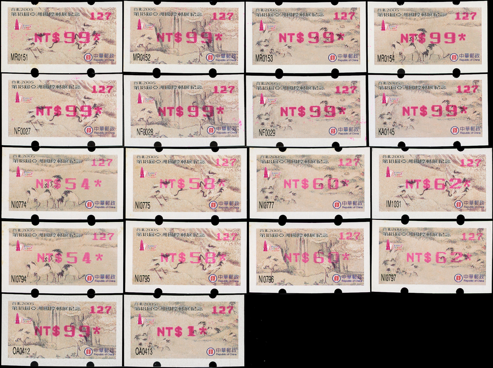 郵票分類 大清郵政 1911年以前清代~海關大龍及小龍郵票(1001-1028)清代~慈壽/紅印花及蟠龍郵票(1029-1065)清代~蟠龍郵戳/宣統及其他郵票(1066-1081)清代~商埠郵票(1136-1155)在華客郵郵票(1159-1167)中華民國郵政 1912~1949年民國~整批/整冊郵票(1189-1201)民國~常用郵票&變體票.趣味品(1202-1323)民國~紀念郵票(1324-1347)民國~專題/航空/欠資/附捐/儲金(1348-1366)民國~加蓋限省貼用/單位銀元郵票/郵戳(1367-1388)民國~郵票小冊(1389-1423)日偽政權~郵票(1704-1713)台灣 1888~2020年台灣~整批/整冊郵票(3501-3553)清代~台灣官用郵票(3584-3593)清代~台灣龍馬票(3594-3595)清代~台灣民主國獨虎票(3596-3600)台灣~老台幣時期郵票&變體票1945~1949(3696-3737)台灣~新台幣時期郵票&變體票1950~2000年(3816-4062)台灣~大全張(4063-4384)台灣~生肖筒(4385-4399)台灣~樣票(4400-4453)台灣~小全張(4454-4595)台灣~郵政贈品/紀念品(4596-4601)台灣~郵票小冊(4602-4621)台灣~自動化郵資券(4622-4645)台灣~年度郵票/年度錦冊/專冊(4648-4673)中國人民郵政 1949~2018年新中國~解放區郵票(6123-6127)新中國~普通/改值郵票(6141-6171)新中國~紀念/編號/特種郵票(6172-6187)新中國~J、T字頭郵票(6188-6229)新中國~小型張/小本票(6230-6253)新中國~編年票(6254-6276)中國香港及澳門~郵票(6305-6313)世界各國郵票日本郵票(6317-6326)外國郵票(A~Z)(6335-6349) 大清郵政 1911年以前 ↳清代~海關大龍及小龍郵票(1001-1028) ↳清代~慈壽/紅印花及蟠龍郵票(1029-1065) ↳清代~蟠龍郵戳/宣統及其他郵票(1066-1081) ↳清代~商埠郵票(1136-1155) ↳在華客郵郵票(1159-1167)中華民國郵政 1912~1949年 ↳民國~整批/整冊郵票(1189-1201) ↳民國~常用郵票&變體票.趣味品(1202-1323) ↳民國~紀念郵票(1324-1347) ↳民國~專題/航空/欠資/附捐/儲金(1348-1366) ↳民國~加蓋限省貼用/單位銀元郵票/郵戳(1367-1388) ↳民國~郵票小冊(1389-1423) ↳日偽政權~郵票(1704-1713)台灣 1888~2020年 ↳台灣~整批/整冊郵票(3501-3553) ↳清代~台灣官用郵票(3584-3593) ↳清代~台灣龍馬票(3594-3595) ↳清代~台灣民主國獨虎票(3596-3600) ↳台灣~老台幣時期郵票&變體票1945~1949(3696-3737) ↳台灣~新台幣時期郵票&變體票1950~2000年(3816-4062) ↳台灣~大全張(4063-4384) ↳台灣~生肖筒(4385-4399) ↳台灣~樣票(4400-4453) ↳台灣~小全張(4454-4595) ↳台灣~郵政贈品/紀念品(4596-4601) ↳台灣~郵票小冊(4602-4621) ↳台灣~自動化郵資券(4622-4645) ↳台灣~年度郵票/年度錦冊/專冊(4648-4673)中國人民郵政 1949~2018年 ↳新中國~解放區郵票(6123-6127) ↳新中國~普通/改值郵票(6141-6171) ↳新中國~紀念/編號/特種郵票(6172-6187) ↳新中國~J、T字頭郵票(6188-6229) ↳新中國~小型張/小本票(6230-6253) ↳新中國~編年票(6254-6276) ↳中國香港及澳門~郵票(6305-6313)世界各國郵票 ↳日本郵票(6317-6326) ↳外國郵票(A~Z)(6335-6349) 點大圖放大展示,點小圖切換 郵資票一組總面值共計NT$4016元:(1)胎仙圖4全紅色打印5元14組,均連號,VF;(2)胎仙圖4全紅色打印99元8組,均連號,VF;(3)胎仙圖紅色打印1元~99元10枚,VF 結標時間 2025-12-16 16:20:00 拍品編號:4641 起拍價:NT$2800 當前價:NT$2800 自動出價 直接出價 出價 系統將按出價級數,依序為您比(出)價至上限金額 提醒您:直接出價後不可將金額改低,只能改高,蟠龍無法降低您的出價,最高出價者無法取消出價 (查看出價說明) 得標說明:需按得標價另加10%佣金 當前加價幅度:NT$0元 (查看加價級數表) 回上頁 線上出價記錄 線上 0 人次,書面 0 人次 競價客戶 所在地 出價時間 出價金額 出價方式 問與答 目前尚無提問 我要提問 請先登入會員