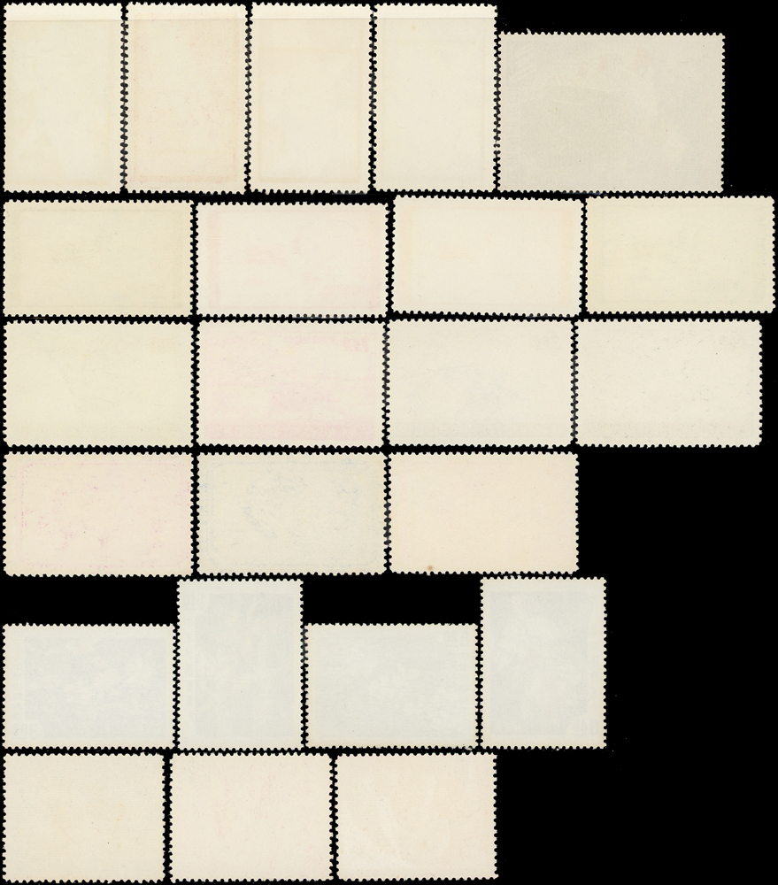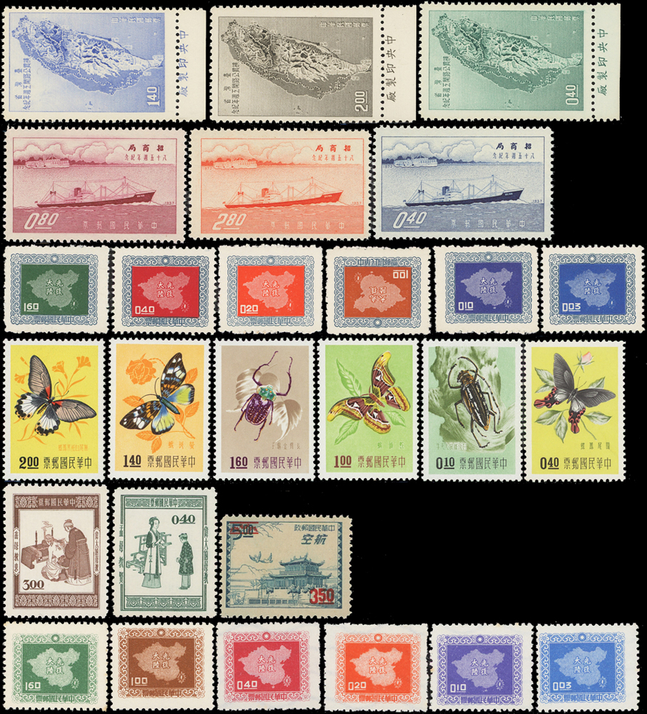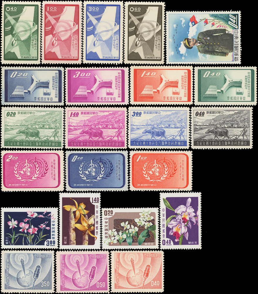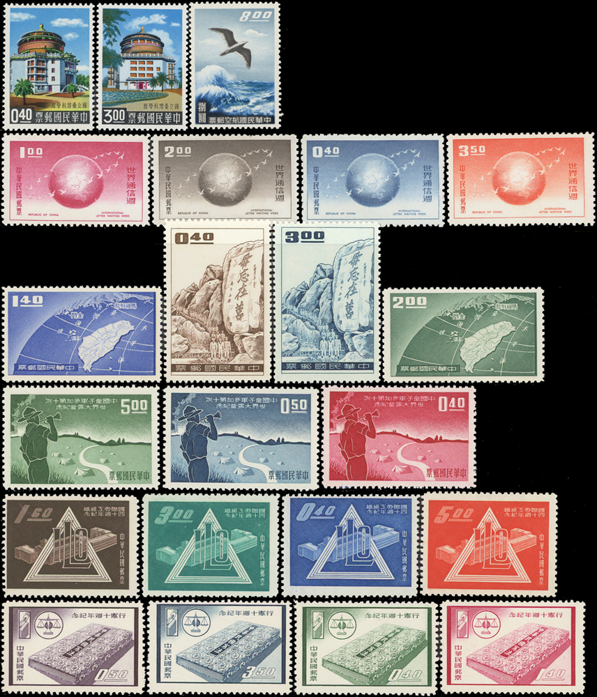 民國46~49年台灣郵票34套不同,缺總統府,一.二版莒光樓,古畫(一)成全年度,無小全張,其中國際自由工會聯合會成立十週年.世界童子軍50週年.台北版航空改值.平版地圖背淡黃或少數齒淡黃,其餘VF;歡迎至官網瀏覽全貌