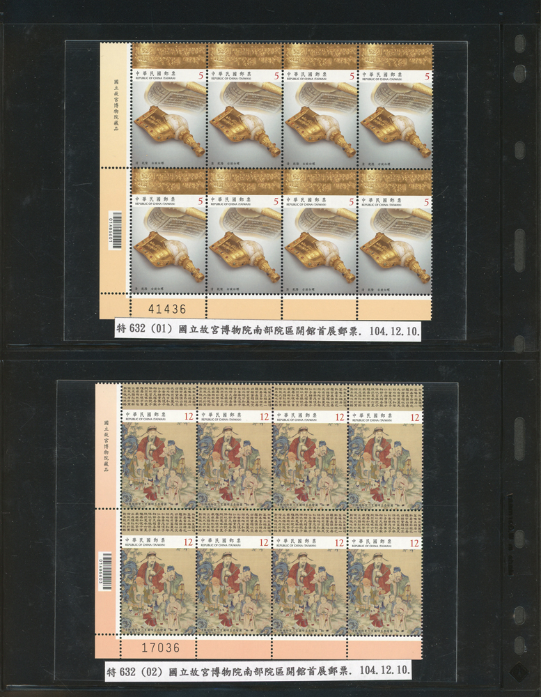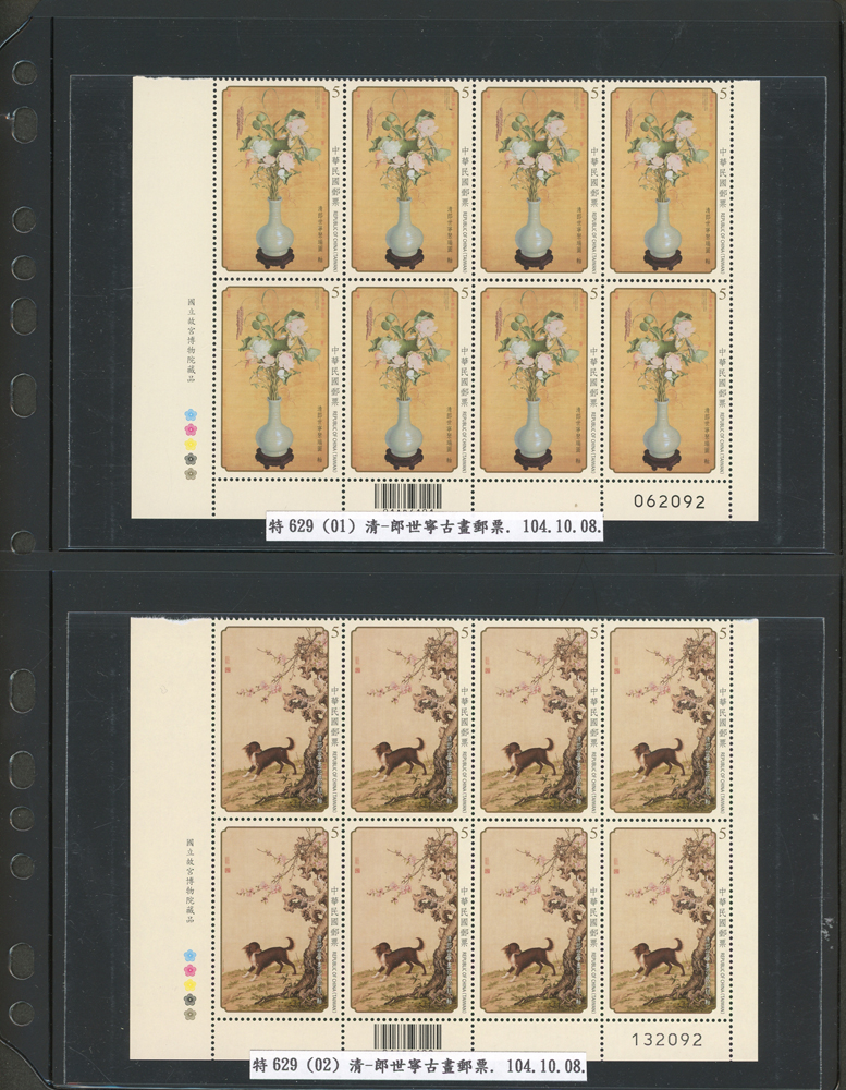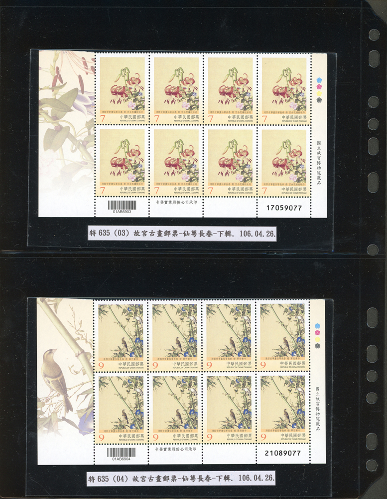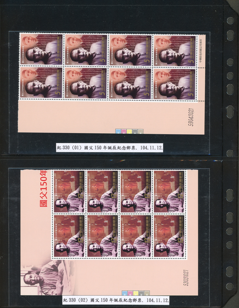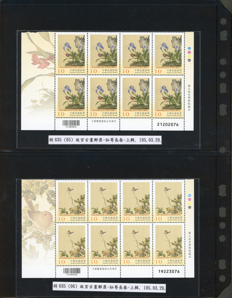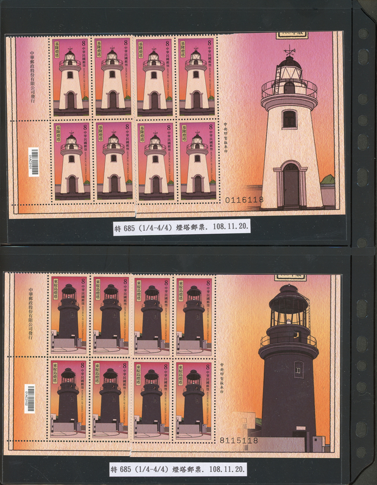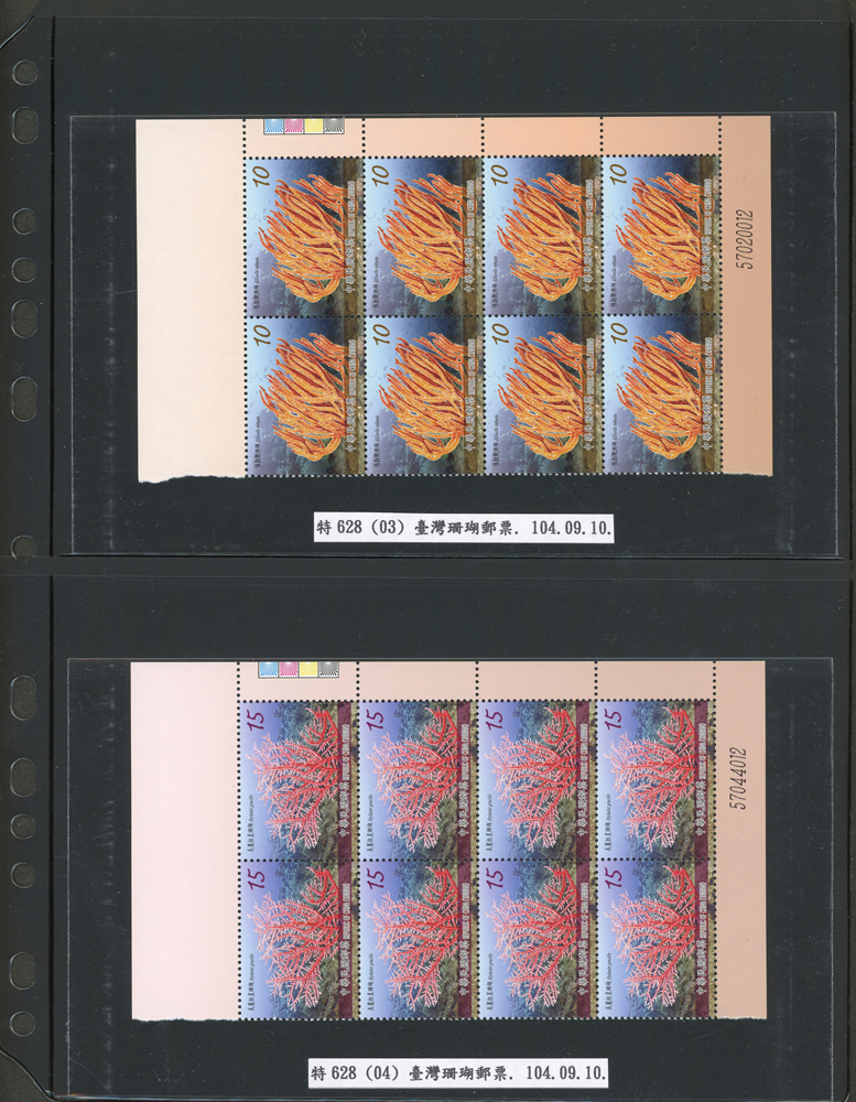 台灣2015~2021年成套新票一組,多數為八方連帶三邊紙廠銘或張號或色標,總面值共計NT$5024元,包括有:清郎世寧古畫,寶島風情-台中市,紅樓夢(2017年版),抗戰勝利暨臺灣光復70週年,臺灣史前文物(2015年版),臺灣珊瑚(2018年),國父150年誕辰,四輪生肖猴.鼠,台灣鐵道觀光,國立故宮博物院南部院區開館首展,仙萼長春(上.下輯),燈塔(2018-2019年版),東沙環礁國家公園,防疫等,品種豐富,品像混合,多數保存佳,VF-F;歡迎至官網瀏覽全貌