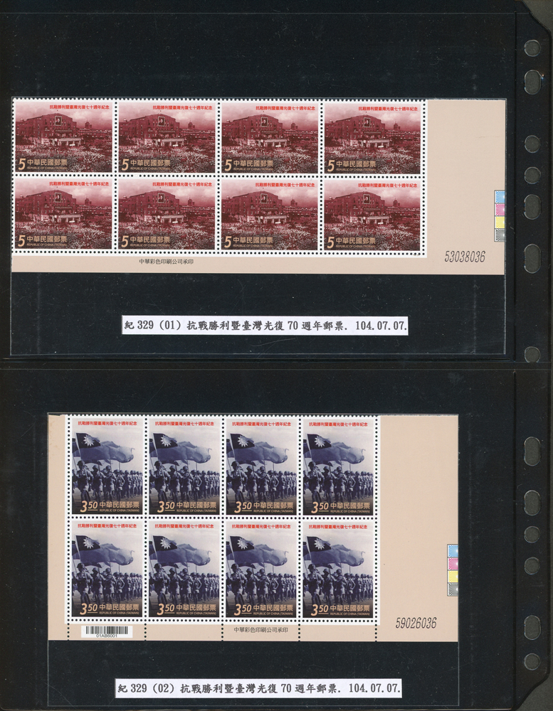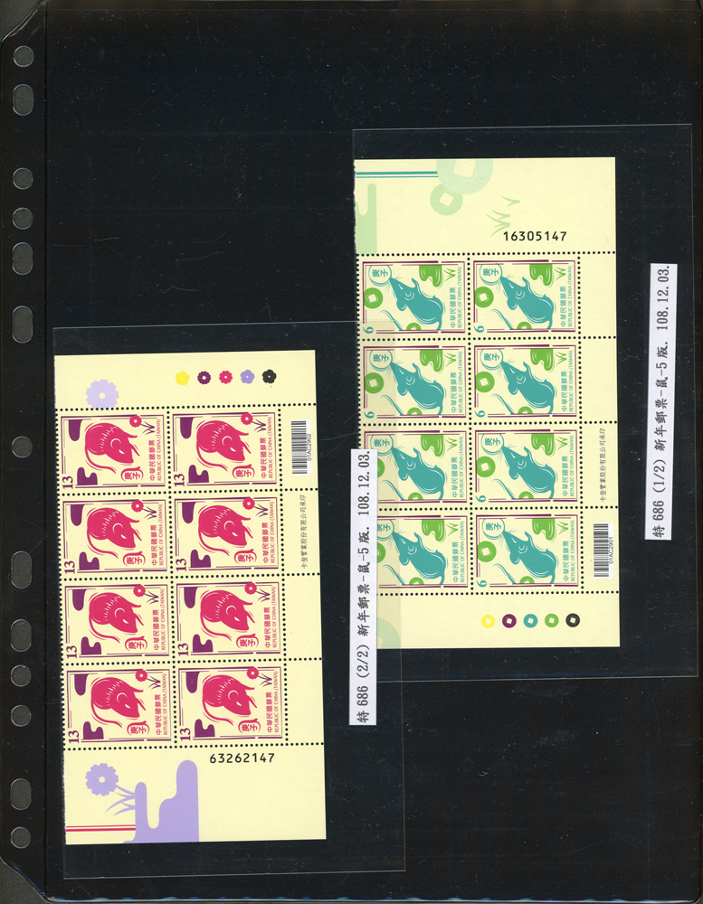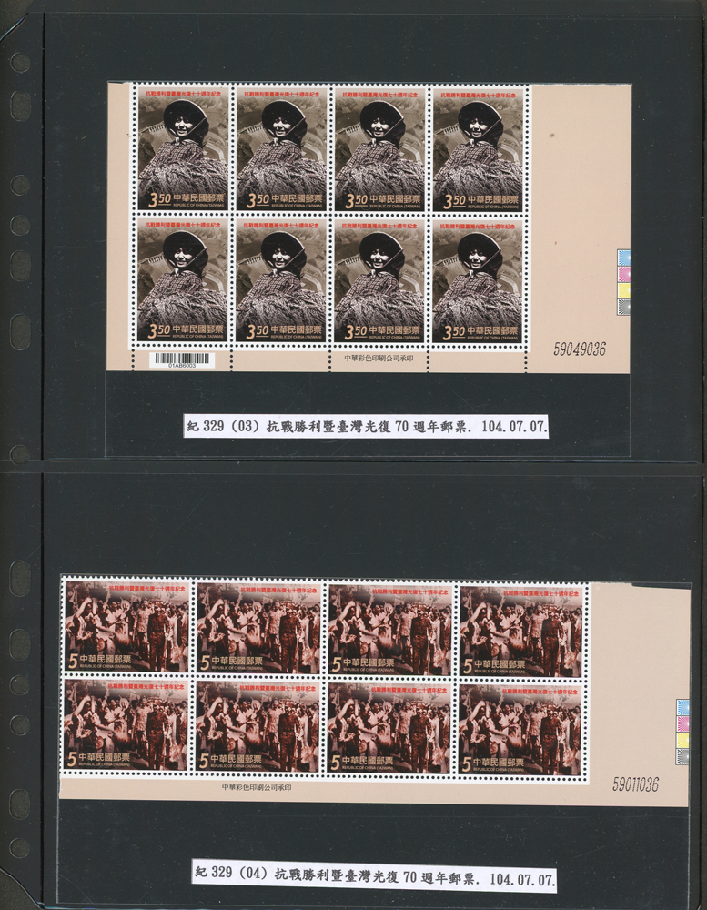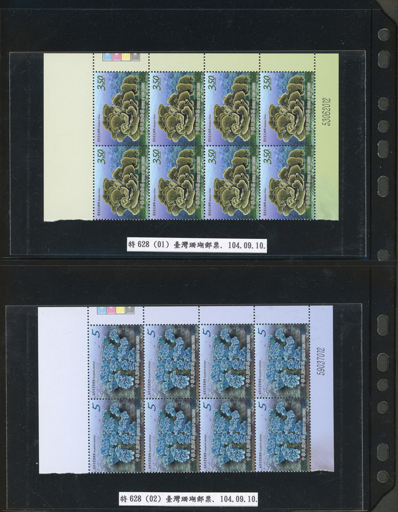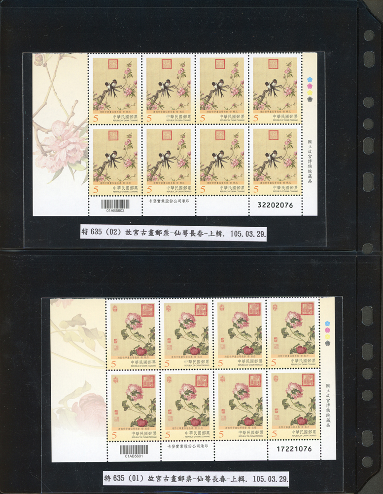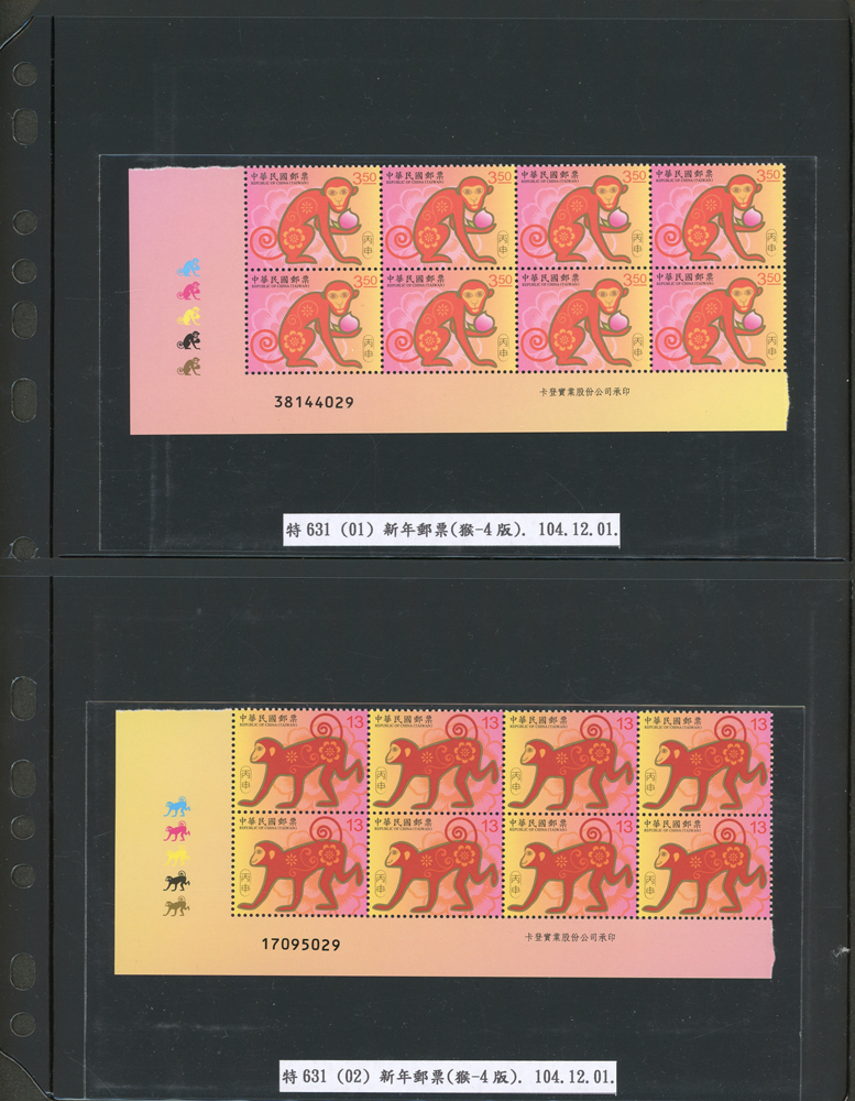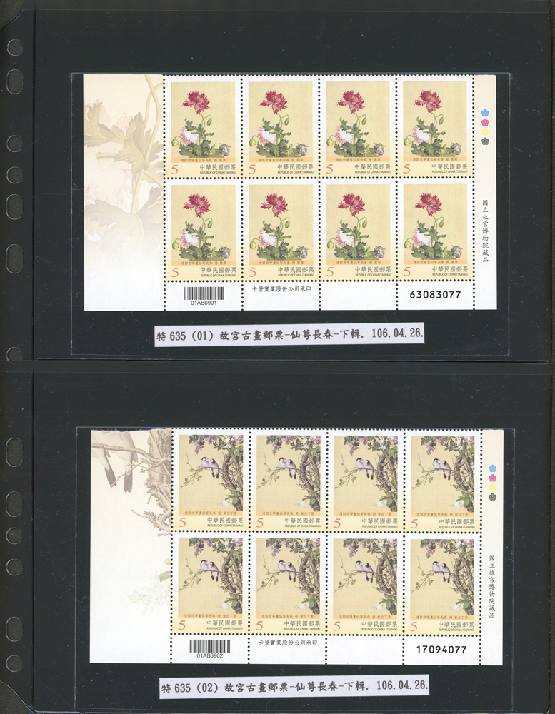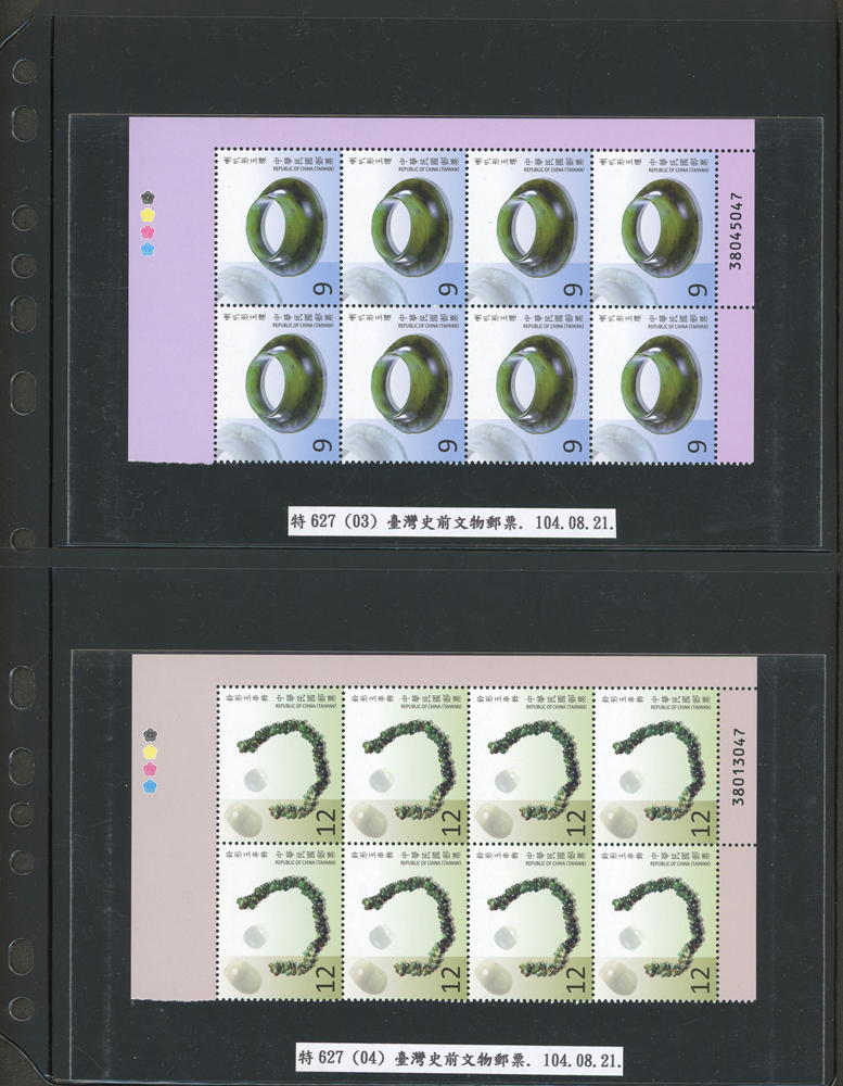 台灣2015~2021年成套新票一組,多數為八方連帶三邊紙廠銘或張號或色標,總面值共計NT$5024元,包括有:清郎世寧古畫,寶島風情-台中市,紅樓夢(2017年版),抗戰勝利暨臺灣光復70週年,臺灣史前文物(2015年版),臺灣珊瑚(2018年),國父150年誕辰,四輪生肖猴.鼠,台灣鐵道觀光,國立故宮博物院南部院區開館首展,仙萼長春(上.下輯),燈塔(2018-2019年版),東沙環礁國家公園,防疫等,品種豐富,品像混合,多數保存佳,VF-F;歡迎至官網瀏覽全貌