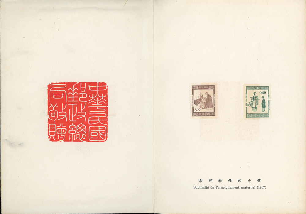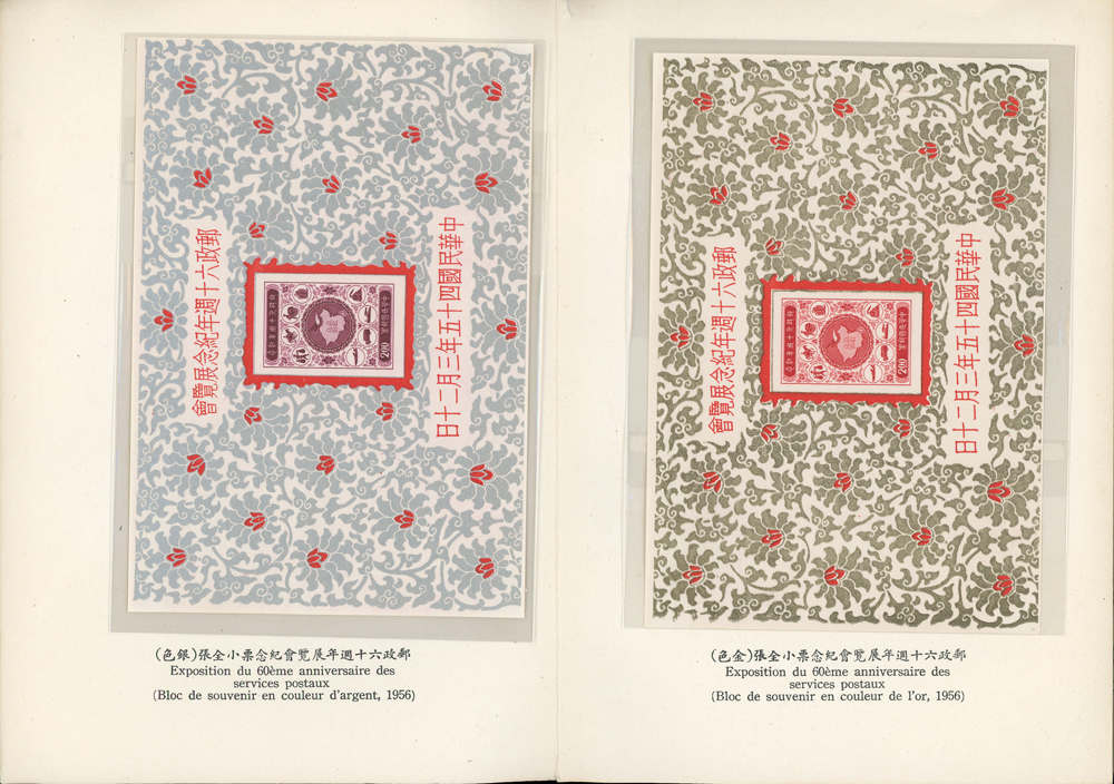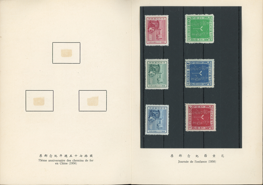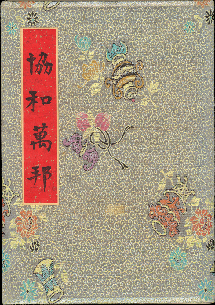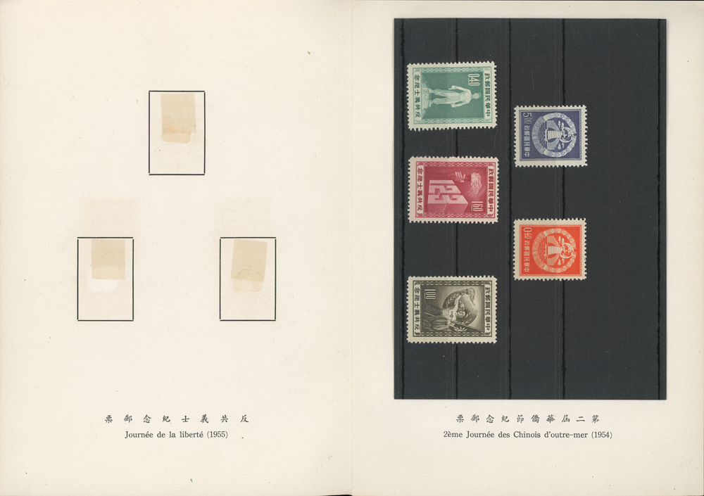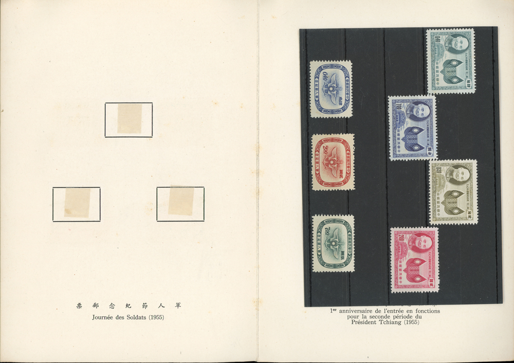 郵政總局贈外賓專冊『協和萬邦』精裝本1本,內貼有1954~1957年套票19套,小全張2枚,包括:造林保林.第十一屆青年節.台北版航空.救助越北僑胞附捐郵票.第二屆華僑節.反共義士.第二任總統就職週年.軍人節.聯合國十週年.蔣總統像影寫版.國父九十誕辰.郵政六十週年.郵政六十週年紀念展覽會小全張2全.兒童節.鐵路七十五週年.臺北版欠資.蔣總統七秩華誕.電信七十五週年.平版中華民國地圖.偉大的母教;品像混合,保存不錯,部分票脫落採護卡存放,VF-F;歡迎至官網瀏覽全貌(Page 118)