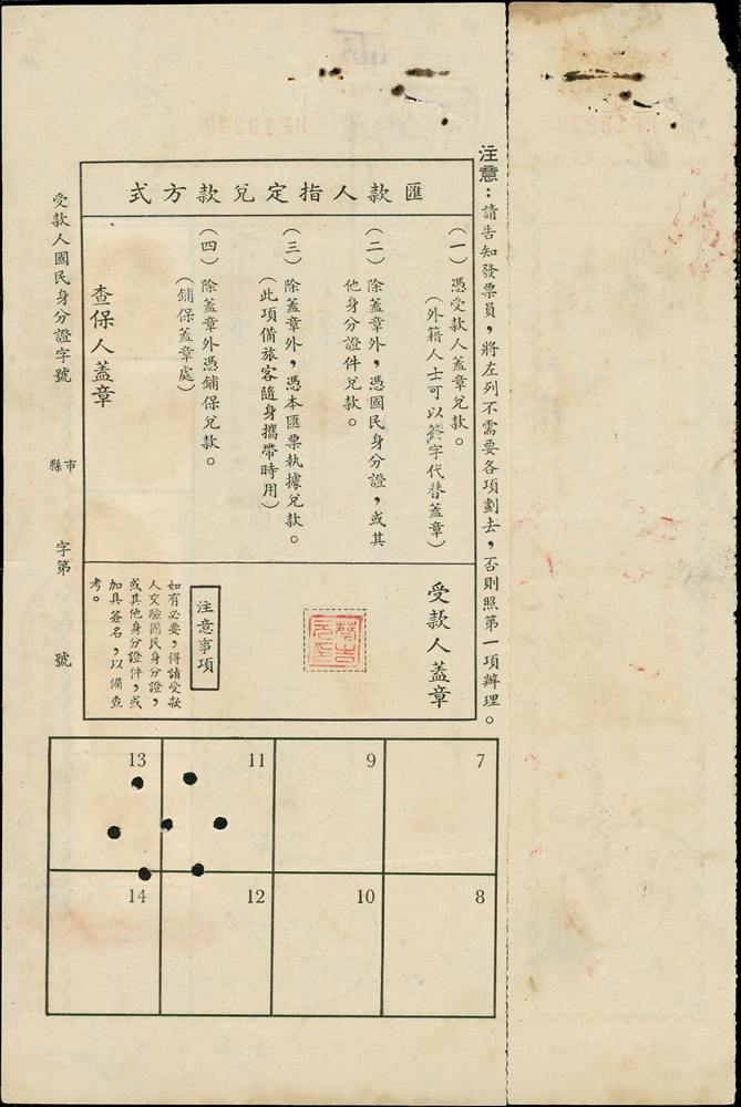 信封分類 大清郵政 1911年以前清代~國家郵政史(1082-1112)清代~商埠郵政史(1156-1158)在華客郵郵史(1168-1188)中華民國郵政 1912~1949年民國~郵政史(1424-1537)民國~名人封(1538-1547)民國~防盜(1548-1559)民國~首航封(1560-1570)民國~欠資封(1571-1574)民國~檢查封(1575-1599)民國~行動郵局/信櫃(1600-1613)兩岸通郵史(1933年-1989年)(1614-1632)民國~郵政匯兌(1633-1644)民國~民信局/僑批(1645-1651)民國~郵政明信片(1652-1659)民國~風景明信片(1660-1683)民國~國內及國際航空郵簡(1684-1703)日偽政權~郵政史(1714-1723)台灣 1888~2020年台灣~整批/整冊信封(3554-3583)日治時期~台灣郵史1895~1945(3601-3661)日治時期~台灣明信片(3662-3688)日治時期~台灣風景片(3689-3695)台灣老台幣時期~國父像火炬圖『限臺灣省用』明信片(3738-3739)台灣~老台幣時期郵政史1945~1949(3740-3815)台灣~自動化實寄封(4646-4647)台灣~新台幣時期郵政史(6001-6041)大陳島(6042)台灣~代辦所/欠資/首航(6043-6055)台灣~郵政匯兌(6056-6073)台灣~首日封(6074-6090)台灣~郵資封/郵政明信片(6091-6100)台灣~原圖卡(6101-6113)台灣~國內及國際航空郵簡(6114-6122)中國人民郵政 1949~2018年新中國~解放區郵史(6128-6140)新中國~郵政史(6277-6289)新中國~郵政匯兌/郵資封片(6290-6304)中國香港~郵政史(6314-6316)世界各國郵票日本郵政史(6327-6334)外國信封(A~Z)(6350-6365) 大清郵政 1911年以前 ↳清代~國家郵政史(1082-1112) ↳清代~商埠郵政史(1156-1158) ↳在華客郵郵史(1168-1188)中華民國郵政 1912~1949年 ↳民國~郵政史(1424-1537) ↳民國~名人封(1538-1547) ↳民國~防盜(1548-1559) ↳民國~首航封(1560-1570) ↳民國~欠資封(1571-1574) ↳民國~檢查封(1575-1599) ↳民國~行動郵局/信櫃(1600-1613) ↳兩岸通郵史(1933年-1989年)(1614-1632) ↳民國~郵政匯兌(1633-1644) ↳民國~民信局/僑批(1645-1651) ↳民國~郵政明信片(1652-1659) ↳民國~風景明信片(1660-1683) ↳民國~國內及國際航空郵簡(1684-1703) ↳日偽政權~郵政史(1714-1723)台灣 1888~2020年 ↳台灣~整批/整冊信封(3554-3583) ↳日治時期~台灣郵史1895~1945(3601-3661) ↳日治時期~台灣明信片(3662-3688) ↳日治時期~台灣風景片(3689-3695) ↳台灣老台幣時期~國父像火炬圖『限臺灣省用』明信片(3738-3739) ↳台灣~老台幣時期郵政史1945~1949(3740-3815) ↳台灣~自動化實寄封(4646-4647) ↳台灣~新台幣時期郵政史(6001-6041) ↳大陳島(6042) ↳台灣~代辦所/欠資/首航(6043-6055) ↳台灣~郵政匯兌(6056-6073) ↳台灣~首日封(6074-6090) ↳台灣~郵資封/郵政明信片(6091-6100) ↳台灣~原圖卡(6101-6113) ↳台灣~國內及國際航空郵簡(6114-6122)中國人民郵政 1949~2018年 ↳新中國~解放區郵史(6128-6140) ↳新中國~郵政史(6277-6289) ↳新中國~郵政匯兌/郵資封片(6290-6304) ↳中國香港~郵政史(6314-6316)世界各國郵票 ↳日本郵政史(6327-6334) ↳外國信封(A~Z)(6350-6365) 點大圖放大展示,點小圖切換 1 民國53年郵政匯兌印紙附執據聯,貼匯兌印紙5枚計430元,銷龍井五三年九月卄九,兌款局嘉義改龍井,銷龍井隔日戳,旁另蓋『代收貨價/本匯票不得參加票據交換』章(Page 122) 結標時間 2025-12-16 10:21:40 拍品編號:6066 起拍價:NT$500 當前價:NT$500 自動出價 直接出價 出價 系統將按出價級數,依序為您比(出)價至上限金額 提醒您:直接出價後不可將金額改低,只能改高,蟠龍無法降低您的出價,最高出價者無法取消出價 (查看出價說明) 得標說明:需按得標價另加10%佣金 當前加價幅度:NT$0元 (查看加價級數表) 回上頁 線上出價記錄 線上 0 人次,書面 0 人次 競價客戶 所在地 出價時間 出價金額 出價方式 問與答 目前尚無提問 我要提問 請先登入會員