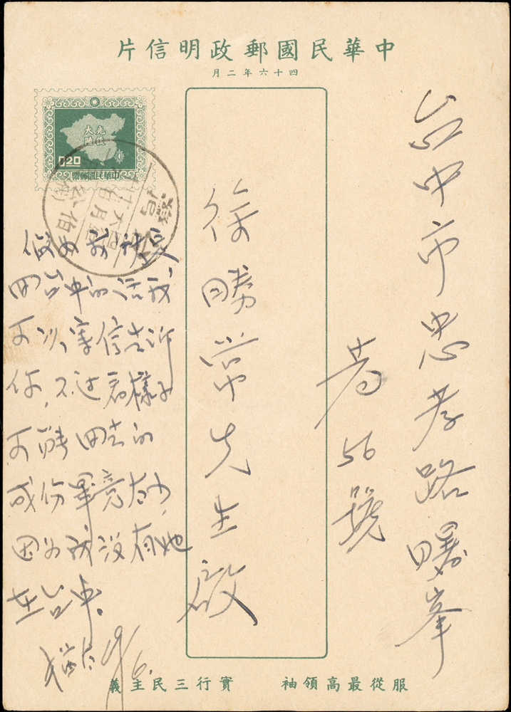 信封分類 林昌龍舊藏 Part Ⅷ~中國郵史林昌龍舊藏~國父像火炬圖『限臺灣省用』明信片(1001-1002)林昌龍舊藏~國際航空郵簡(1003-1088)林昌龍舊藏~獲獎郵集(1089)『S.L.』收藏中國郵票『S.L.』收藏~清代郵史(1119-1121)『S.L.』收藏~民國郵史(1187-1190)『S.L.』收藏~台灣郵史(1389-1411)『S.L.』收藏~外國郵史(1428-1429)大清郵政 1911年以前清代~國家郵政史(1763-1806)清代~商埠郵政史(1832-1840)在華客郵郵史(1844-1849)中華民國郵政 1912~1949年民國~郵政史(3742-3869)民國~名人封(3870)民國~防盜(3871-3877)民國~變體封(3878-3883)民國~首航封(3884-3889)民國~軍郵/欠資封(3890-3895)民國~檢查封(3896-3924)民國~行動郵局/代辦所(3925-3938)兩岸通郵史1932年-2020年(3939-3960)民國~郵政單據(3961-3967)民國~郵政匯兌(3968-3973)民國~僑批/民信局(3974-3992)民國~郵政明信片(3993-4003)民國~風景明信片(4004-4031)民國~郵簡(4032-4035)日偽政權~郵政史(4048-4059)台灣 1888~2020年台灣~整批/整冊信封(4068-4103)日治時期~台灣郵史1896~1945年(4116-4157)日治時期~台灣明信片(4158-4171)日治時期~台灣風景片(4172-4186)台灣~老台幣時期郵政史1945~1949年(4254-4347)台灣~自動化實寄封(4901-4908)台灣~新台幣時期郵政史(6001-6063)台灣~郵政代辦(6064-6116)台灣~郵局代封(6117-6119)台灣~名人封(6120-6125)台灣~行動郵局(6126-6130)台灣~郵亭(6131-6153)台灣~郵政信櫃(6154-6155)台灣~限時專送(6156-6171)台灣~富國島(6172)台灣~橫貫公路(6173-6177)台灣~檢查封(6178-6203)台灣~欠資封(6204-6227)台灣~軍郵封(6228-6233)台灣~郵政匯兌(6234-6248)台灣~郵政單據(6249-6254)台灣~首日封/紀念封(6257-6279)台灣~郵資封/郵政明信片(6280-6308)台灣~原圖卡/郵簡/郵政文具樣張(6309-6317)中國人民郵政 1949~2018年新中國~整批/整冊信封(6347-6349)新中國~解放區郵史(6354-6359)新中國~郵政史(6536-6558)新中國~郵政匯兌(6559-6565)新中國~首日封/紀念封(6566-6572)中國香港~郵政史(6583-6587)世界各國郵票獲獎郵集(6599)外國信封(A~Z)(6600-6601) 林昌龍舊藏 Part Ⅷ~中國郵史 ↳林昌龍舊藏~國父像火炬圖『限臺灣省用』明信片(1001-1002) ↳林昌龍舊藏~國際航空郵簡(1003-1088) ↳林昌龍舊藏~獲獎郵集(1089)『S.L.』收藏中國郵票 ↳『S.L.』收藏~清代郵史(1119-1121) ↳『S.L.』收藏~民國郵史(1187-1190) ↳『S.L.』收藏~台灣郵史(1389-1411) ↳『S.L.』收藏~外國郵史(1428-1429)大清郵政 1911年以前 ↳清代~國家郵政史(1763-1806) ↳清代~商埠郵政史(1832-1840) ↳在華客郵郵史(1844-1849)中華民國郵政 1912~1949年 ↳民國~郵政史(3742-3869) ↳民國~名人封(3870) ↳民國~防盜(3871-3877) ↳民國~變體封(3878-3883) ↳民國~首航封(3884-3889) ↳民國~軍郵/欠資封(3890-3895) ↳民國~檢查封(3896-3924) ↳民國~行動郵局/代辦所(3925-3938) ↳兩岸通郵史1932年-2020年(3939-3960) ↳民國~郵政單據(3961-3967) ↳民國~郵政匯兌(3968-3973) ↳民國~僑批/民信局(3974-3992) ↳民國~郵政明信片(3993-4003) ↳民國~風景明信片(4004-4031) ↳民國~郵簡(4032-4035) ↳日偽政權~郵政史(4048-4059)台灣 1888~2020年 ↳台灣~整批/整冊信封(4068-4103) ↳日治時期~台灣郵史1896~1945年(4116-4157) ↳日治時期~台灣明信片(4158-4171) ↳日治時期~台灣風景片(4172-4186) ↳台灣~老台幣時期郵政史1945~1949年(4254-4347) ↳台灣~自動化實寄封(4901-4908) ↳台灣~新台幣時期郵政史(6001-6063) ↳台灣~郵政代辦(6064-6116) ↳台灣~郵局代封(6117-6119) ↳台灣~名人封(6120-6125) ↳台灣~行動郵局(6126-6130) ↳台灣~郵亭(6131-6153) ↳台灣~郵政信櫃(6154-6155) ↳台灣~限時專送(6156-6171) ↳台灣~富國島(6172) ↳台灣~橫貫公路(6173-6177) ↳台灣~檢查封(6178-6203) ↳台灣~欠資封(6204-6227) ↳台灣~軍郵封(6228-6233) ↳台灣~郵政匯兌(6234-6248) ↳台灣~郵政單據(6249-6254) ↳台灣~首日封/紀念封(6257-6279) ↳台灣~郵資封/郵政明信片(6280-6308) ↳台灣~原圖卡/郵簡/郵政文具樣張(6309-6317)中國人民郵政 1949~2018年 ↳新中國~整批/整冊信封(6347-6349) ↳新中國~解放區郵史(6354-6359) ↳新中國~郵政史(6536-6558) ↳新中國~郵政匯兌(6559-6565) ↳新中國~首日封/紀念封(6566-6572) ↳中國香港~郵政史(6583-6587)世界各國郵票 ↳獲獎郵集(6599) ↳外國信封(A~Z)(6600-6601) 點大圖放大展示,點小圖切換 地圖2角直片,銷伯公X(代)46.6.19,寄台中(Page 205) 結標時間 2025-06-17 10:21:00 拍品編號:6085 起拍價:NT$1000 當前價:NT$1000 自動出價 直接出價 出價 系統將按出價級數,依序為您比(出)價至上限金額 提醒您:直接出價後不可將金額改低,只能改高,蟠龍無法降低您的出價,最高出價者無法取消出價 (查看出價說明) 得標說明:需按得標價另加10%佣金 當前加價幅度:NT$0元 (查看加價級數表) 回上頁 線上出價記錄 線上 0 人次,書面 0 人次 競價客戶 所在地 出價時間 出價金額 出價方式 問與答 目前尚無提問 我要提問 請先登入會員