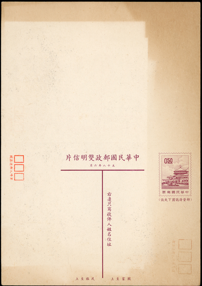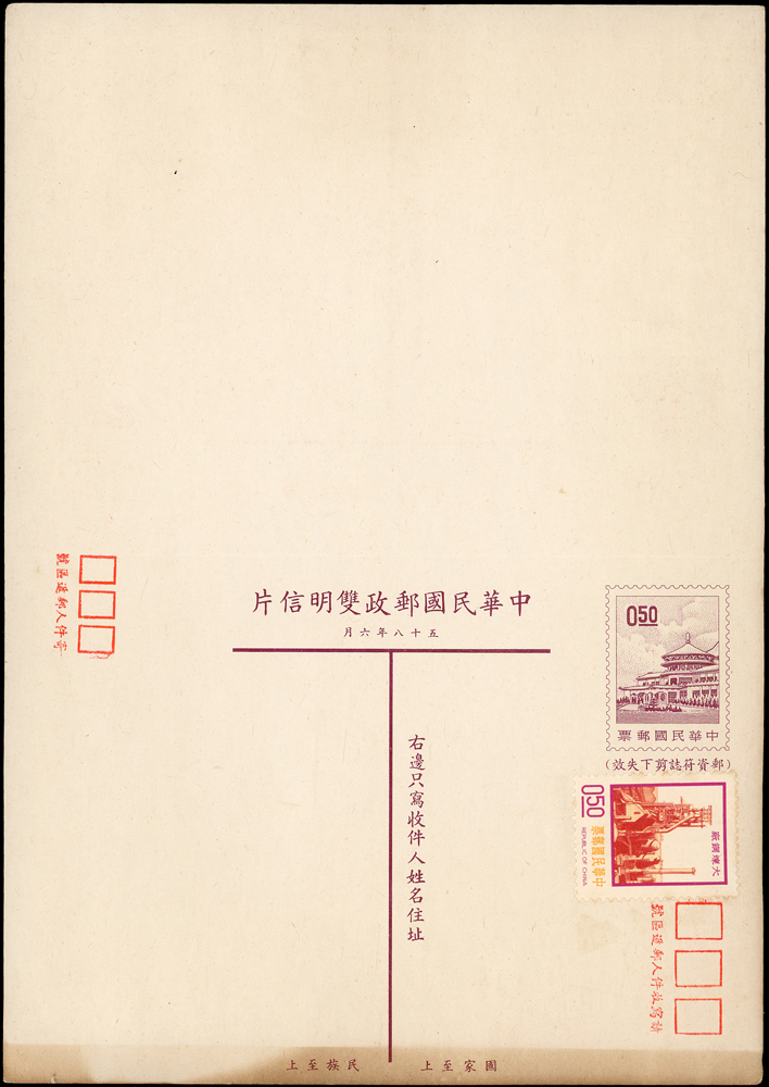 信封分類 大清郵政 1911年以前清代~國家郵政史(1082-1112)清代~商埠郵政史(1156-1158)在華客郵郵史(1168-1188)中華民國郵政 1912~1949年民國~郵政史(1424-1537)民國~名人封(1538-1547)民國~防盜(1548-1559)民國~首航封(1560-1570)民國~欠資封(1571-1574)民國~檢查封(1575-1599)民國~行動郵局/信櫃(1600-1613)兩岸通郵史(1933年-1989年)(1614-1632)民國~郵政匯兌(1633-1644)民國~民信局/僑批(1645-1651)民國~郵政明信片(1652-1659)民國~風景明信片(1660-1683)民國~國內及國際航空郵簡(1684-1703)日偽政權~郵政史(1714-1723)台灣 1888~2020年台灣~整批/整冊信封(3554-3583)日治時期~台灣郵史1895~1945(3601-3661)日治時期~台灣明信片(3662-3688)日治時期~台灣風景片(3689-3695)台灣老台幣時期~國父像火炬圖『限臺灣省用』明信片(3738-3739)台灣~老台幣時期郵政史1945~1949(3740-3815)台灣~自動化實寄封(4646-4647)台灣~新台幣時期郵政史(6001-6041)大陳島(6042)台灣~代辦所/欠資/首航(6043-6055)台灣~郵政匯兌(6056-6073)台灣~首日封(6074-6090)台灣~郵資封/郵政明信片(6091-6100)台灣~原圖卡(6101-6113)台灣~國內及國際航空郵簡(6114-6122)中國人民郵政 1949~2018年新中國~解放區郵史(6128-6140)新中國~郵政史(6277-6289)新中國~郵政匯兌/郵資封片(6290-6304)中國香港~郵政史(6314-6316)世界各國郵票日本郵政史(6327-6334)外國信封(A~Z)(6350-6365) 大清郵政 1911年以前 ↳清代~國家郵政史(1082-1112) ↳清代~商埠郵政史(1156-1158) ↳在華客郵郵史(1168-1188)中華民國郵政 1912~1949年 ↳民國~郵政史(1424-1537) ↳民國~名人封(1538-1547) ↳民國~防盜(1548-1559) ↳民國~首航封(1560-1570) ↳民國~欠資封(1571-1574) ↳民國~檢查封(1575-1599) ↳民國~行動郵局/信櫃(1600-1613) ↳兩岸通郵史(1933年-1989年)(1614-1632) ↳民國~郵政匯兌(1633-1644) ↳民國~民信局/僑批(1645-1651) ↳民國~郵政明信片(1652-1659) ↳民國~風景明信片(1660-1683) ↳民國~國內及國際航空郵簡(1684-1703) ↳日偽政權~郵政史(1714-1723)台灣 1888~2020年 ↳台灣~整批/整冊信封(3554-3583) ↳日治時期~台灣郵史1895~1945(3601-3661) ↳日治時期~台灣明信片(3662-3688) ↳日治時期~台灣風景片(3689-3695) ↳台灣老台幣時期~國父像火炬圖『限臺灣省用』明信片(3738-3739) ↳台灣~老台幣時期郵政史1945~1949(3740-3815) ↳台灣~自動化實寄封(4646-4647) ↳台灣~新台幣時期郵政史(6001-6041) ↳大陳島(6042) ↳台灣~代辦所/欠資/首航(6043-6055) ↳台灣~郵政匯兌(6056-6073) ↳台灣~首日封(6074-6090) ↳台灣~郵資封/郵政明信片(6091-6100) ↳台灣~原圖卡(6101-6113) ↳台灣~國內及國際航空郵簡(6114-6122)中國人民郵政 1949~2018年 ↳新中國~解放區郵史(6128-6140) ↳新中國~郵政史(6277-6289) ↳新中國~郵政匯兌/郵資封片(6290-6304) ↳中國香港~郵政史(6314-6316)世界各國郵票 ↳日本郵政史(6327-6334) ↳外國信封(A~Z)(6350-6365) 點大圖放大展示,點小圖切換 雙片新片6件,含總統玉照國際片8角加貼三莒2角,二莒國內直片2角,二莒國內直片4角加貼三莒1角,中山樓國內直片5角加貼5角及橫片2片(局部黃漬);林茂興舊藏(Page 124) 結標時間 2025-12-16 10:31:00 拍品編號:6094 起拍價:NT$100 當前價:NT$100 自動出價 直接出價 出價 系統將按出價級數,依序為您比(出)價至上限金額 提醒您:直接出價後不可將金額改低,只能改高,蟠龍無法降低您的出價,最高出價者無法取消出價 (查看出價說明) 得標說明:需按得標價另加10%佣金 當前加價幅度:NT$0元 (查看加價級數表) 回上頁 線上出價記錄 線上 0 人次,書面 0 人次 競價客戶 所在地 出價時間 出價金額 出價方式 問與答 目前尚無提問 我要提問 請先登入會員