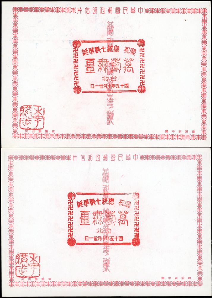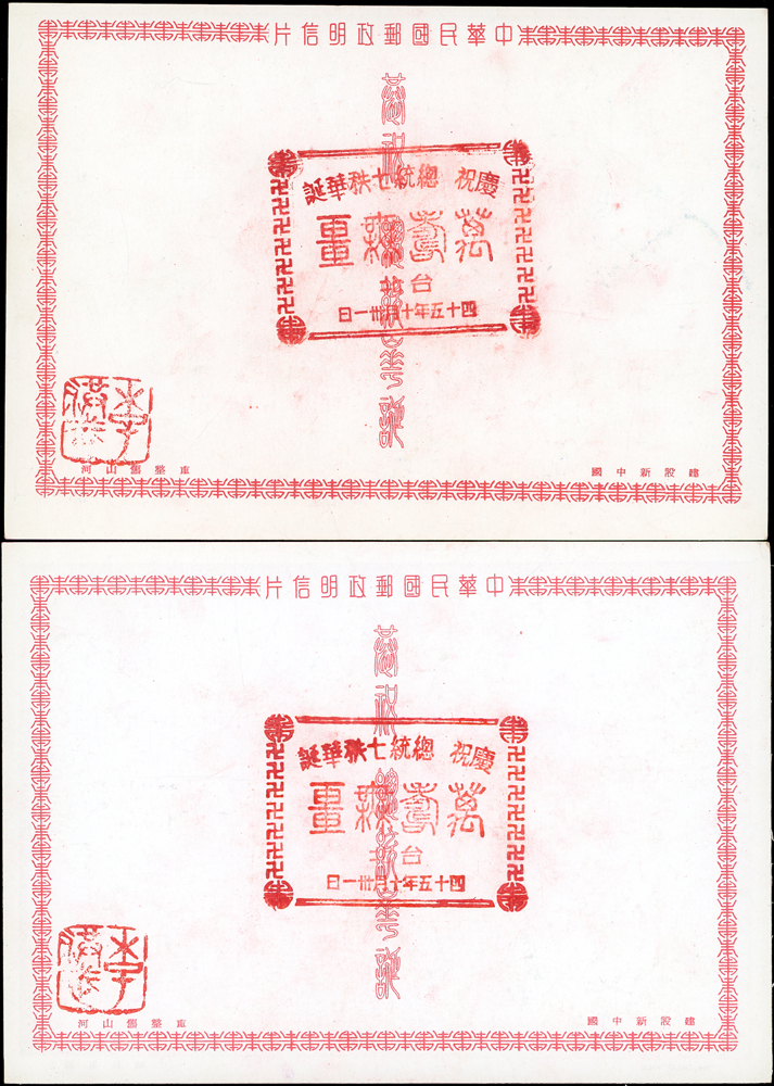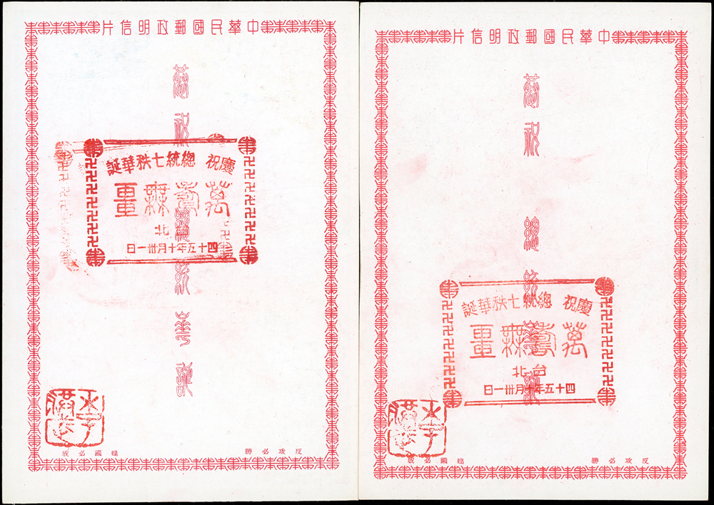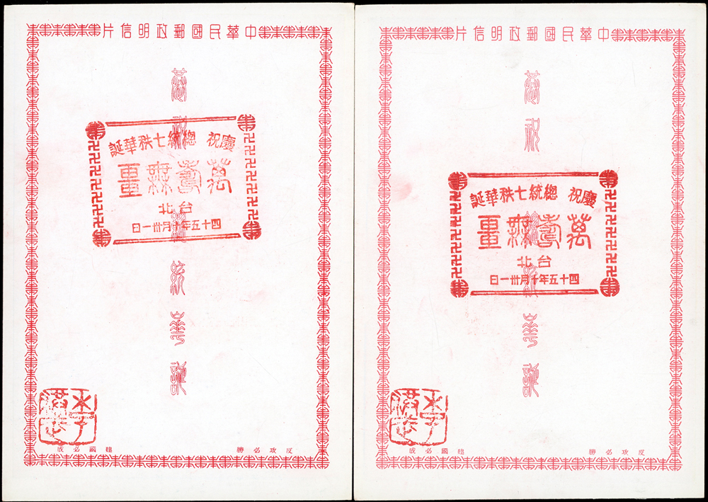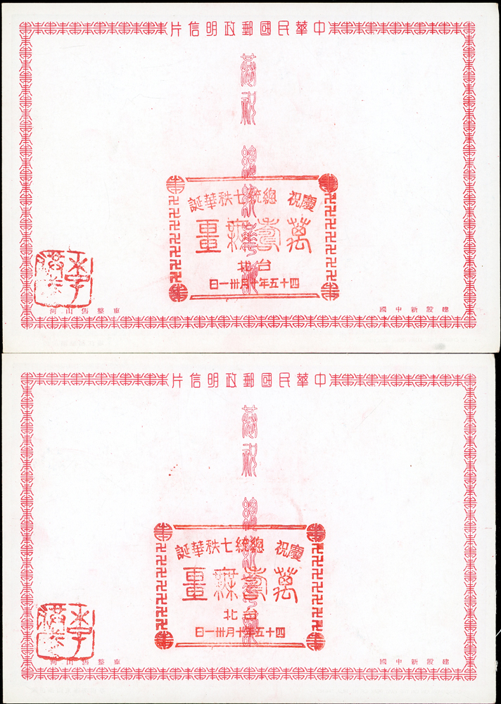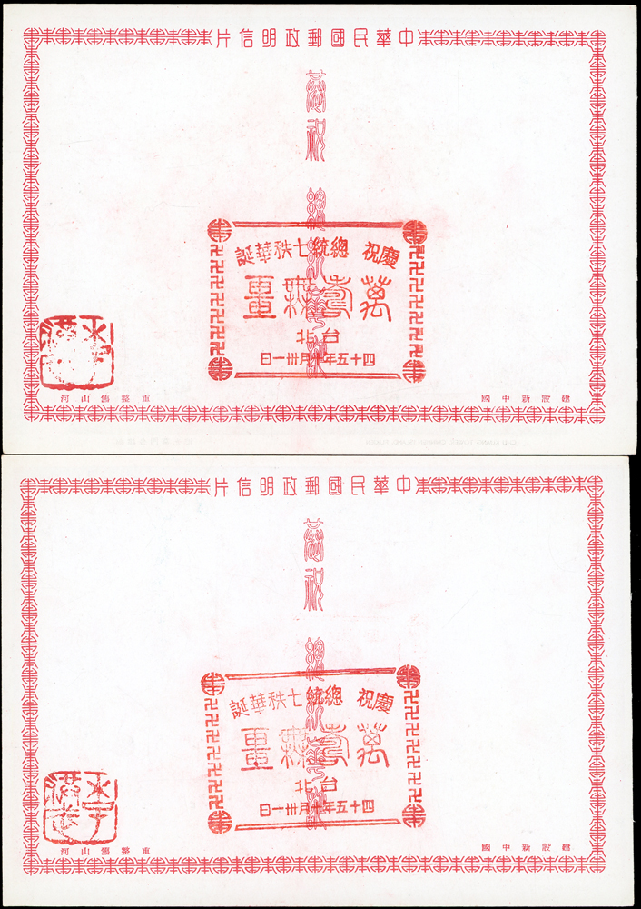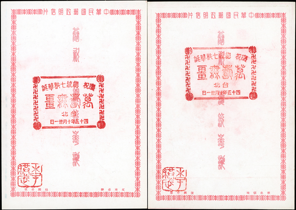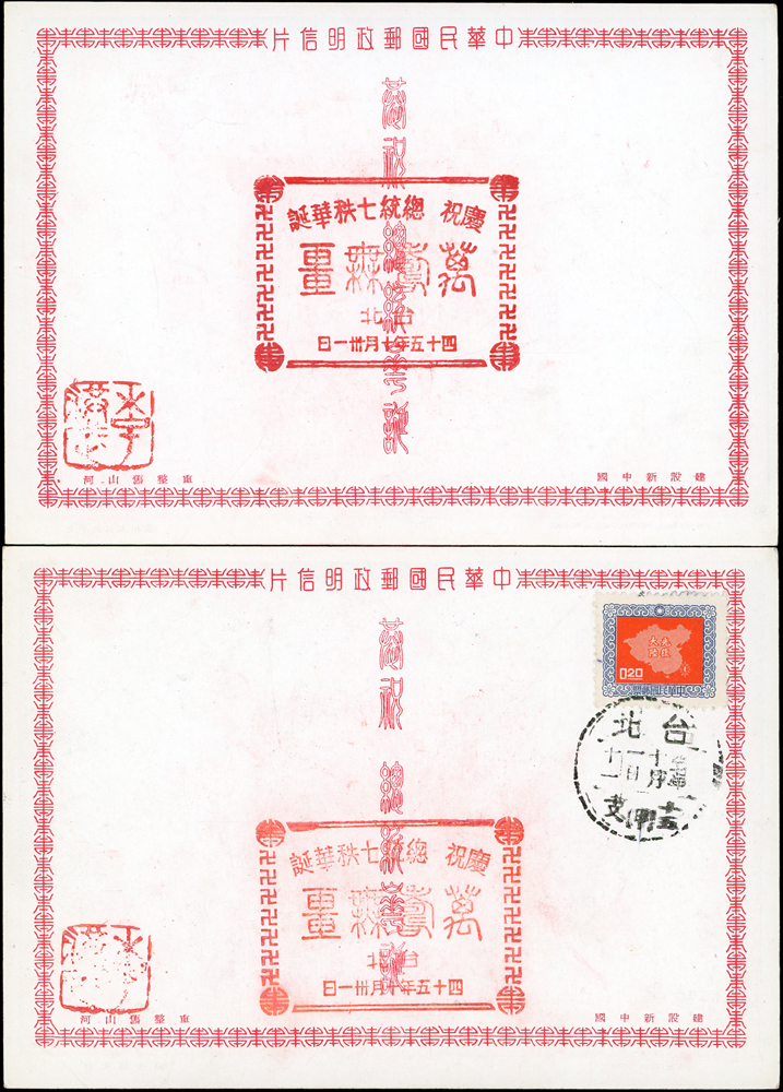 韓目#61~84.民國45年10月《岡陵獻頌 薄海騰歡》祝壽風景明信片24片,缺北投鄉村景色成全套,格式面均銷其紀戳及收藏章,其中台北博物館格式面貼地圖2角銷日戳,附封套(色淡微污)(Page 124)